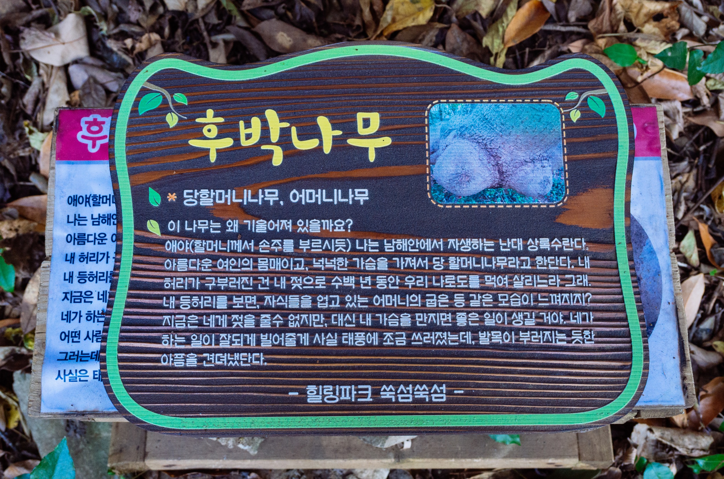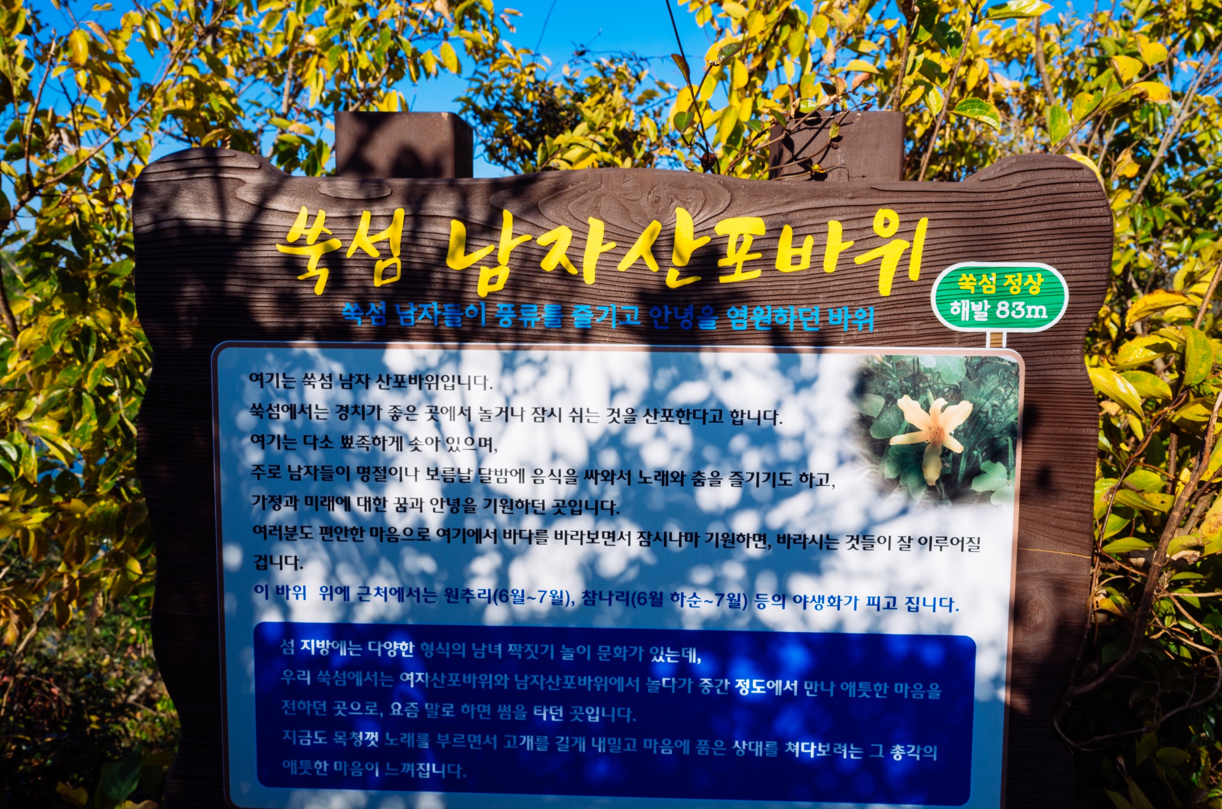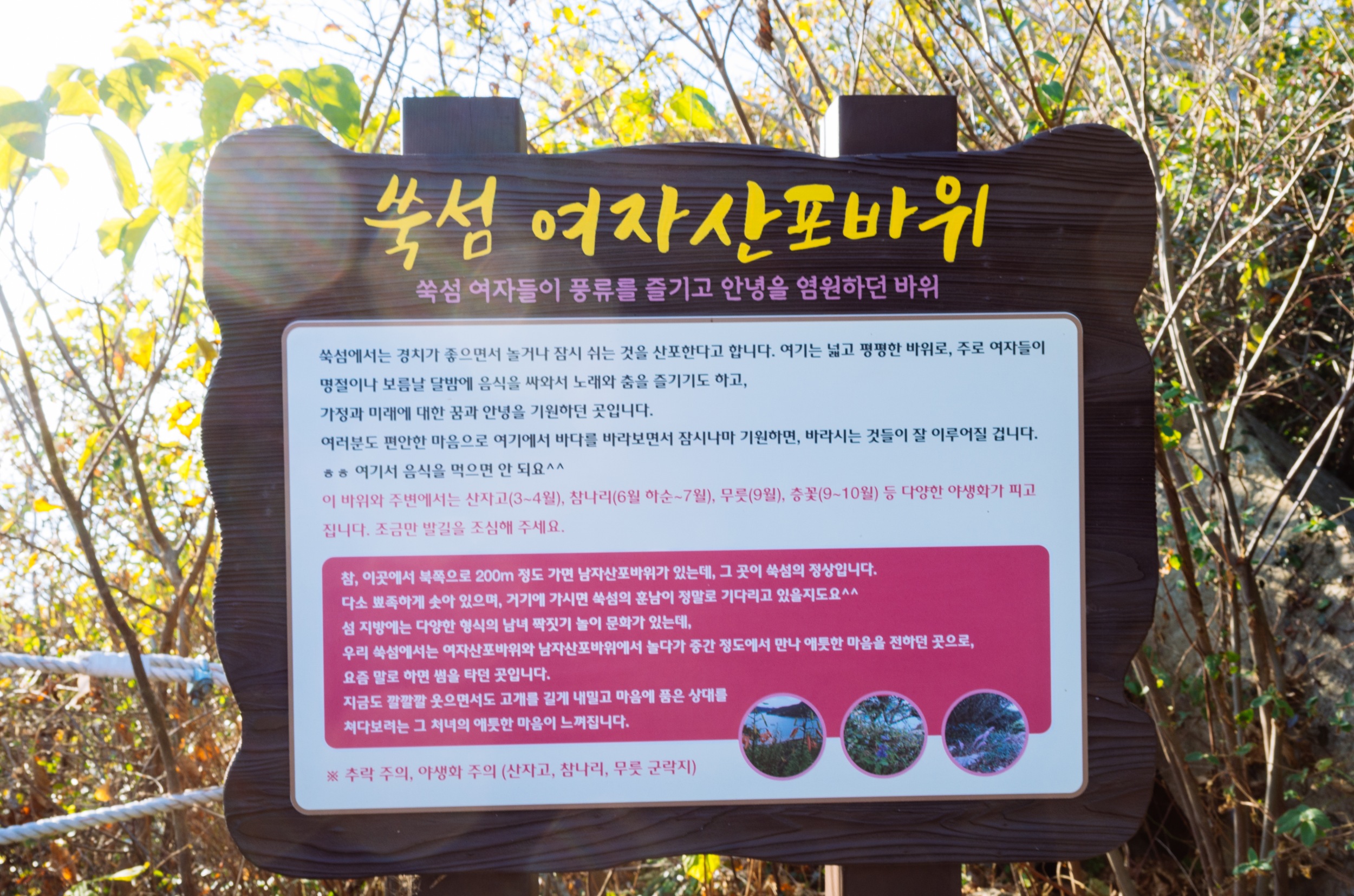 쑥섬을 탐방하다 보면 길, 나무, 꽃, 바위마다 안내 표지판이 잘 되어 있다는 느낌입니다