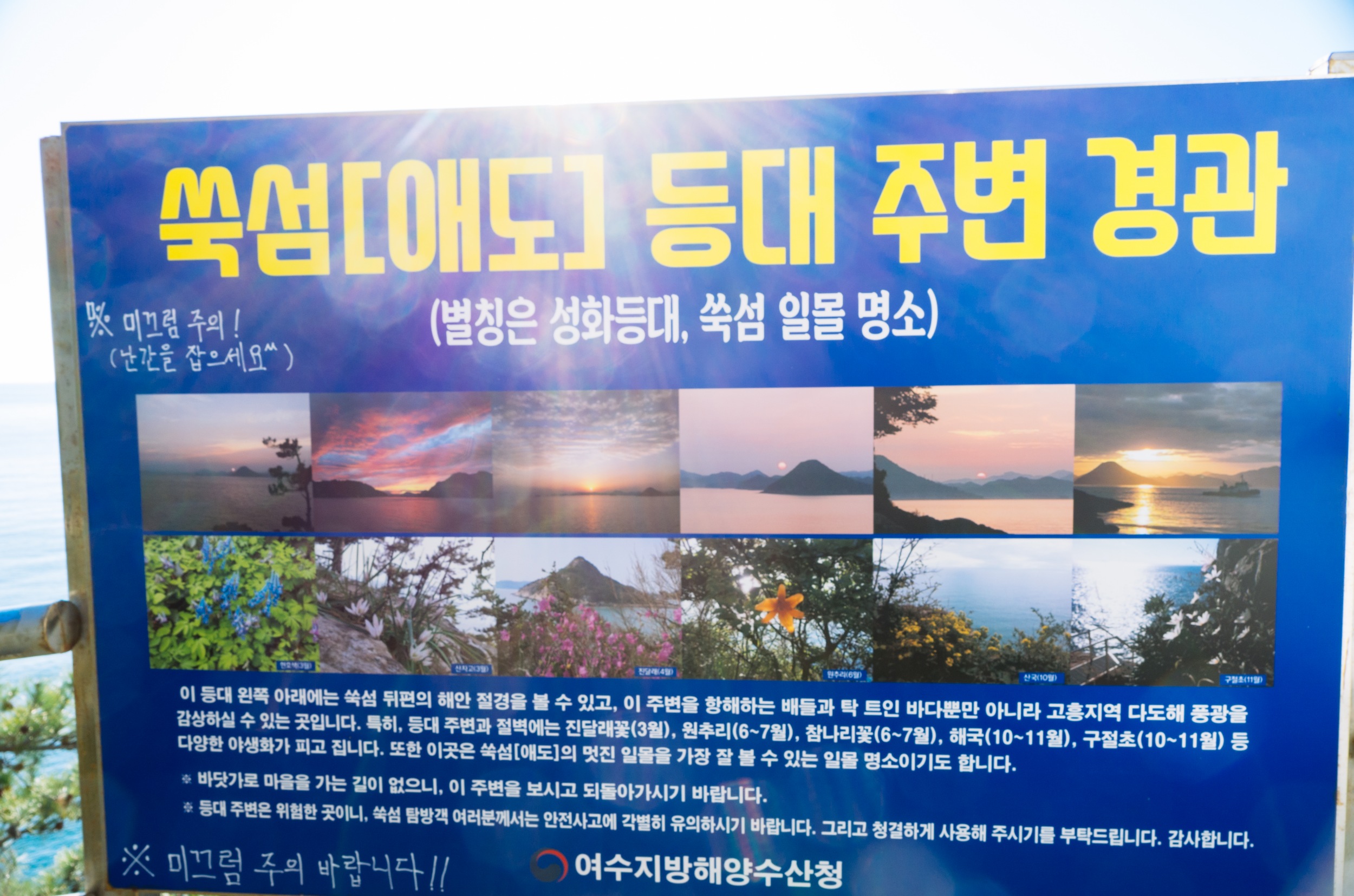 고흥 나로도항에 도착한 시간이 13시 10분 정도 되어서 배 편 타기 전 인적 사항 먼저 작성하고 13시 40분에 대합실에서 모여 쑥섬에 대한 안내를 20분 정도 사전에 듣고 14시 배에 승선했습니다. 14시 배에 승선하고 17시 05분에 하선 배 타니 사진 촬영하기에는 넉넉했습니다,