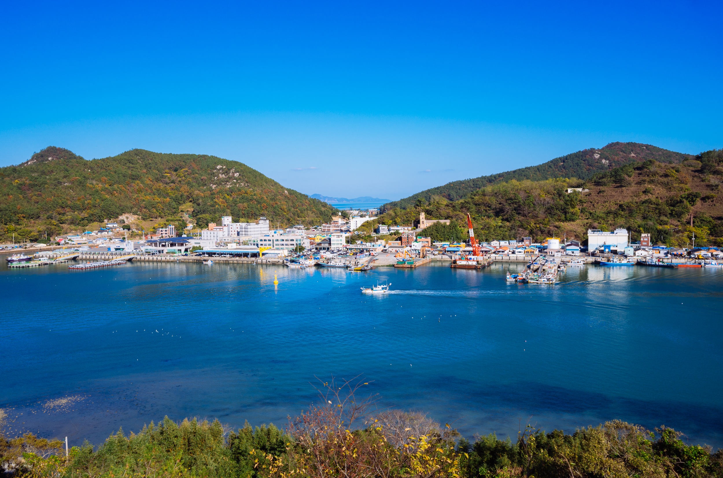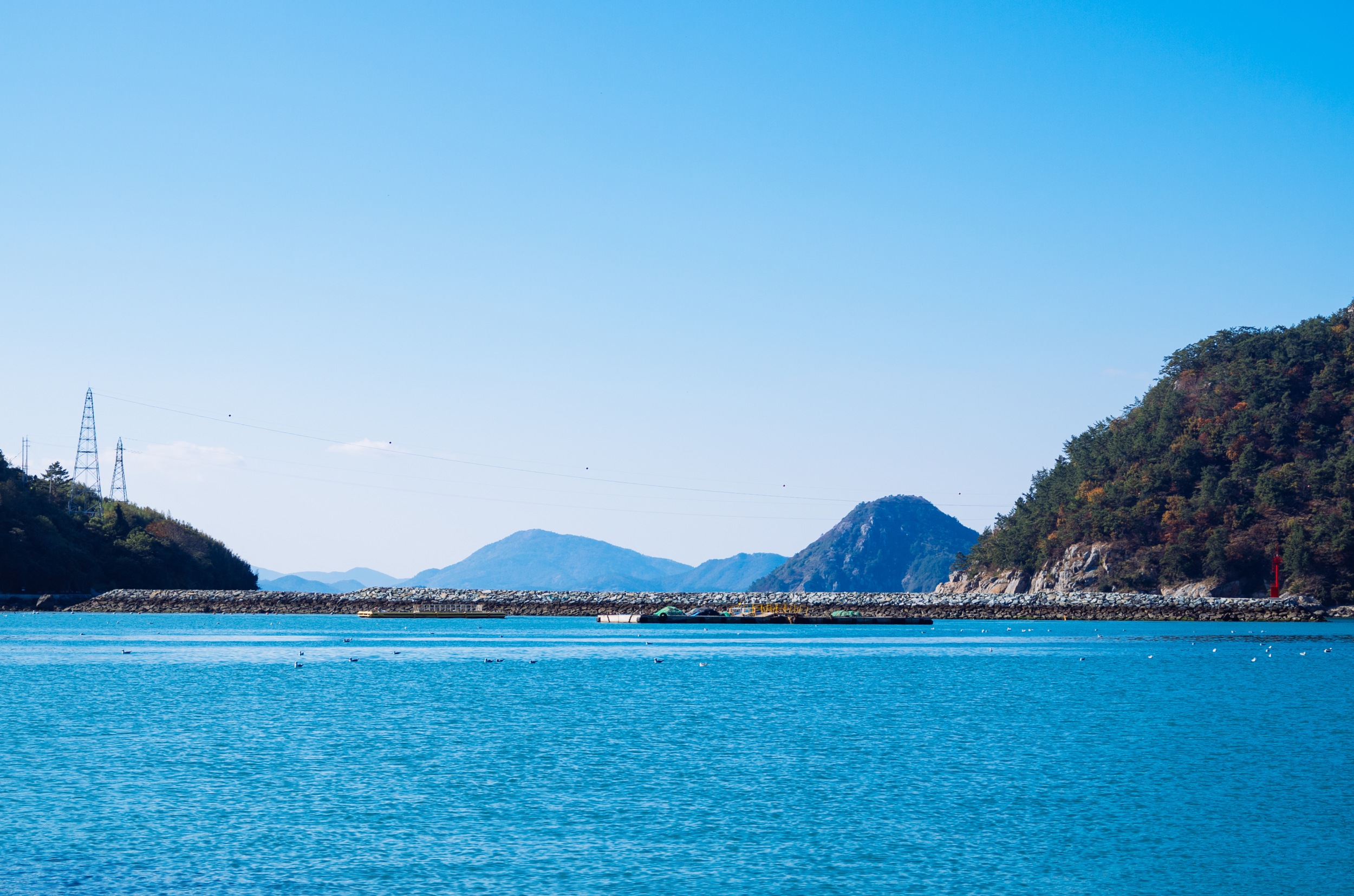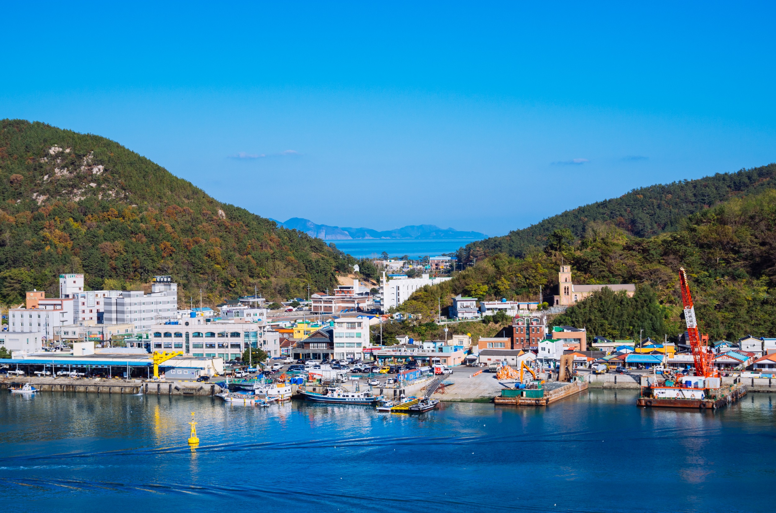 나로도항 뒤로 보이는 섬은 개도 일까 금오도 일까