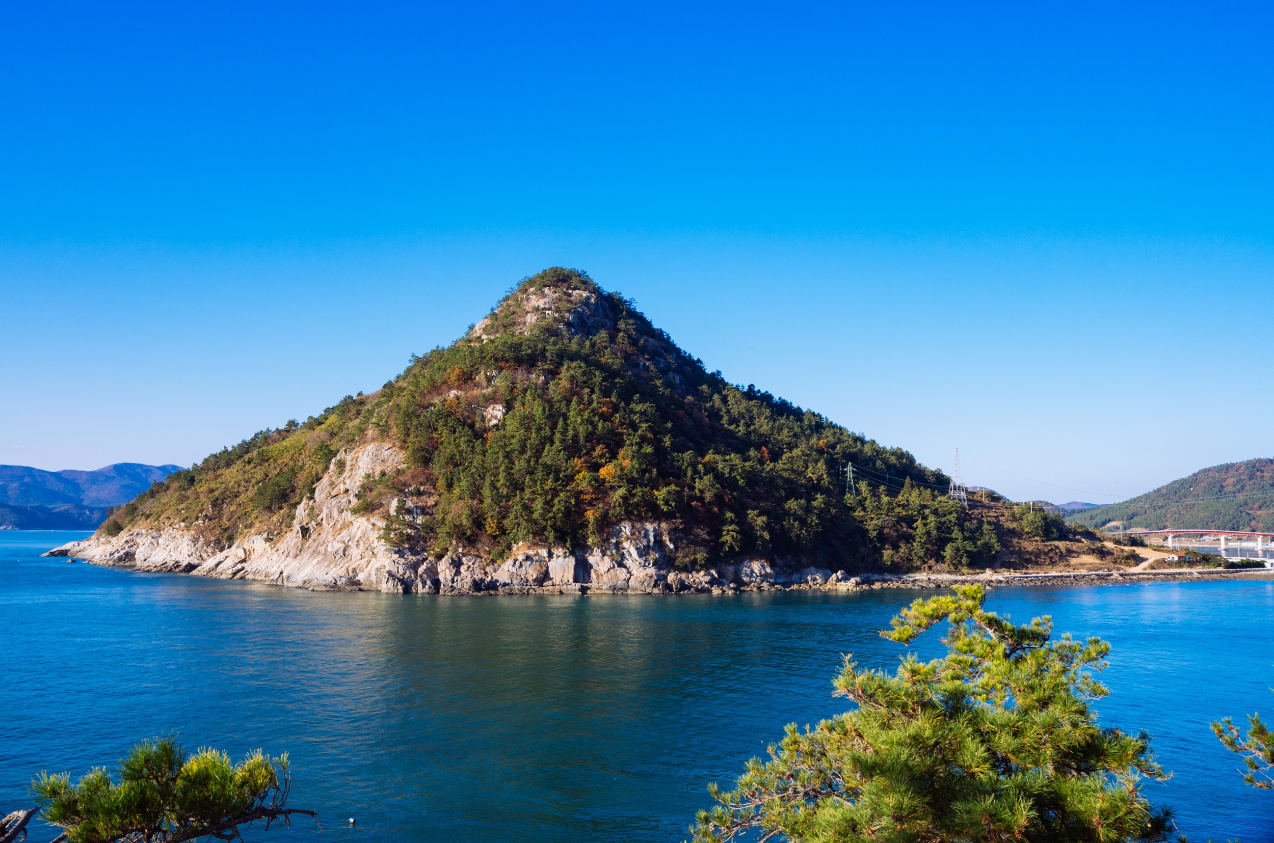 사양도 전경과 오른 편으로 사양교가 조금 보입니다.