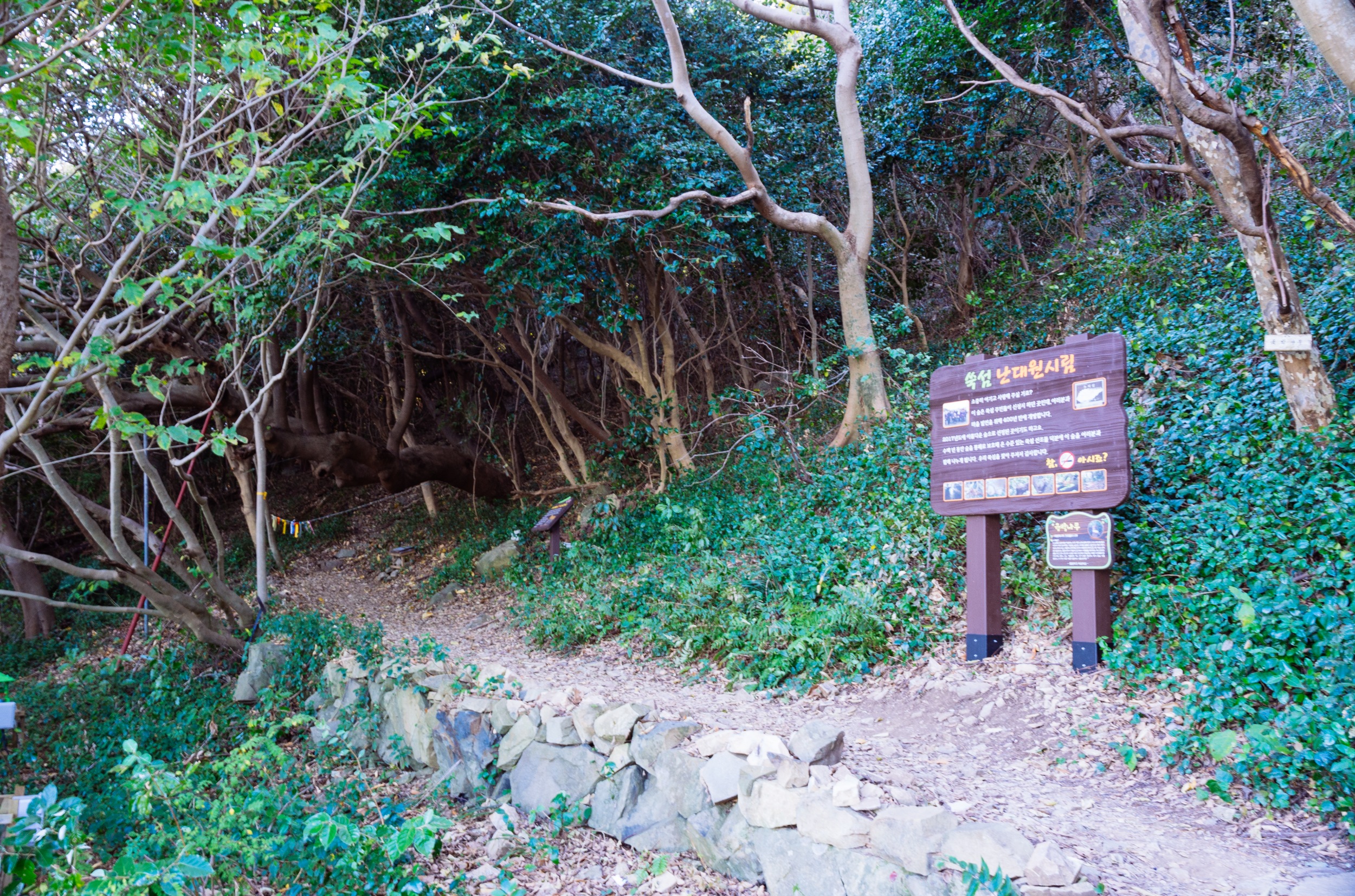 갈매기 카페에서 100m 올라가면 제일 먼저 난대원시림을 만날 수 있습니다.