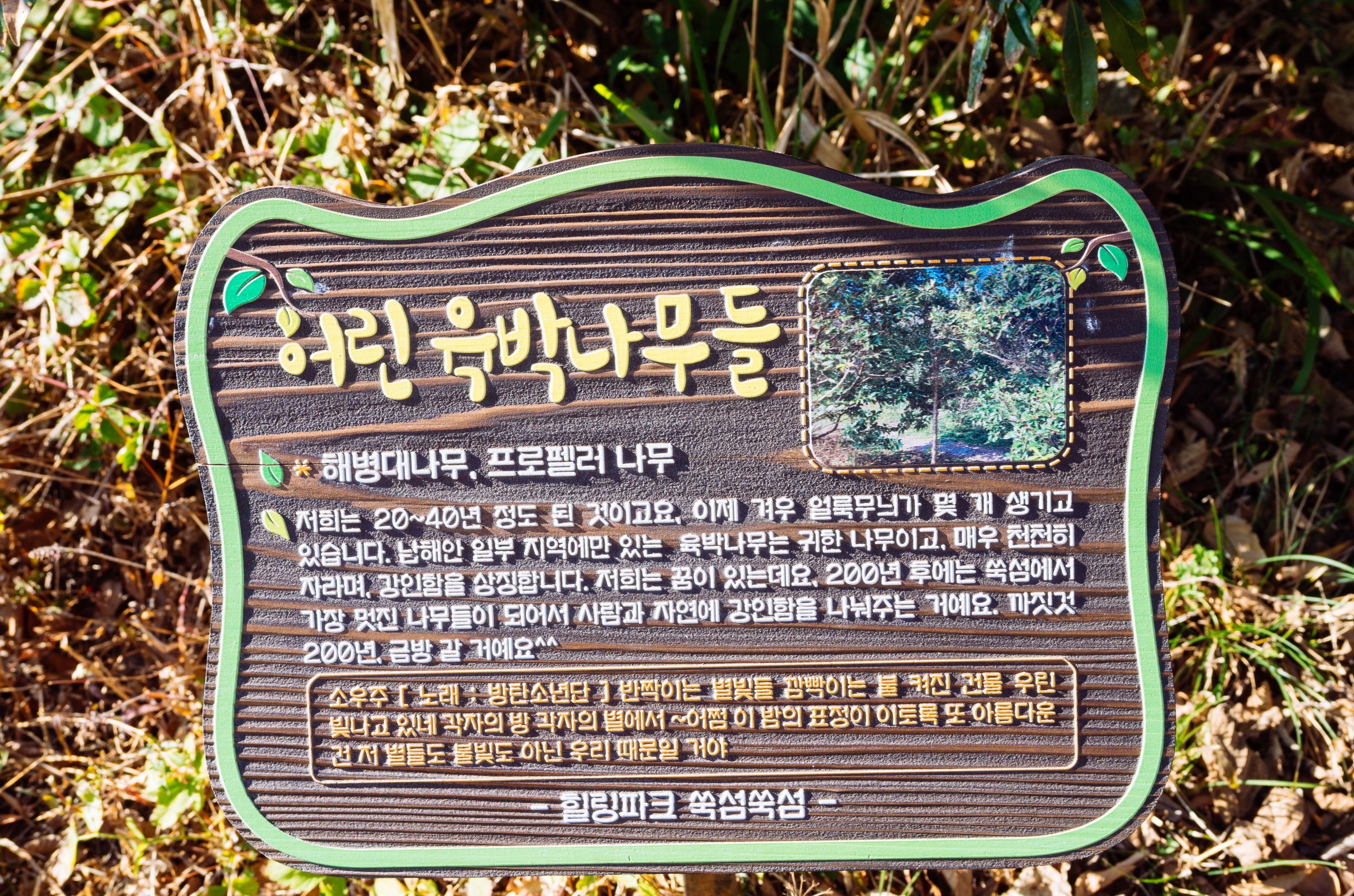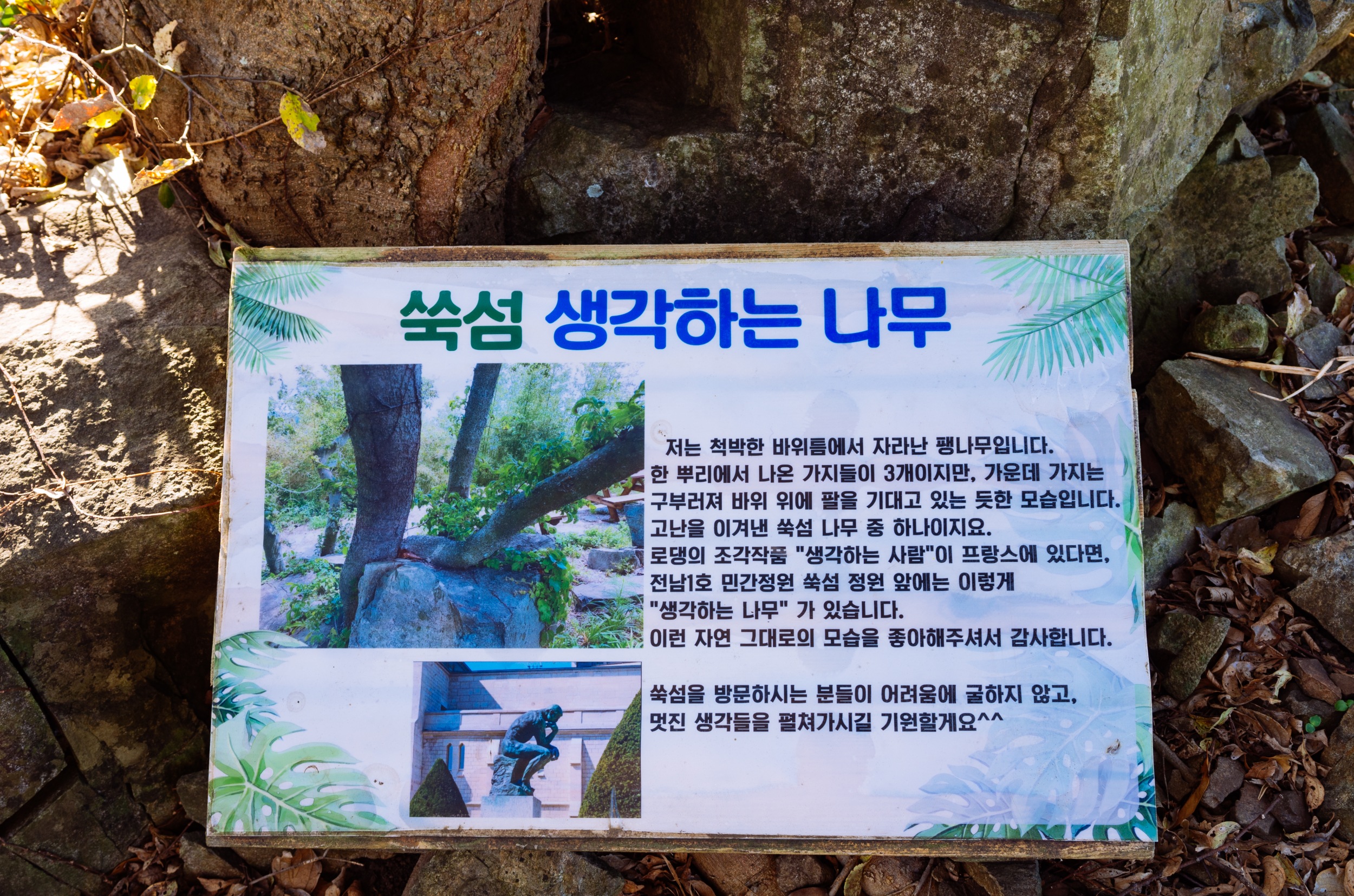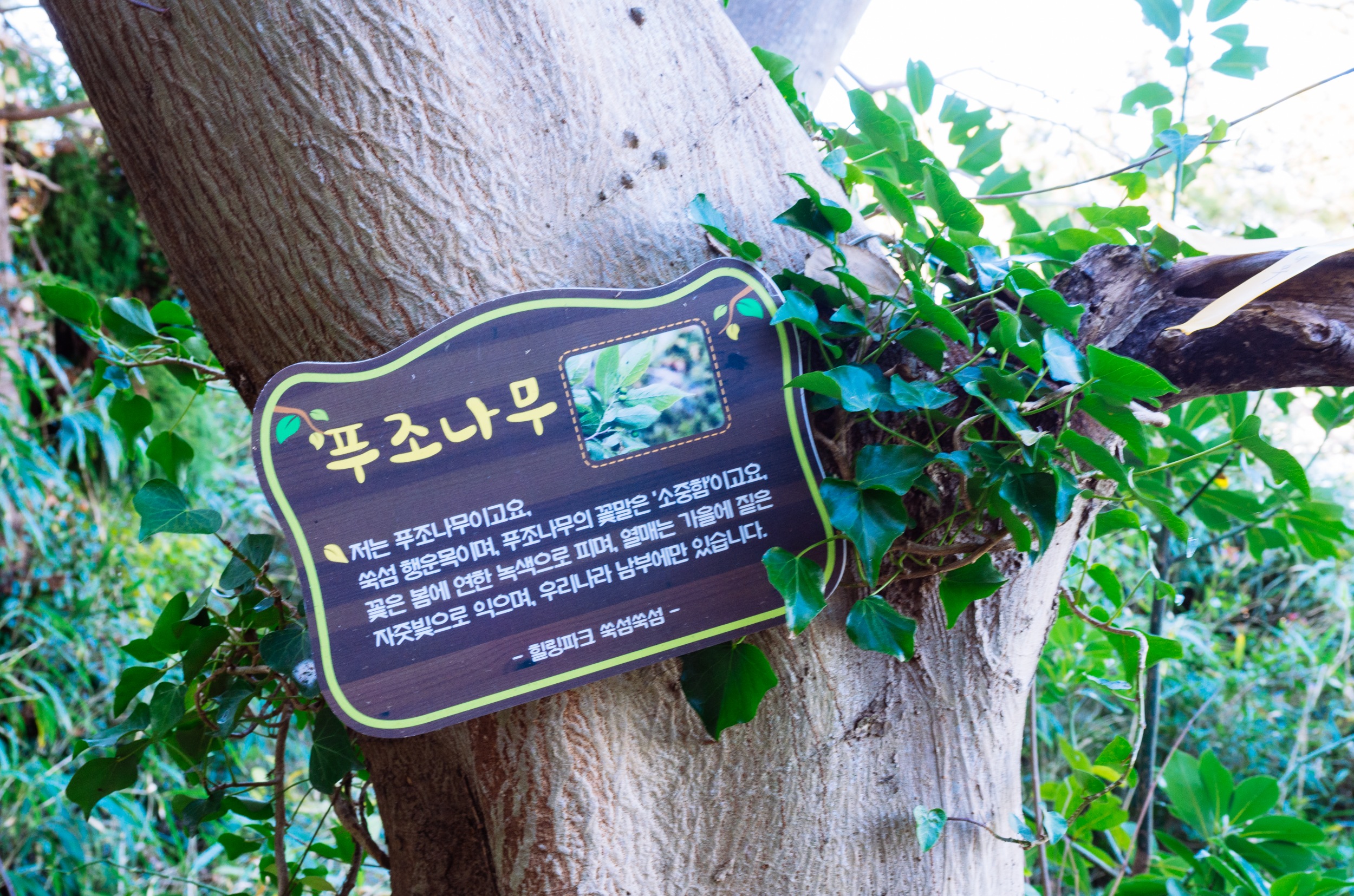 쑥섬을 탐방하다 보면 길, 나무, 꽃, 바위마다 안내 표지판이 잘 되어 있다는 느낌입니다