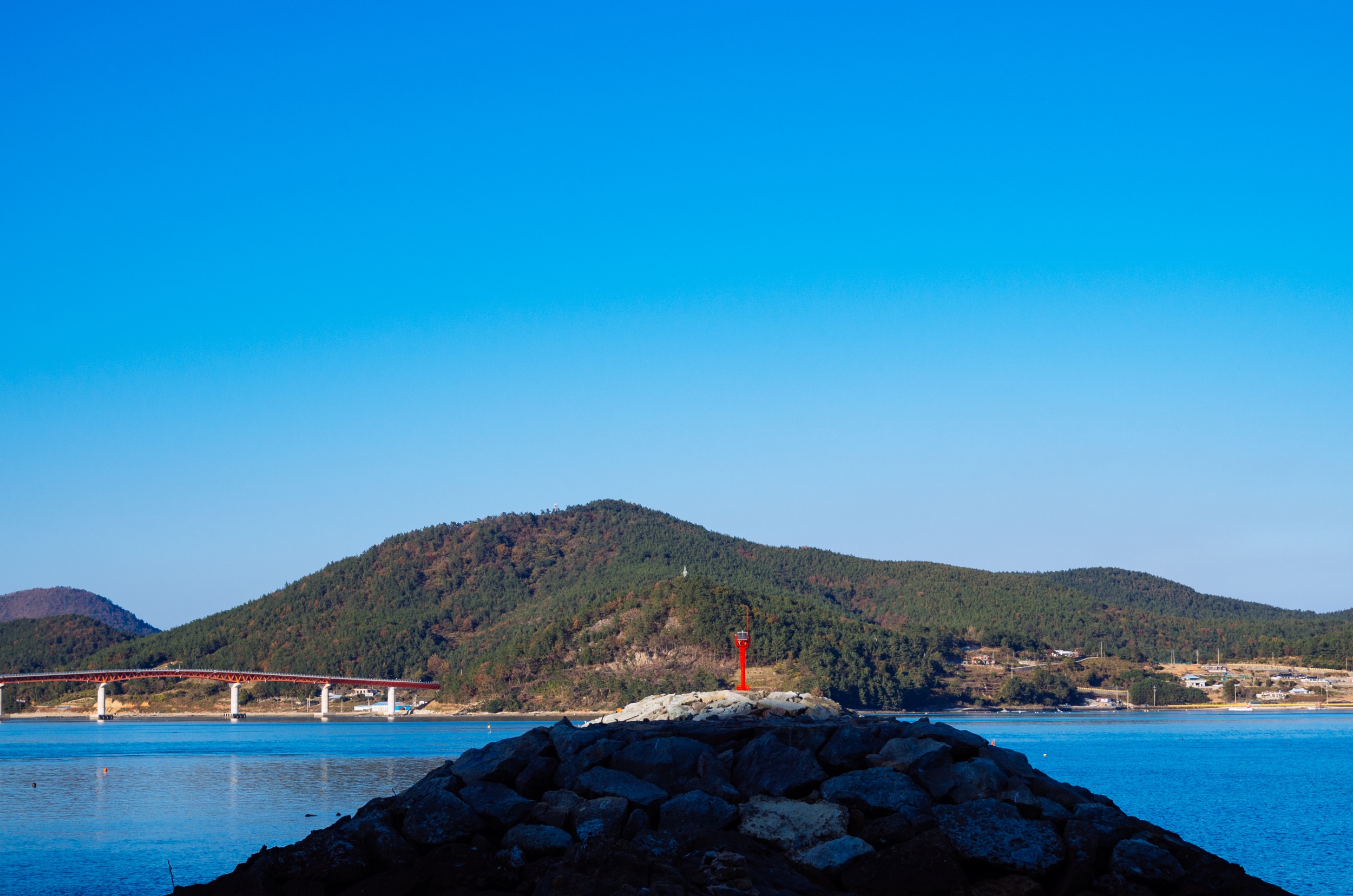 사양도 전경과 오른 편으로 사양교가 조금 보입니다.