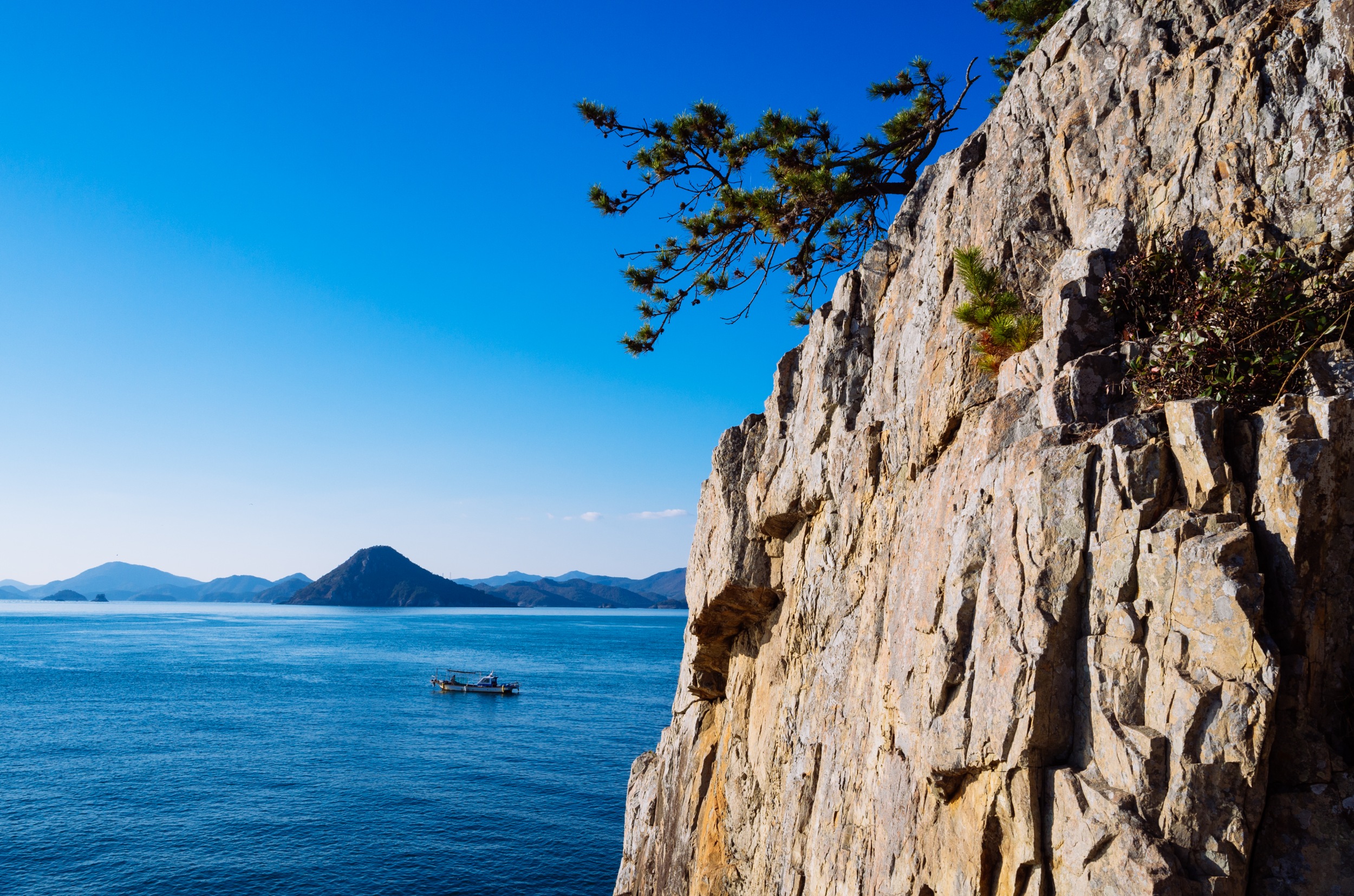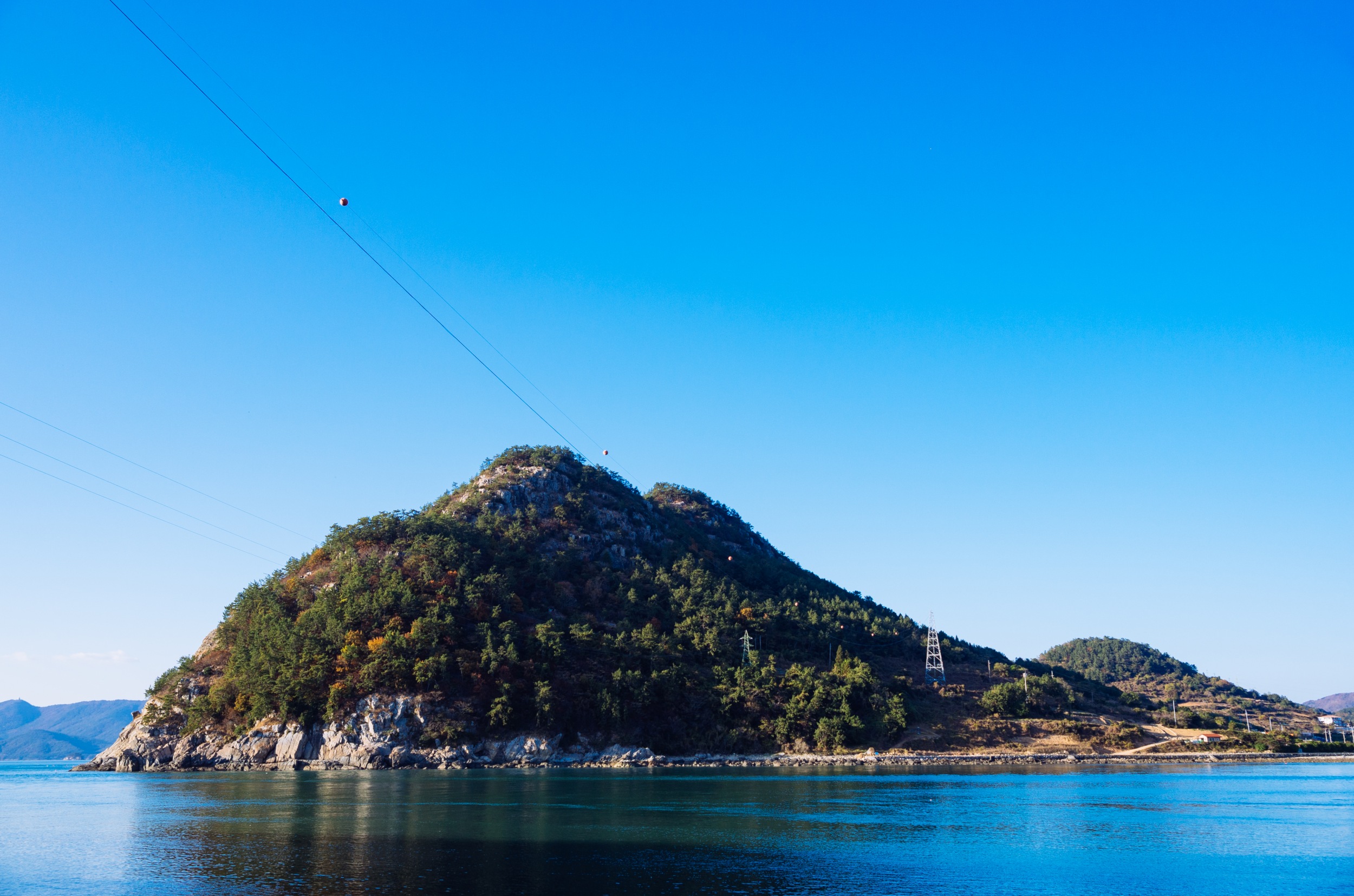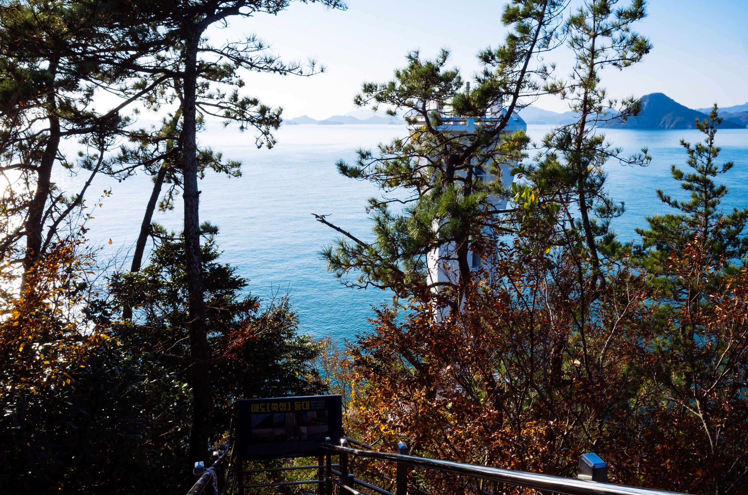 오른쪽에 보이는 외딴섬이 수락도, 그 옆으로는 사양도입니다. 사양도는 사양교가 있어 차로 이동 가능합니다.