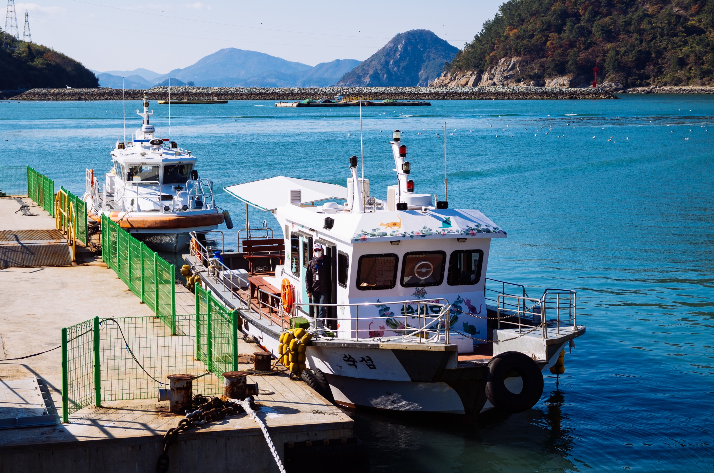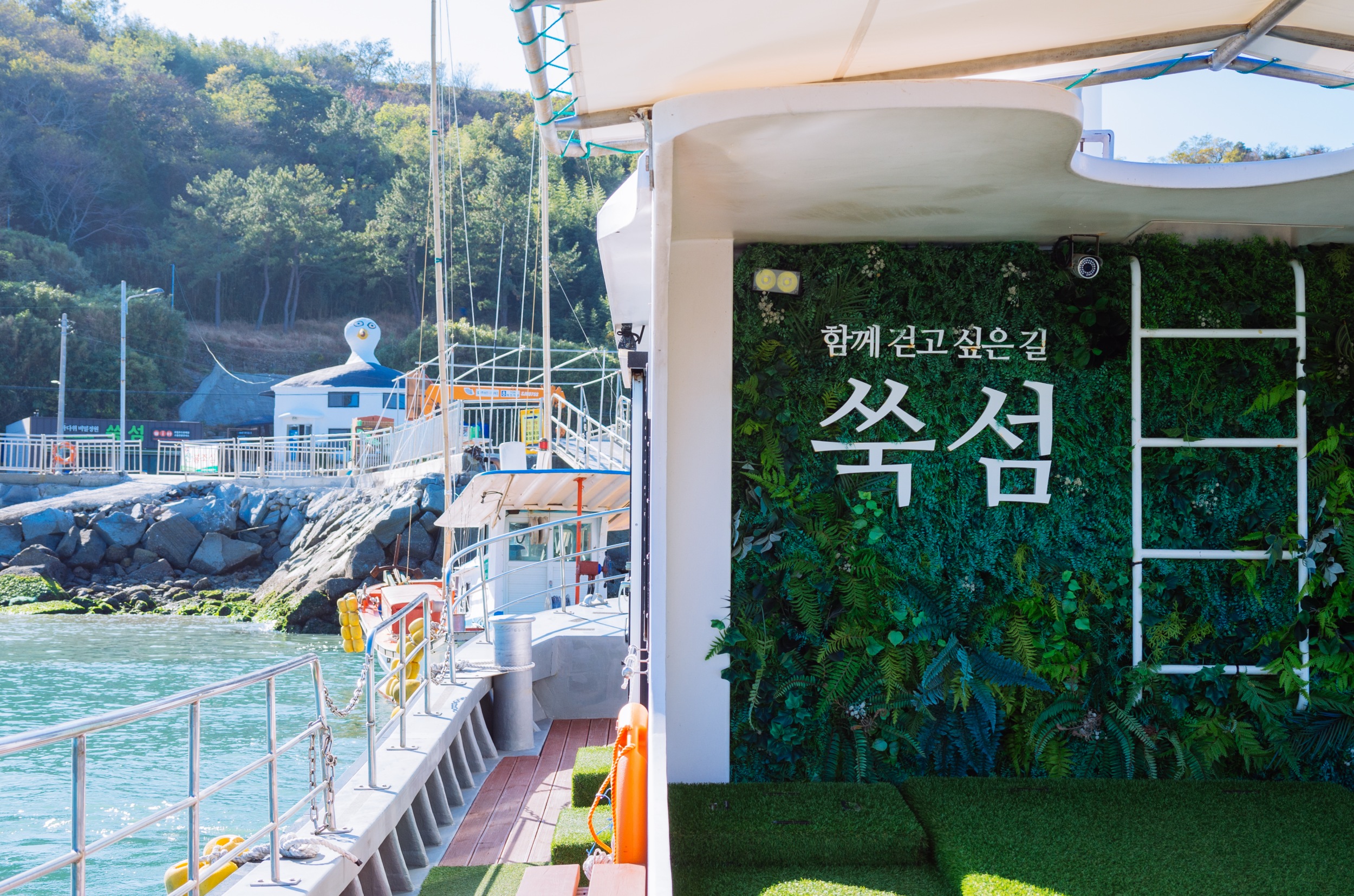 쑥섬호는 나로도항에서 출발한지 3분도 되지 않아 쑥섬에 도착한다. 쑥섬호 옆으로 갈매기 카페가 보입니다.