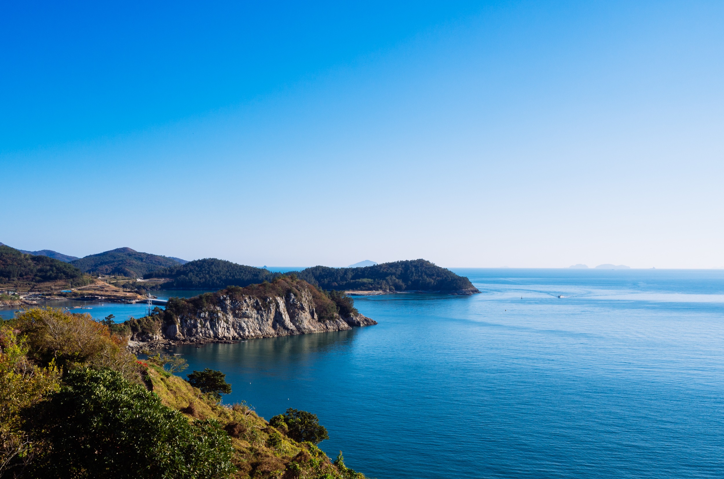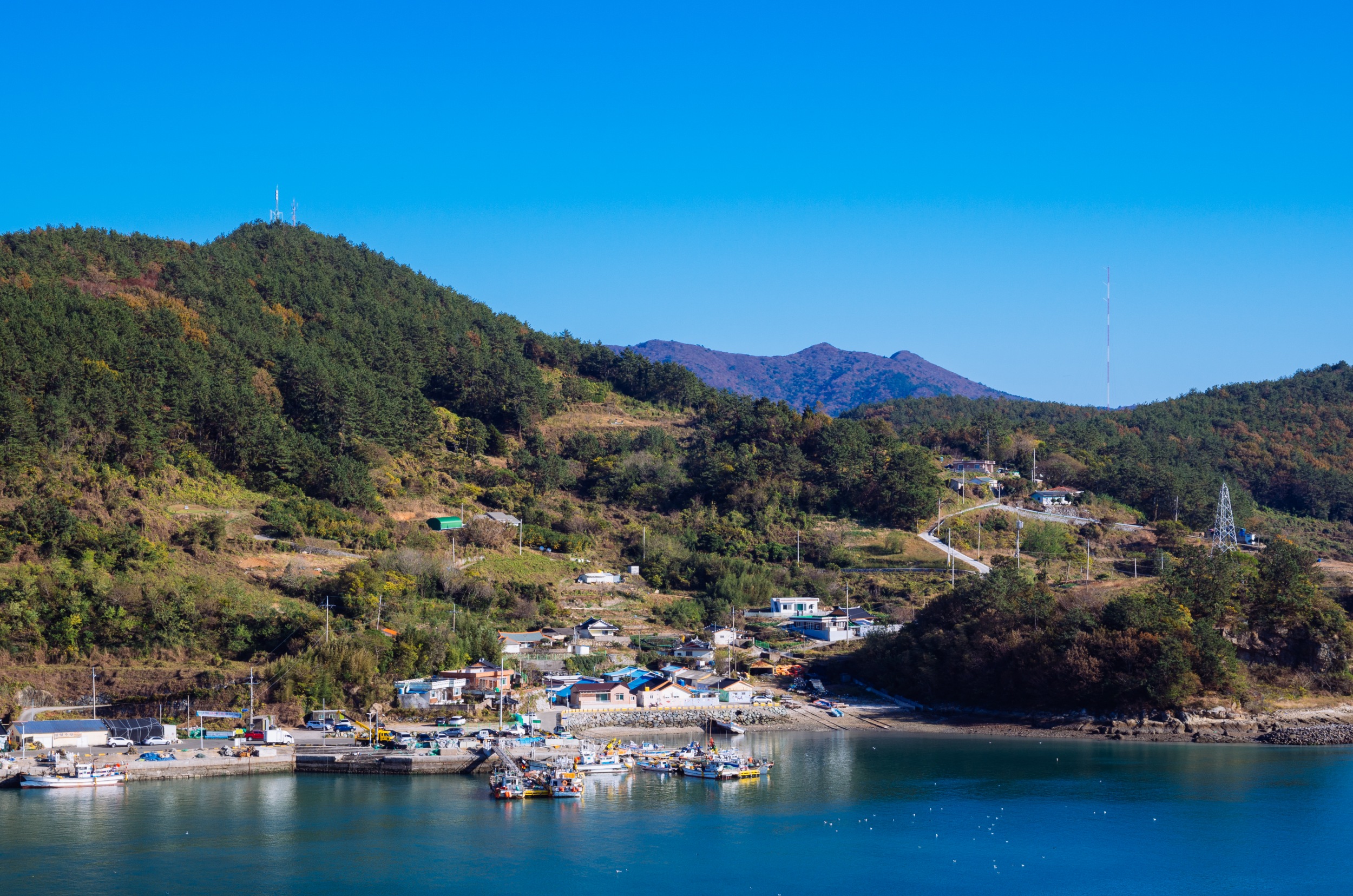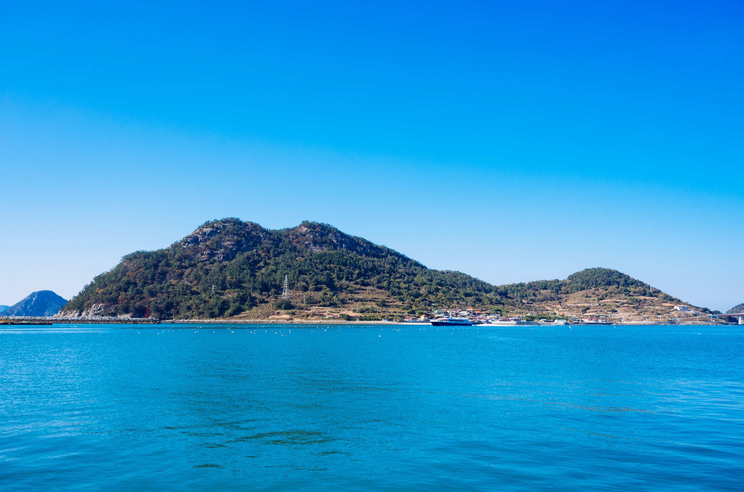 나로도항 뒤로 보이는 섬은 개도 일까 금오도 일까