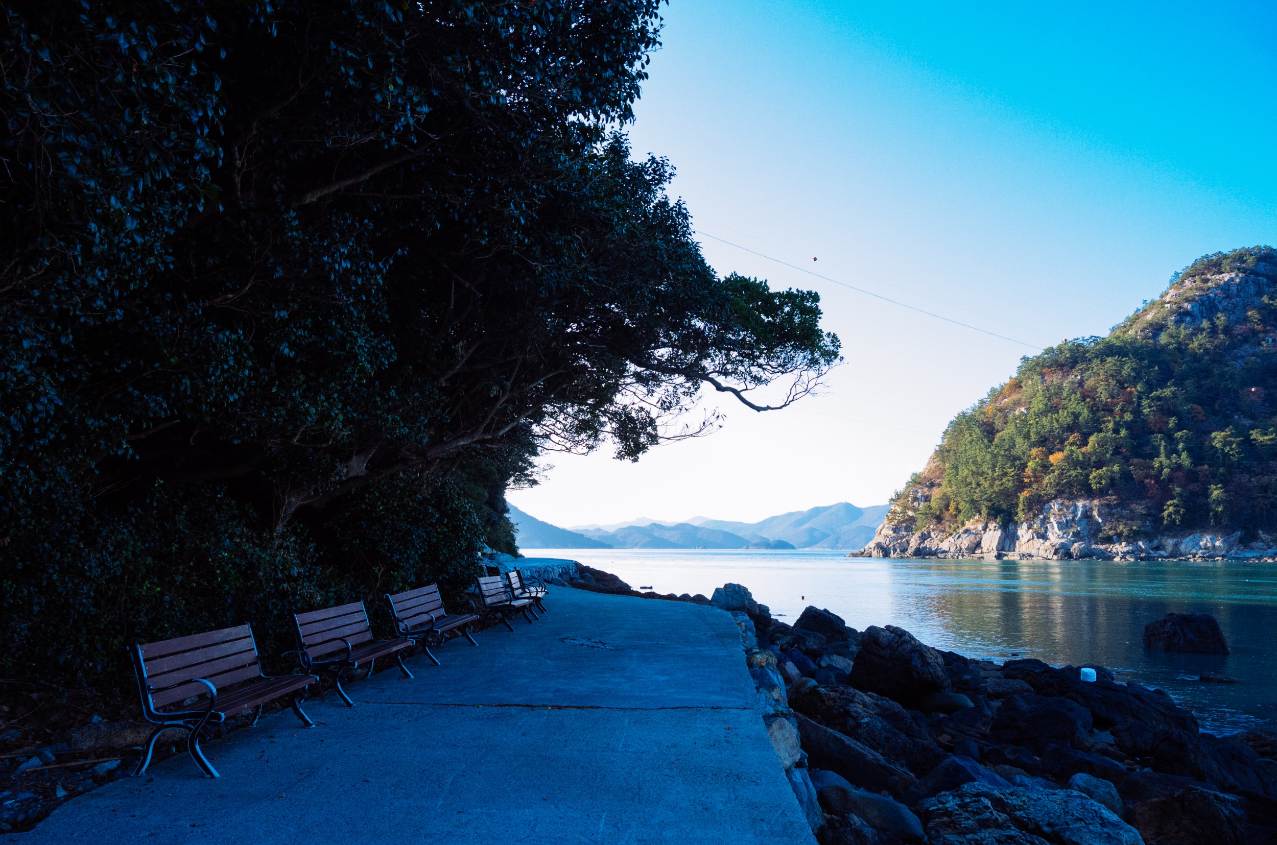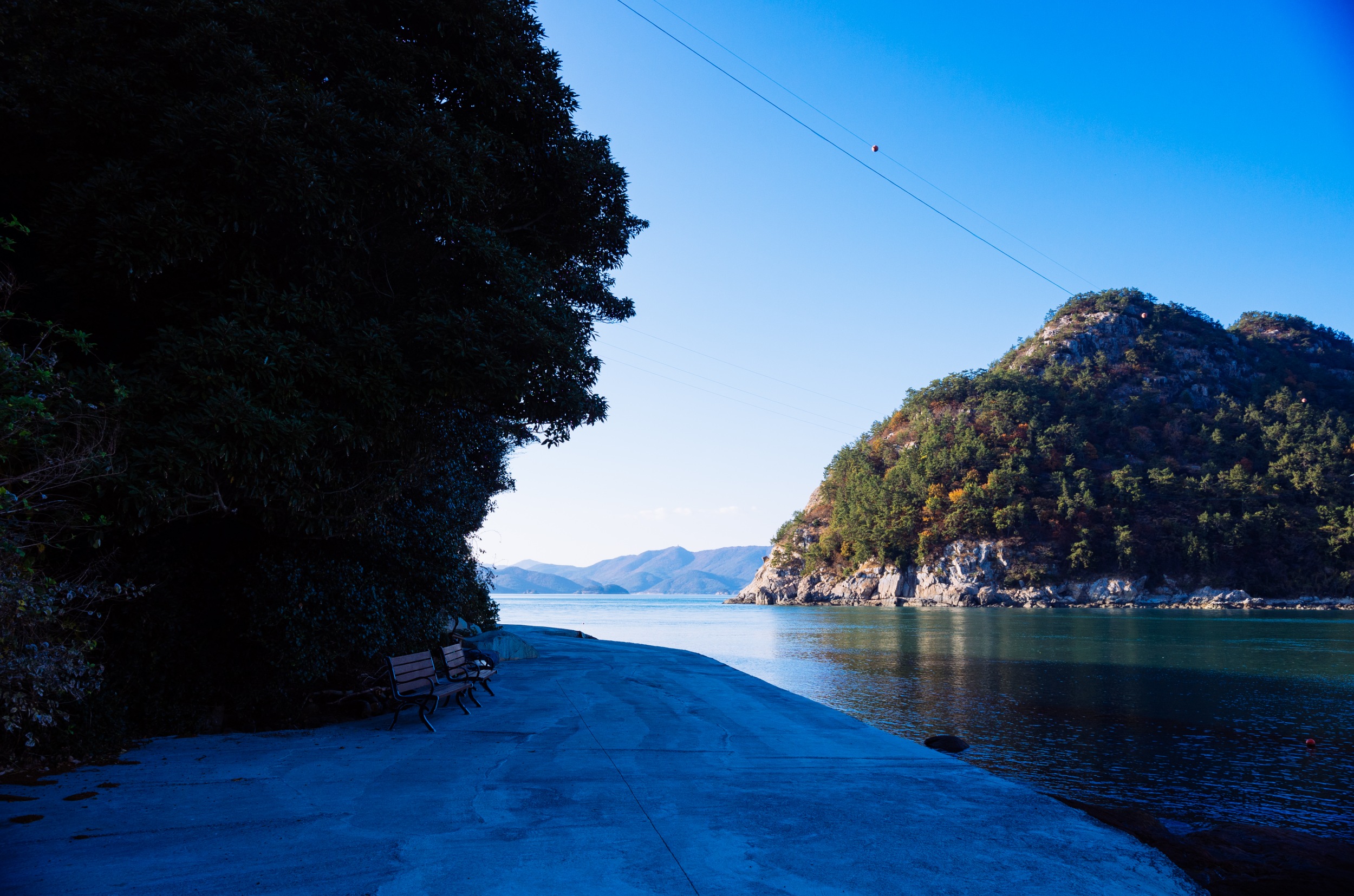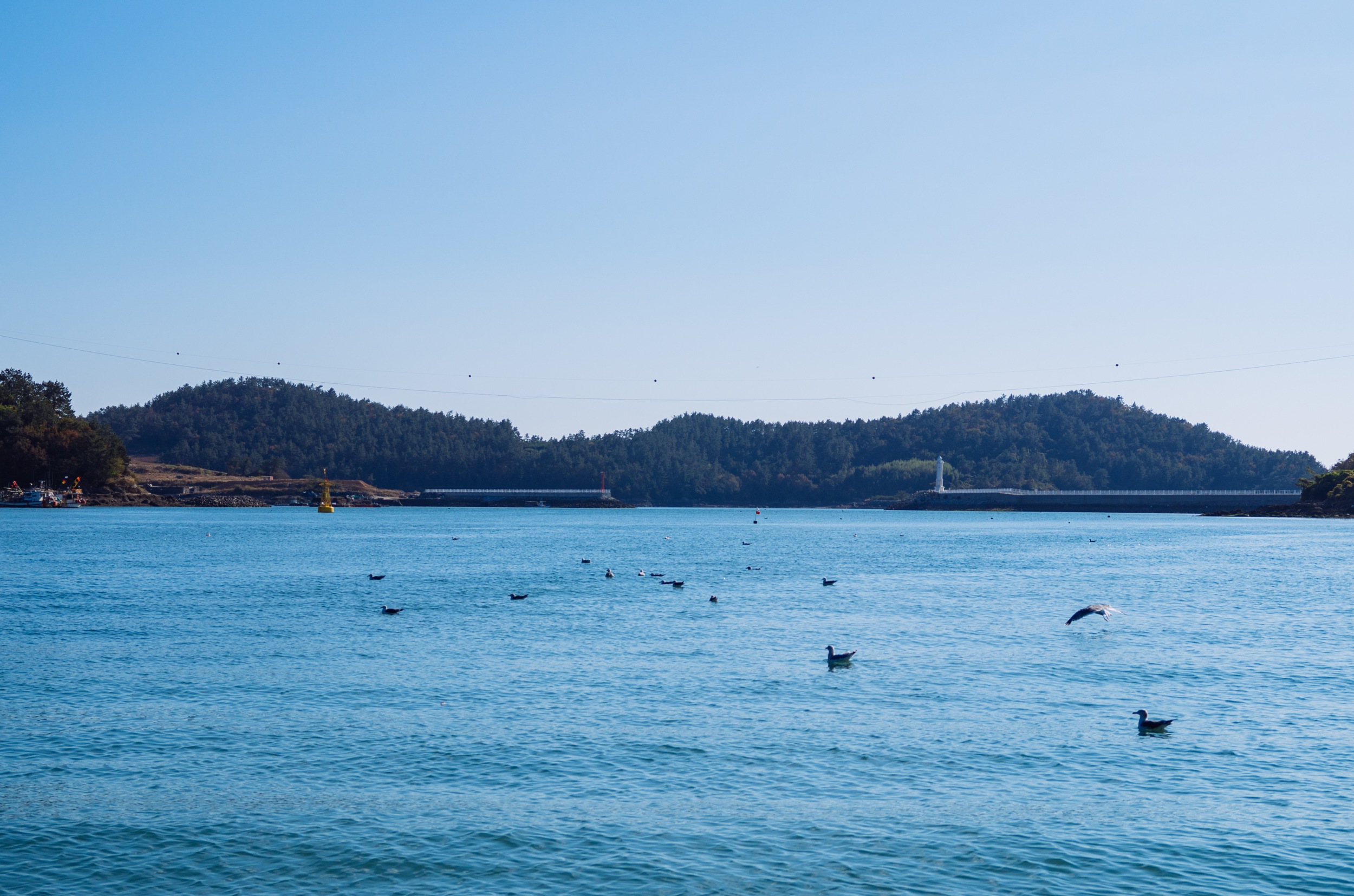 나로도항 뒤로 보이는 섬은 개도 일까 금오도 일까