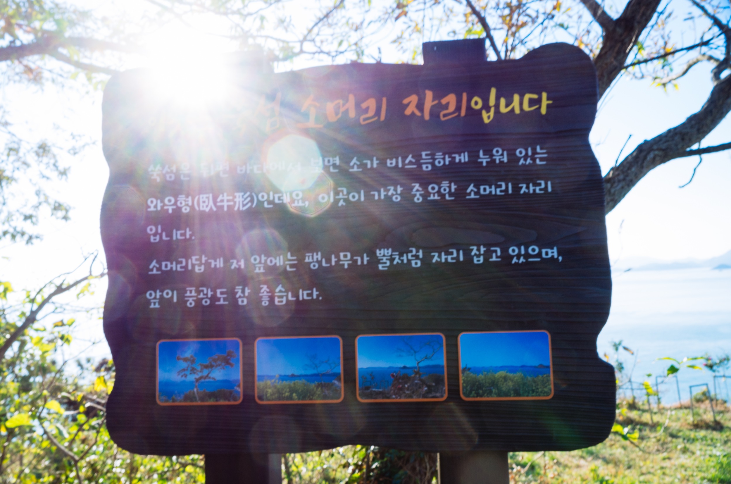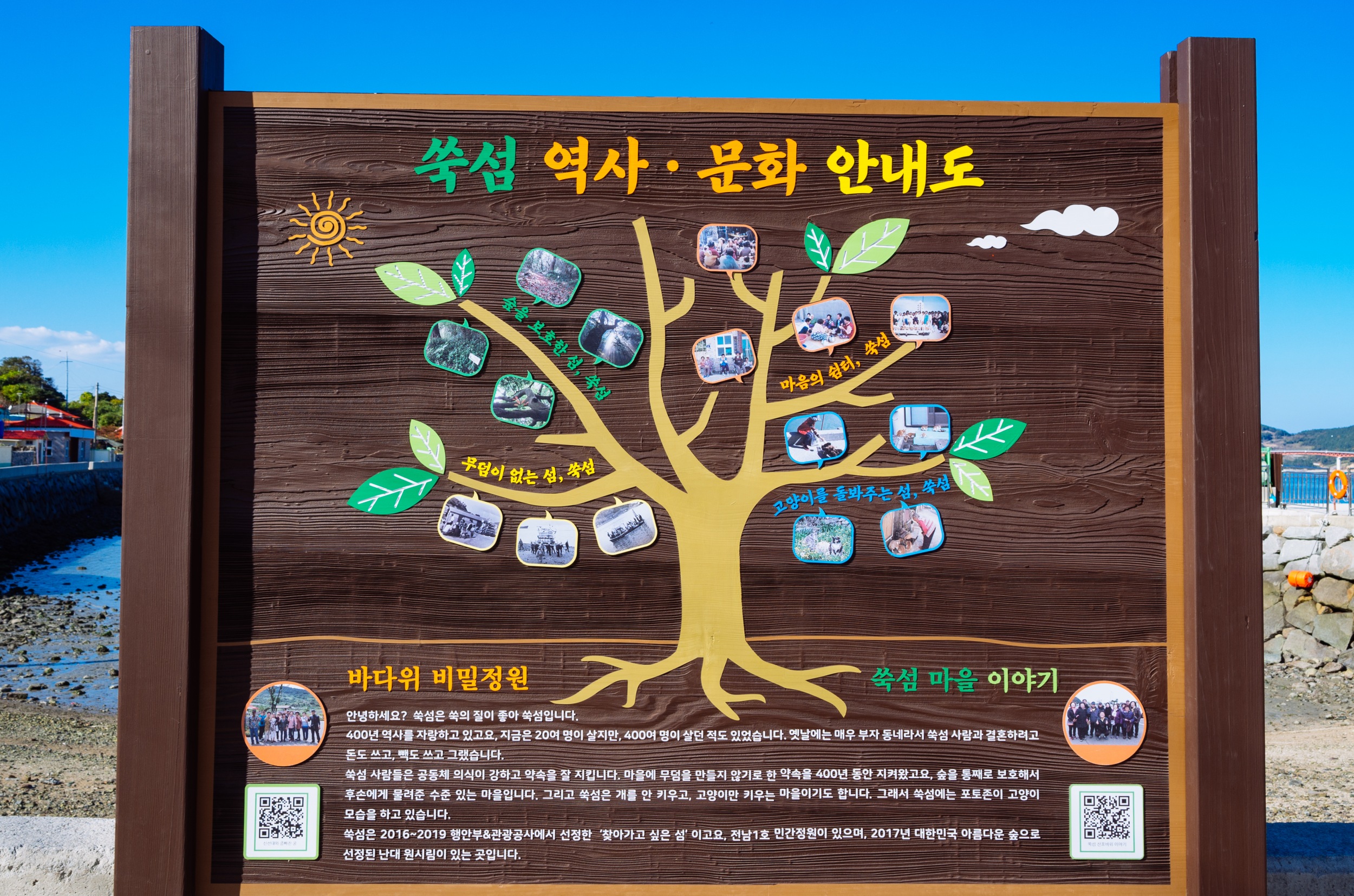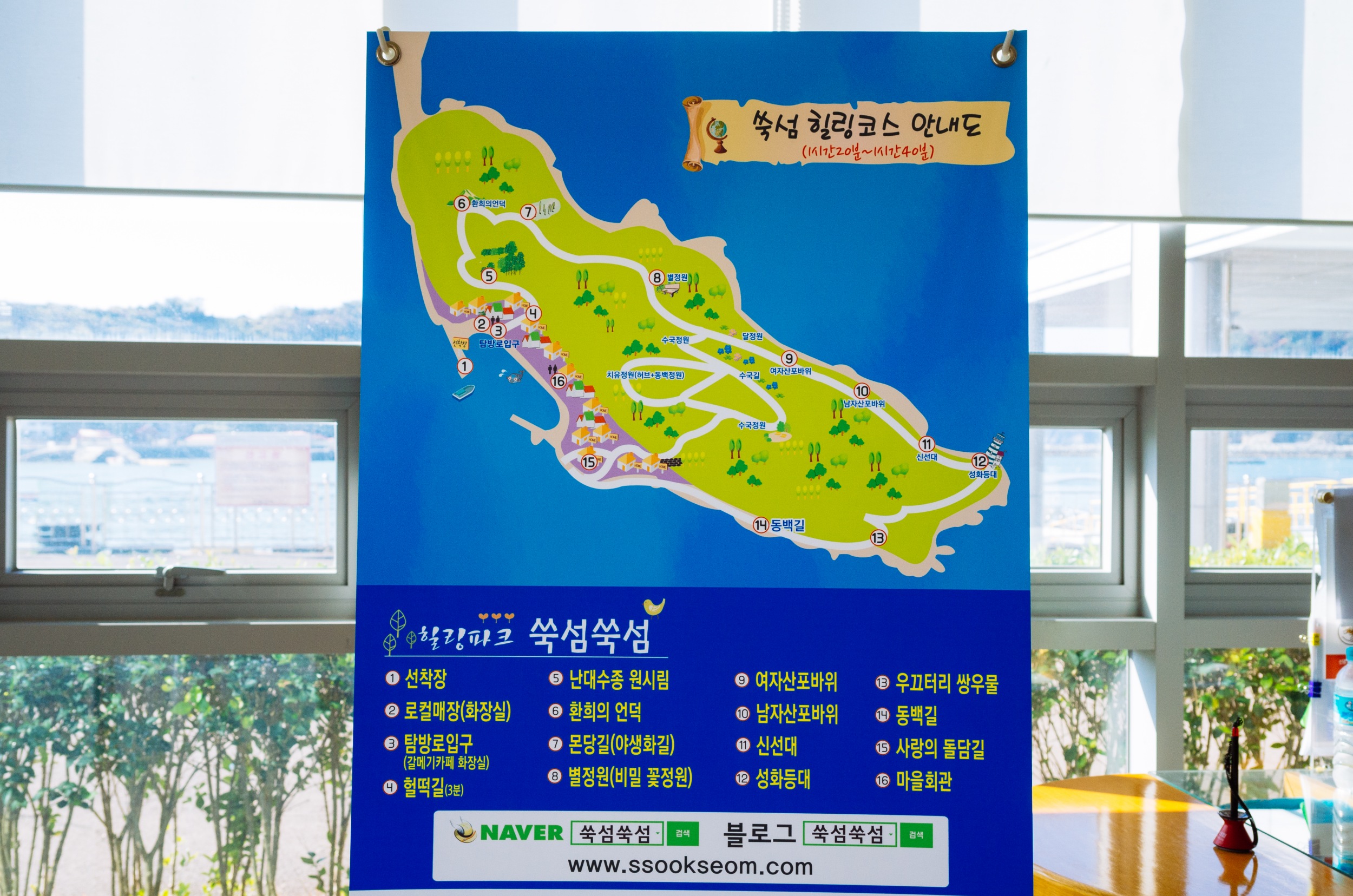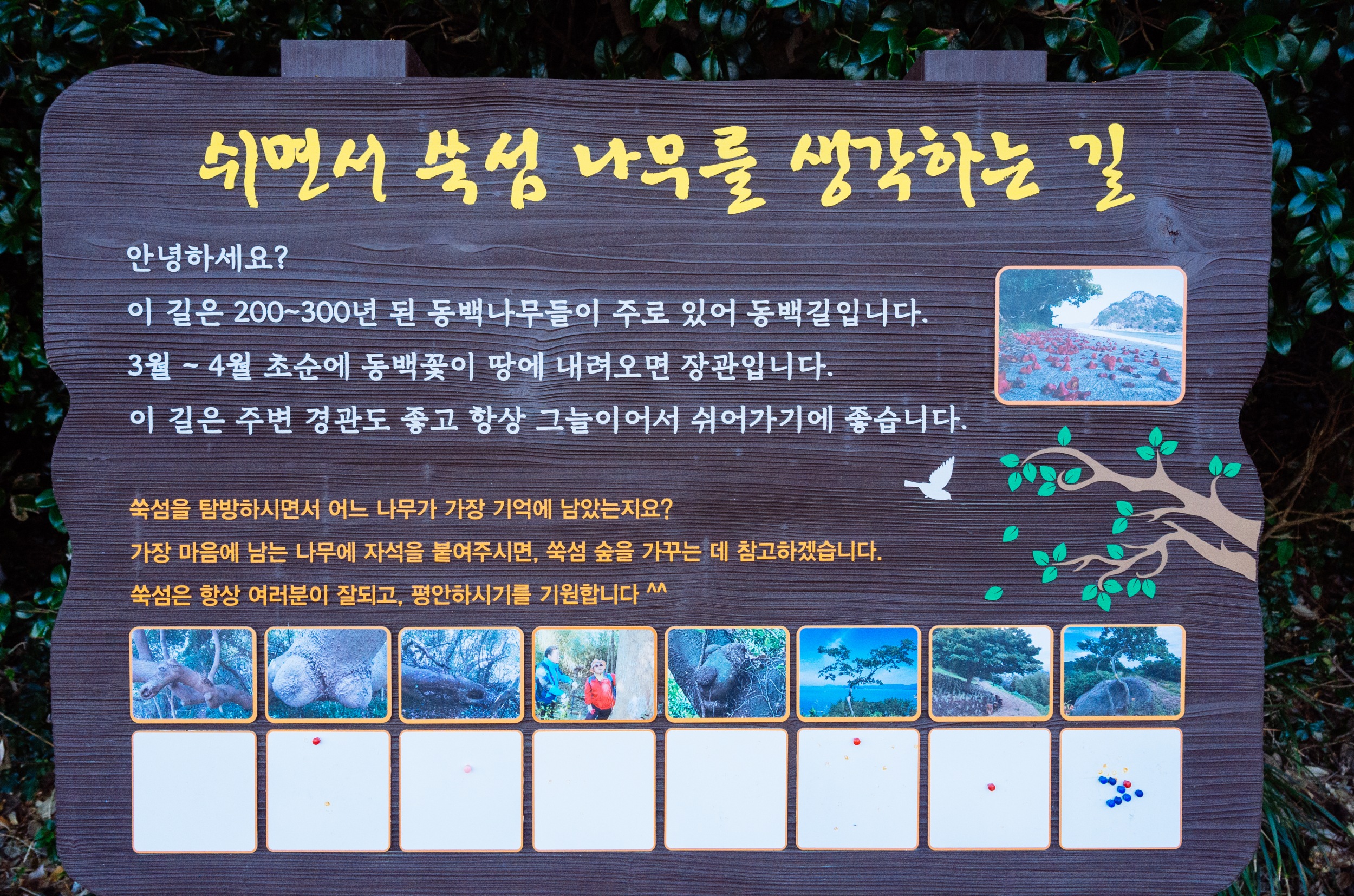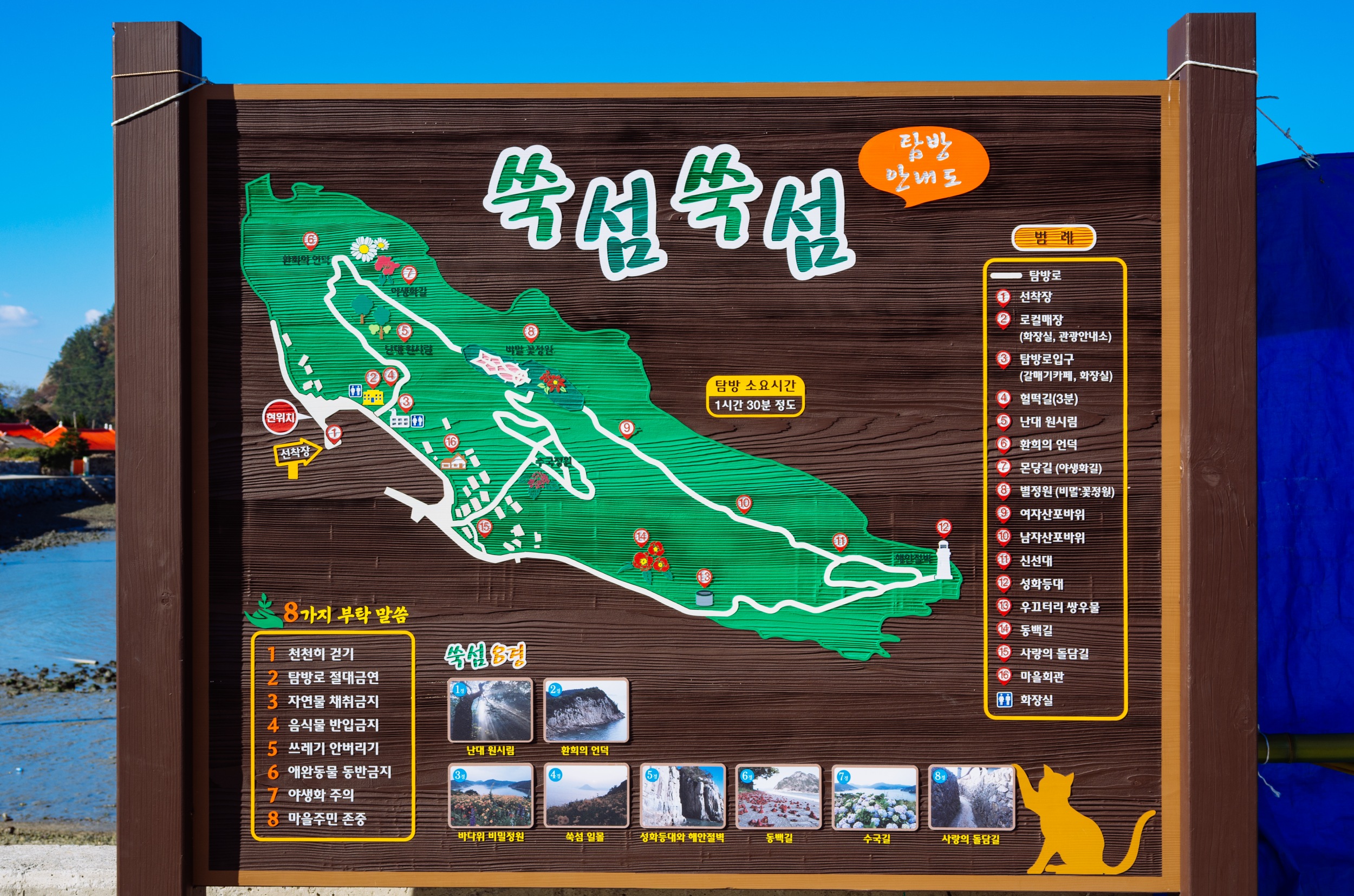 쑥섬에 도착하면 쑥섬 힐링코스 안내도가 보이고 쑥섬을 사랑하는 마을 사람들의 바람이 적혀 있습니다.