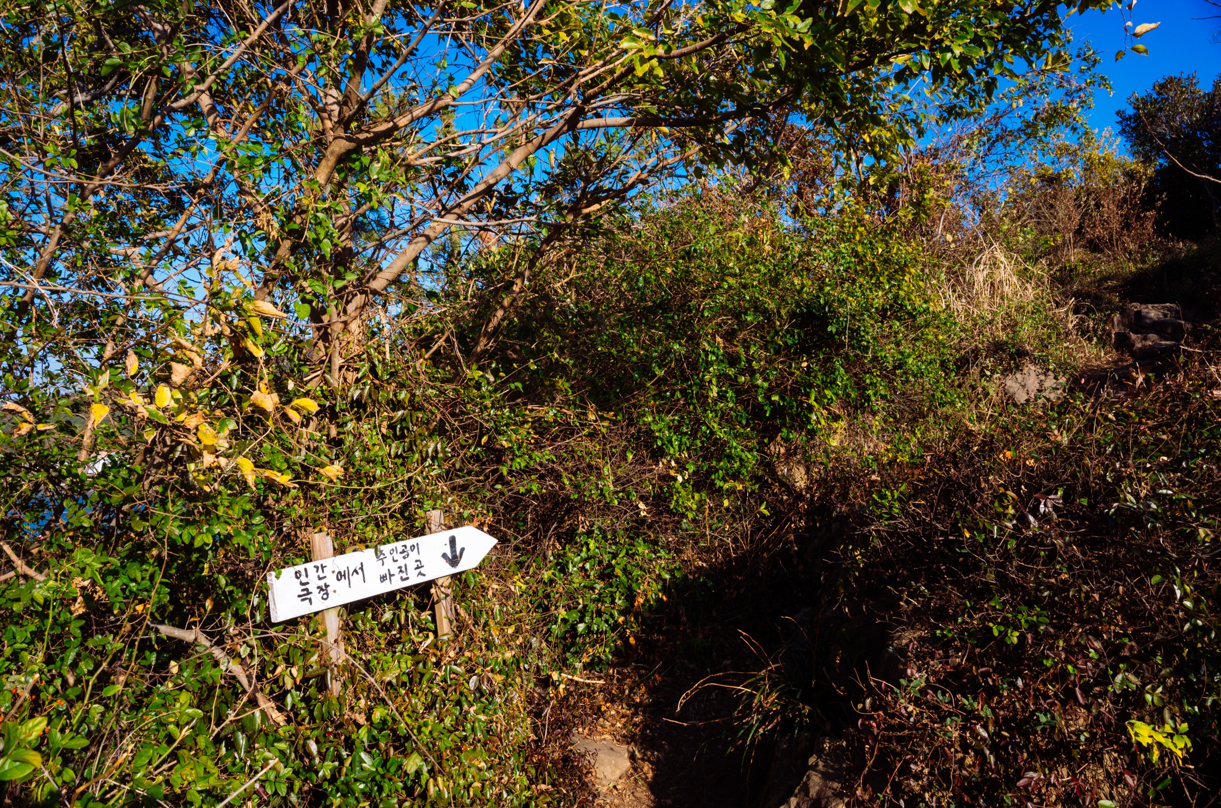 신선대와 성화등대 가는 선택의 갈림길입니다. 저는 바다 풍광이 보고 싶어 거친길로 내려갔습니다.