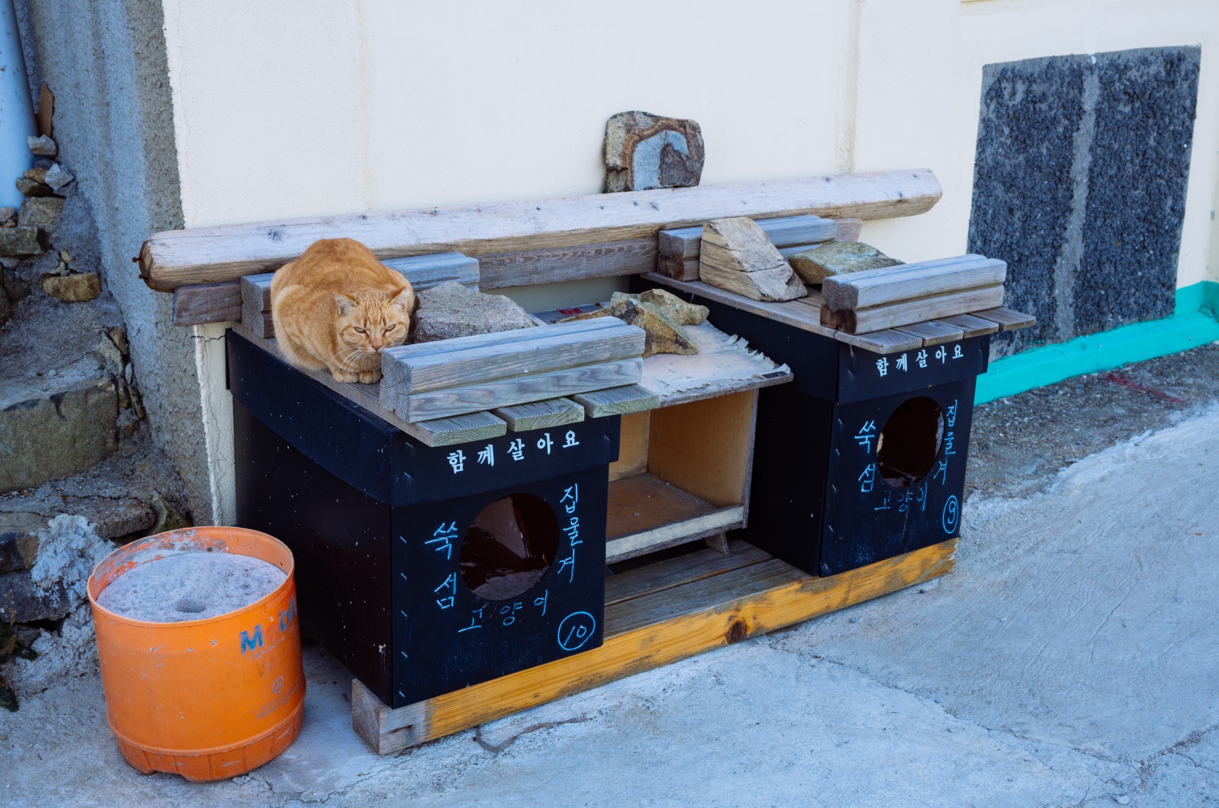 쑥섬의 또 다른 이름 고양이 섬으로 불리는데 마을 산책을 하면 주변에 많은 고양이들을 만나 볼 수 있습니다.