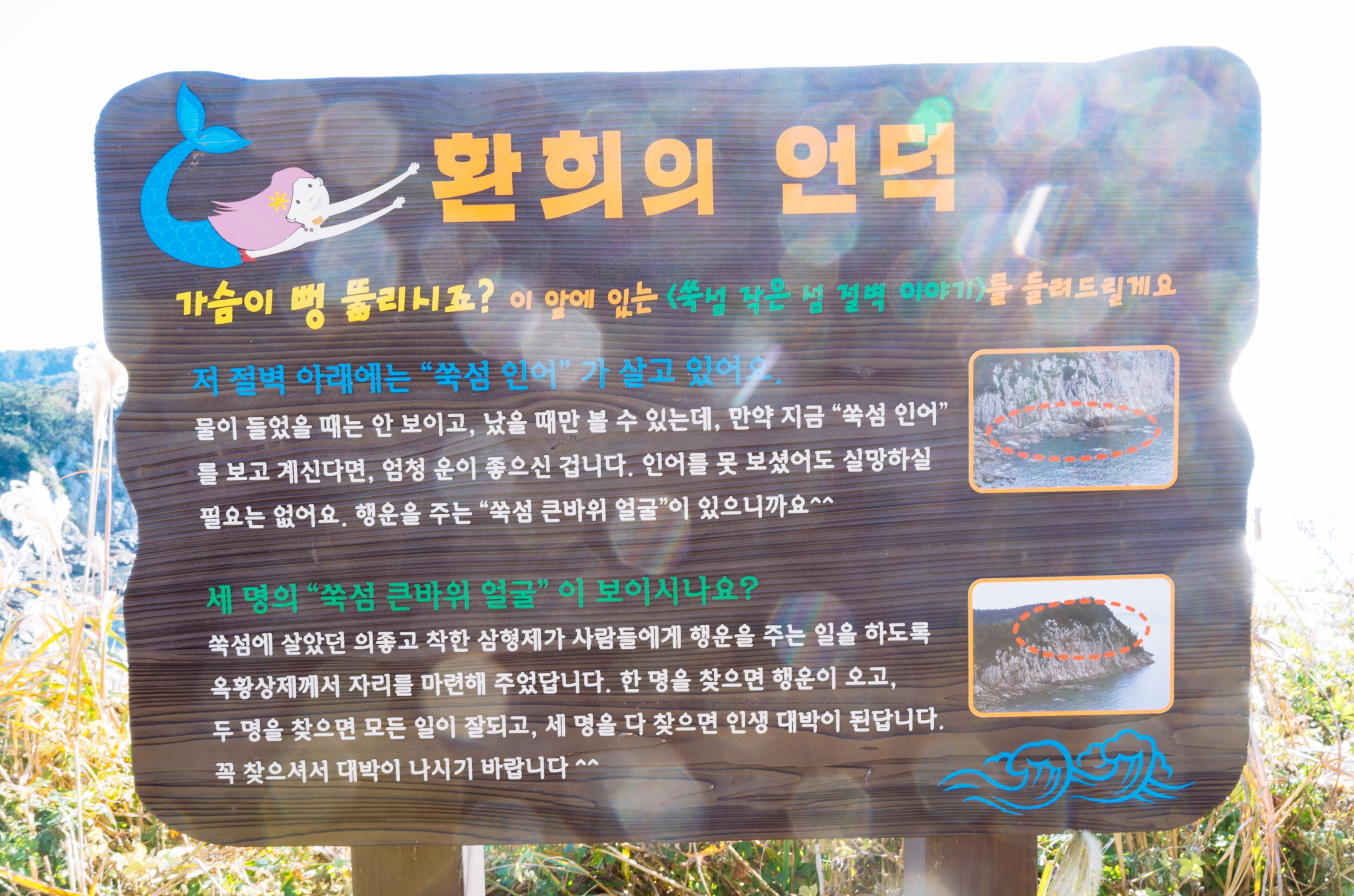 쑥섬 큰바위 얼굴 삼형제와 쑥섬 인어를 찾아 보세요.