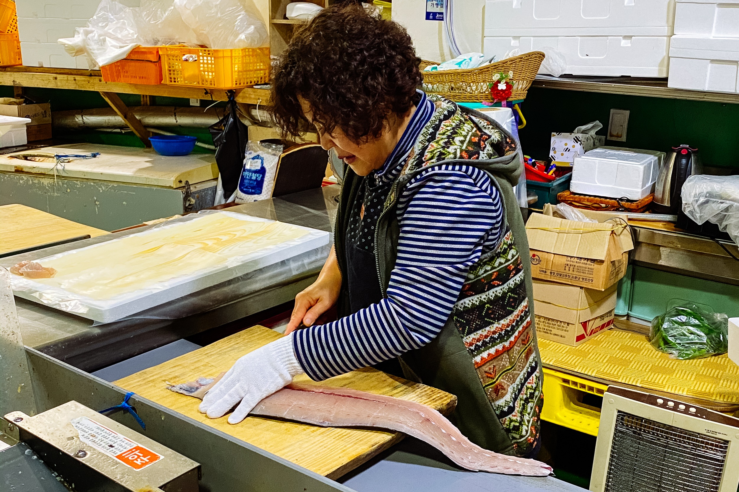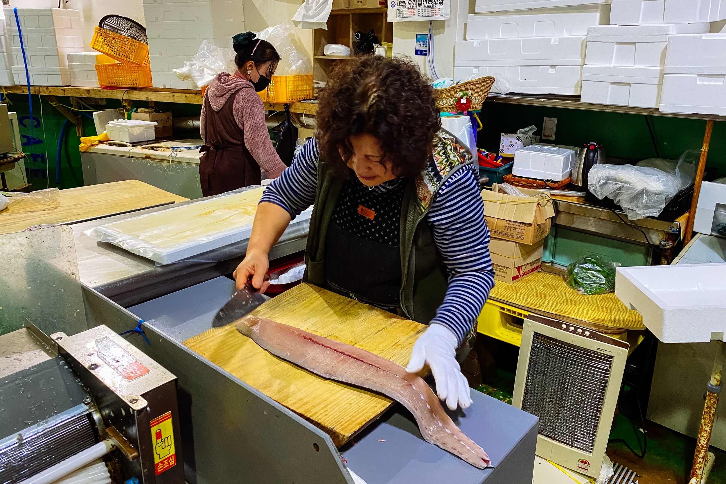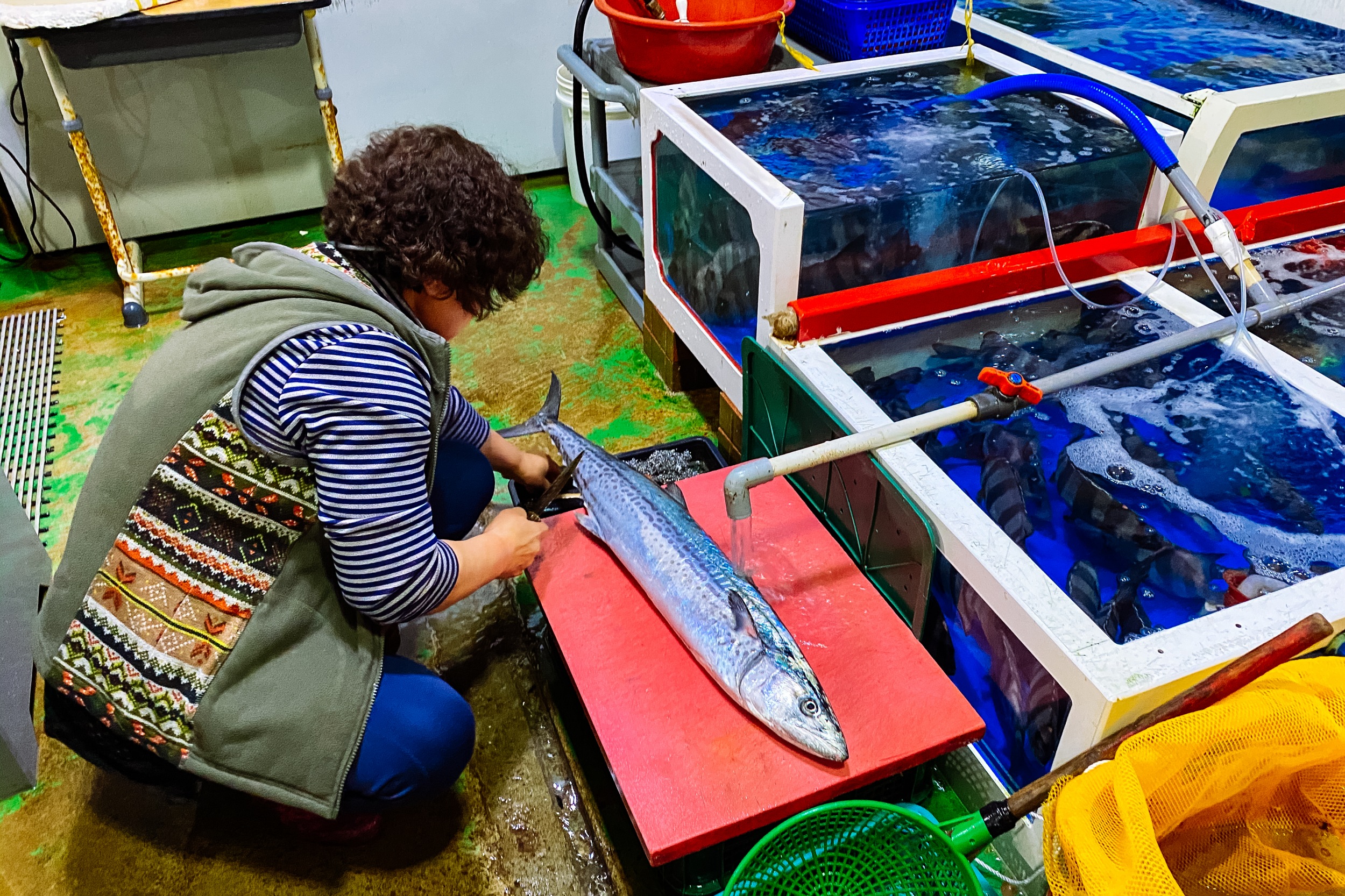 나도도 쑥섬 여행 다녀오고 바로 앞에 보이는 나로도 수협 회센터에 들러 요즘 제철인 삼치회를 주문하러 갔습니다. 회센터에 들어가자마자 보이는 곳에서 삼치회 있는지 여쭤봤는데 오늘 잡았다며 싱싱한 삼치 4kg을 회포장으로 주문했습니다.