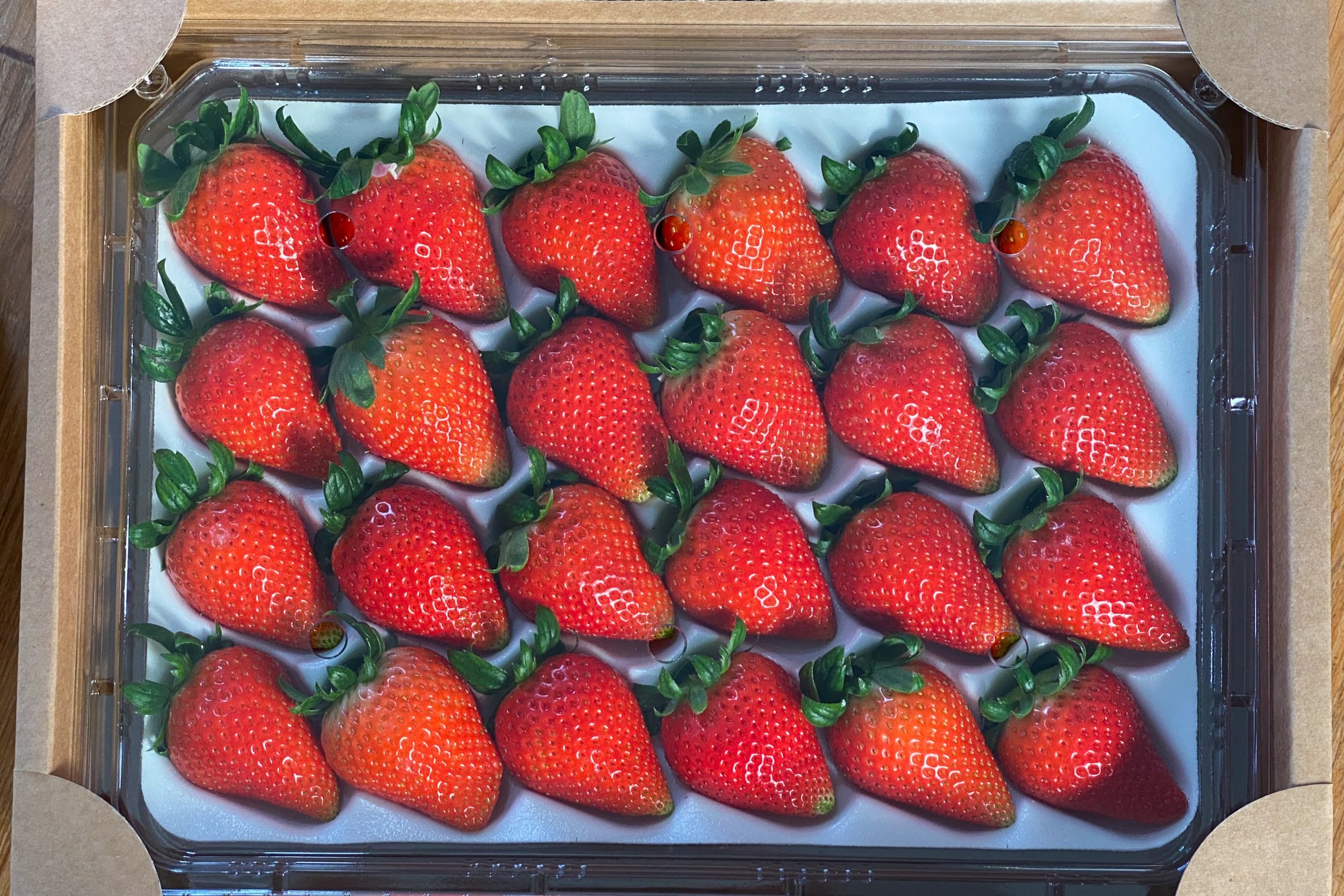 집에 도착해서 비타베리 딸기 24구와 30구 크기를 비교하기 위한 사진입니다.