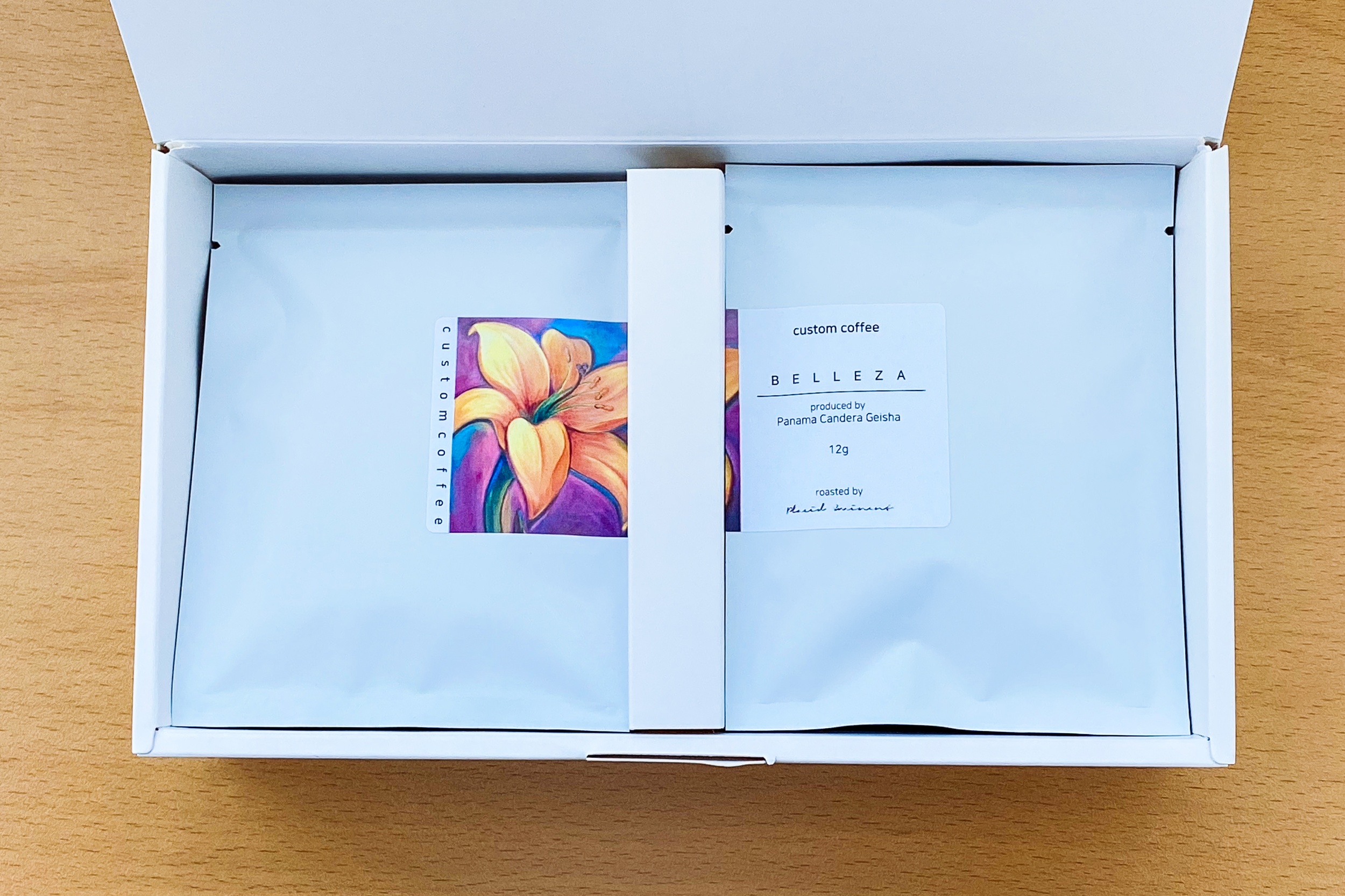 파나마 게이샤 벨레사 드립백 세트는 부드럽고 산뜻한 맛으로 즐길 수 있는 개당 10g 세트(35,000원)와 좀 더 진한 향미로 즐길 수 있는 개당 12g 세트(38,000) 2종류로 판매되고 있습니다.