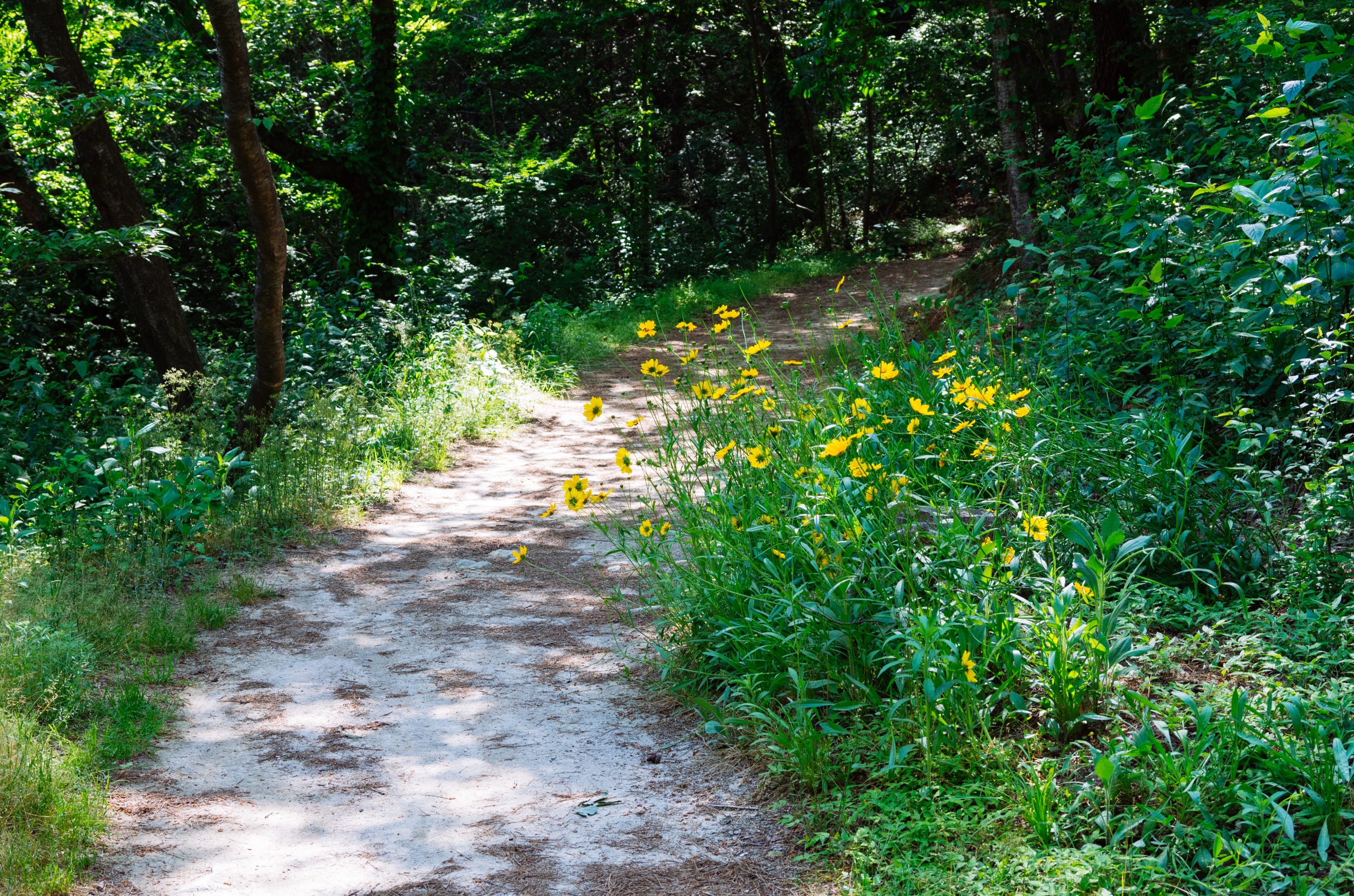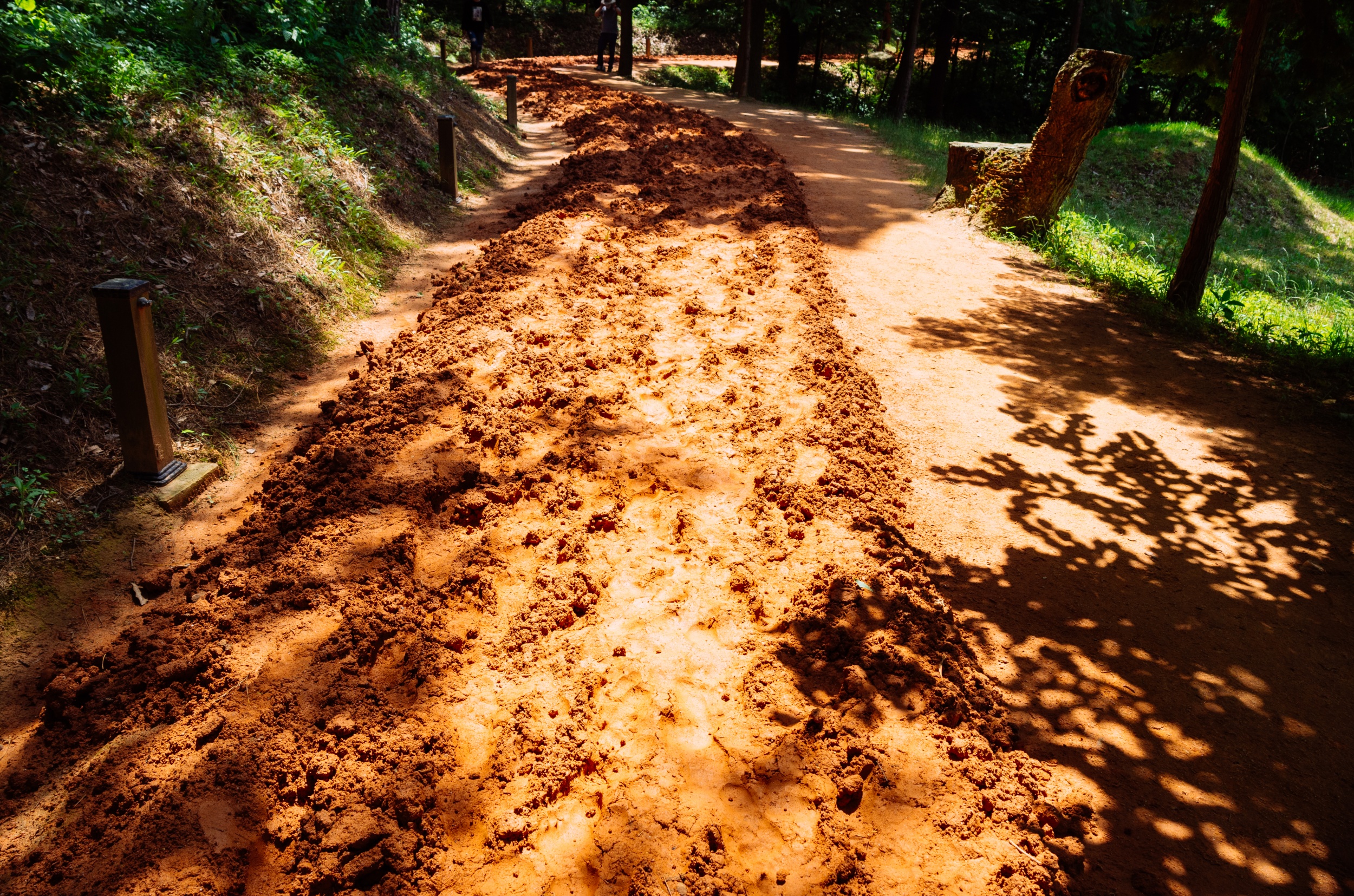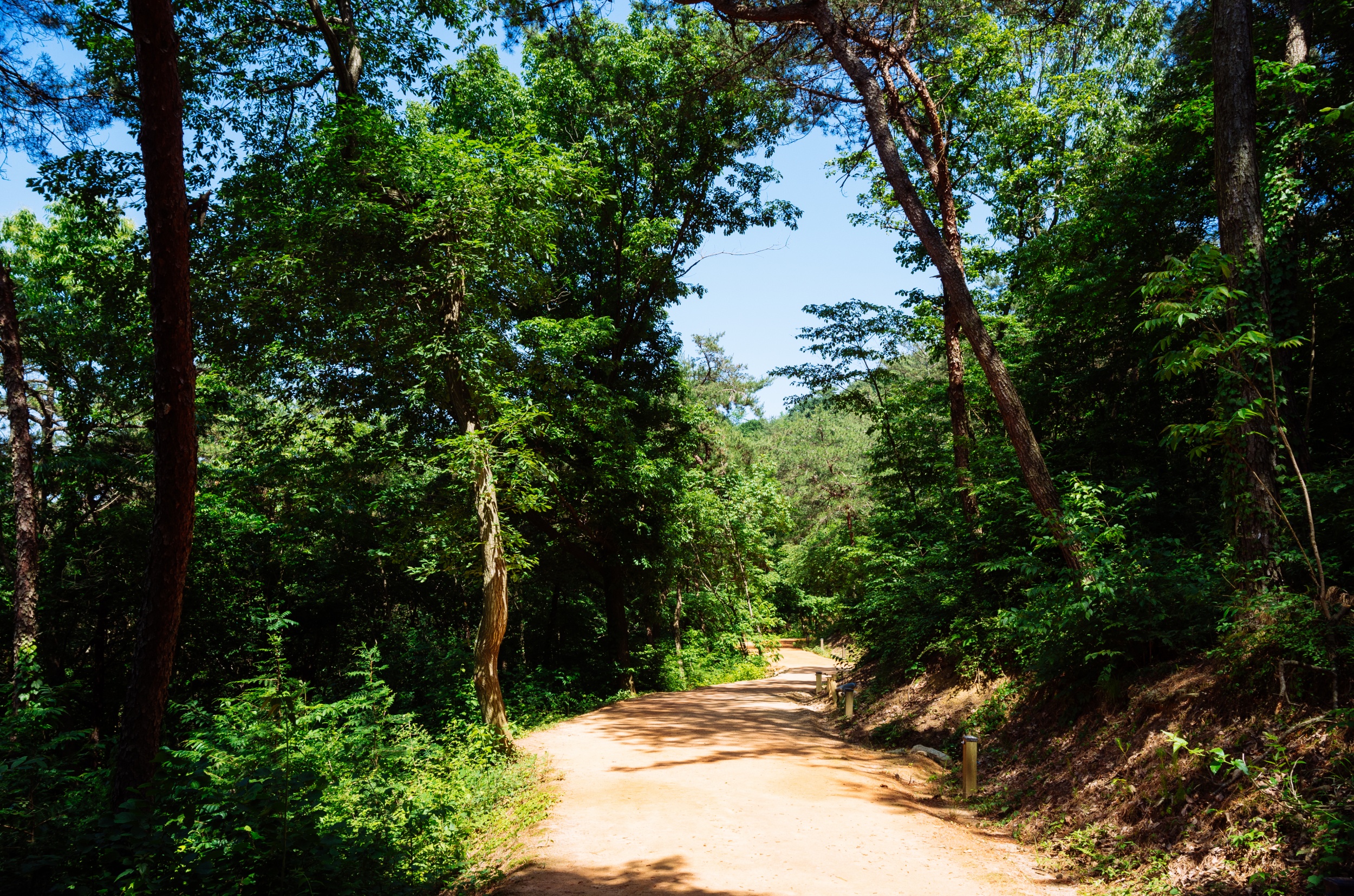 마른 황톳길 정비가 잘 되어서 맨발로 걷기에 정말 편했습니다.