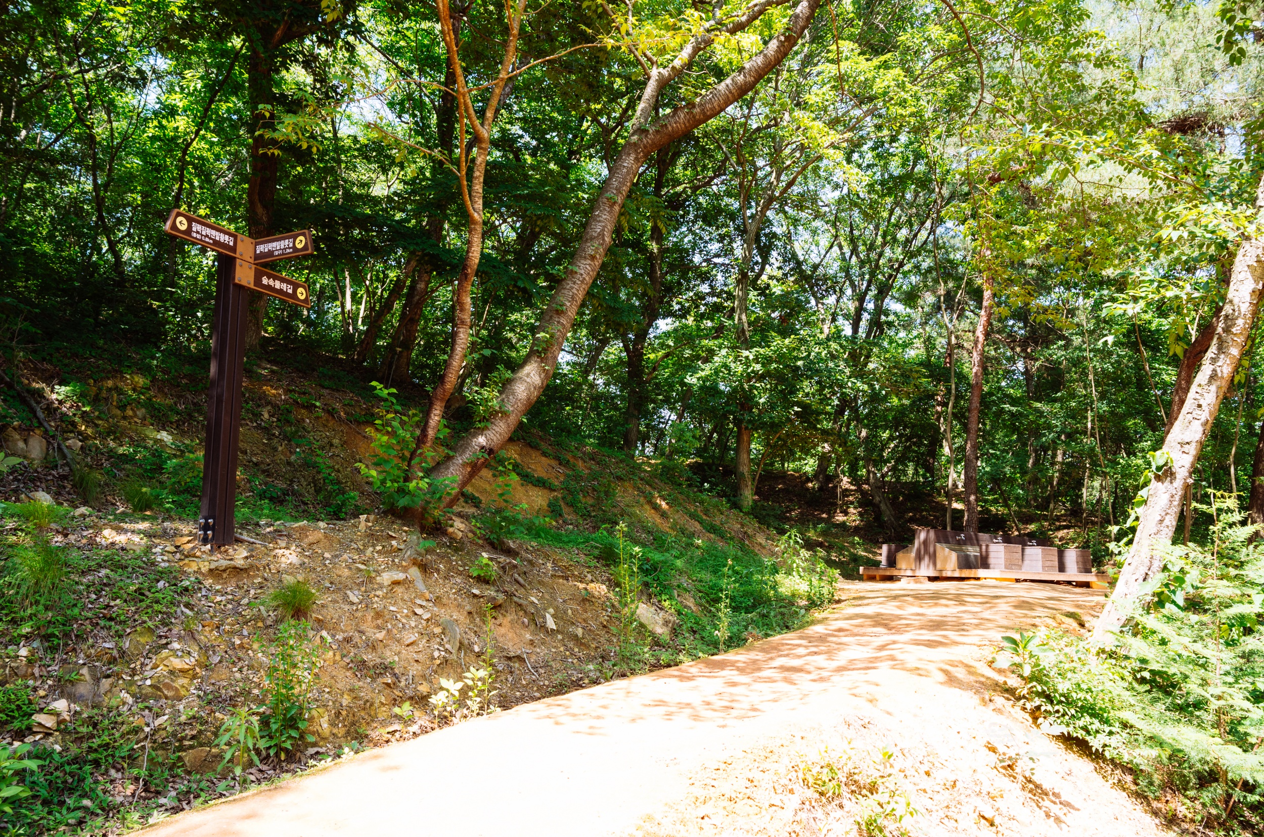 숲속 둘레길을 걷다 쉬어 갈 수 있는 정자와 의자도 준비 되어 있어 조성이 정말 잘 되어 있다는 느낌입니다.