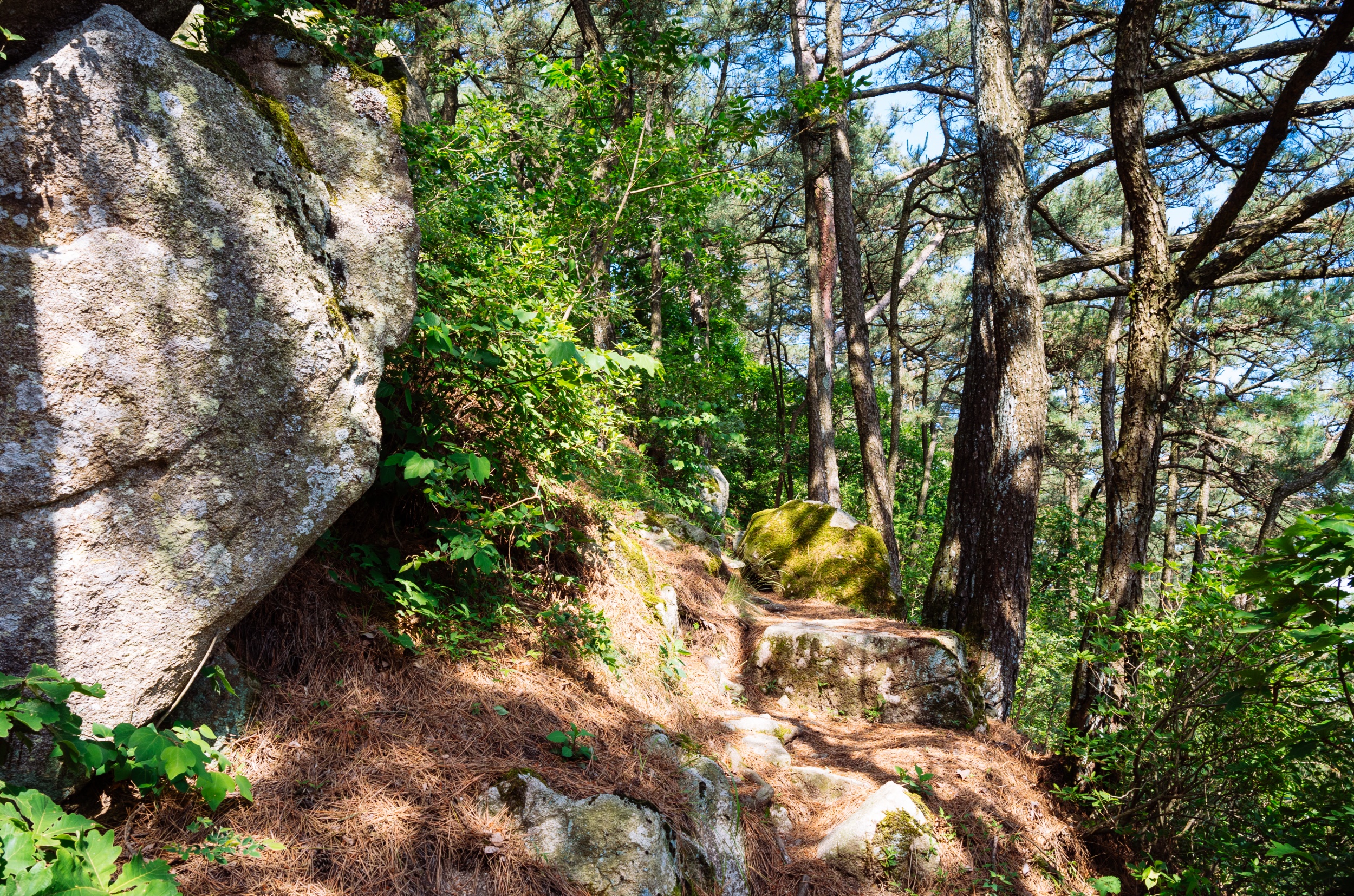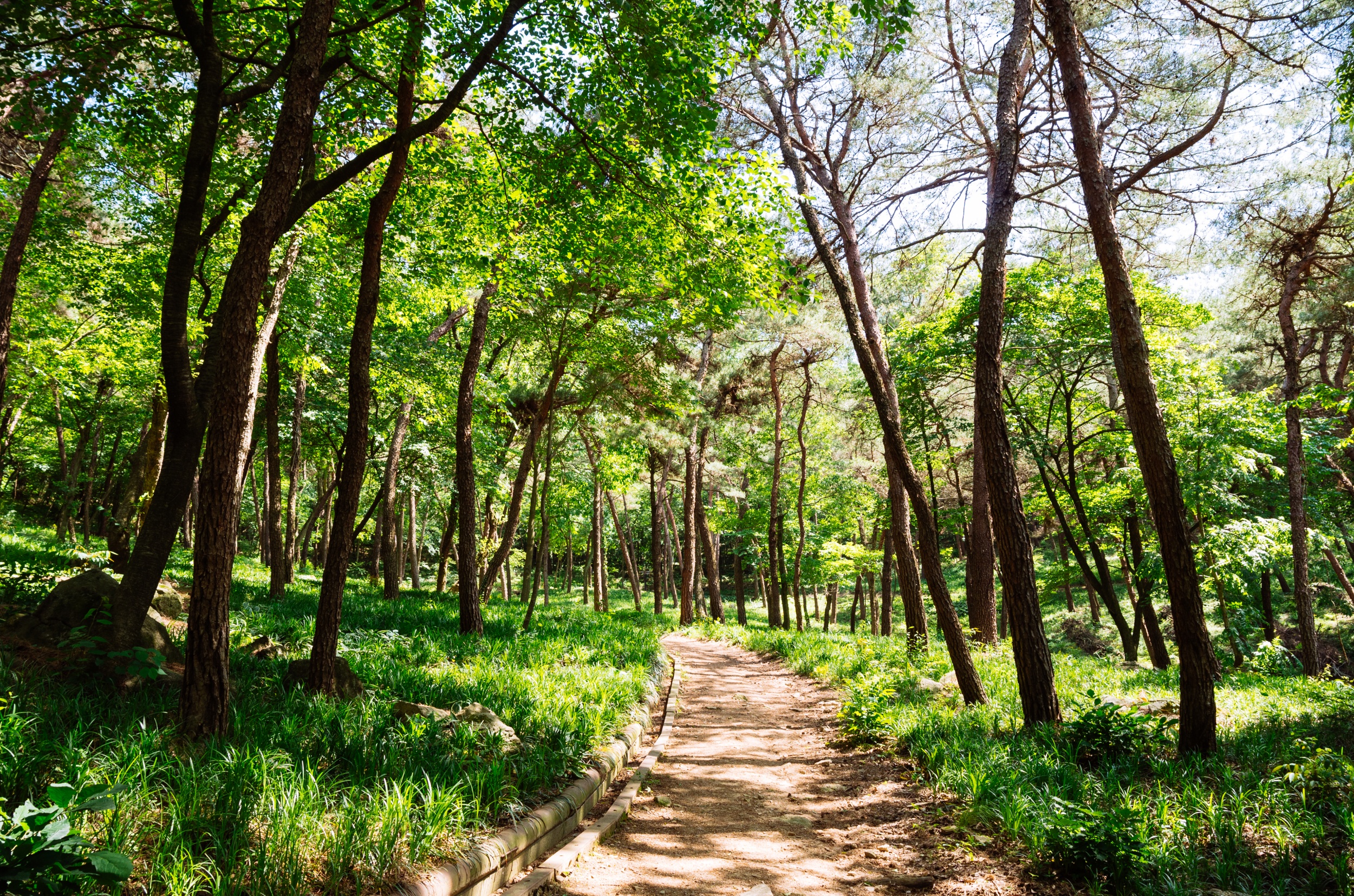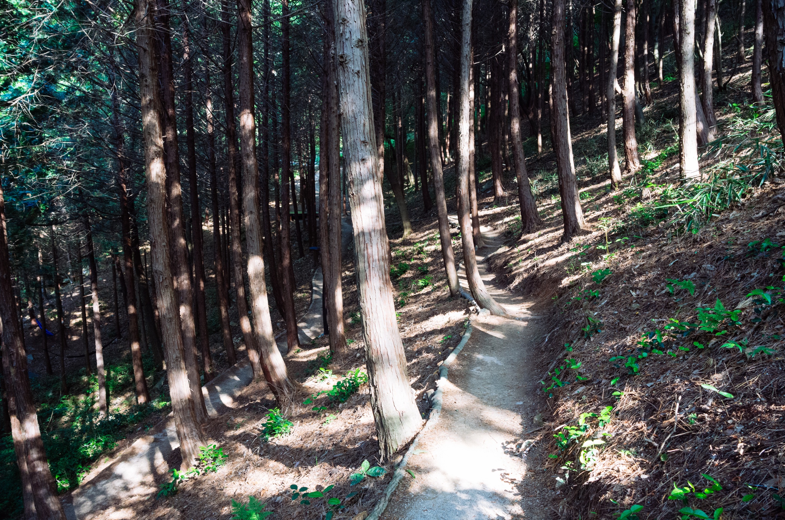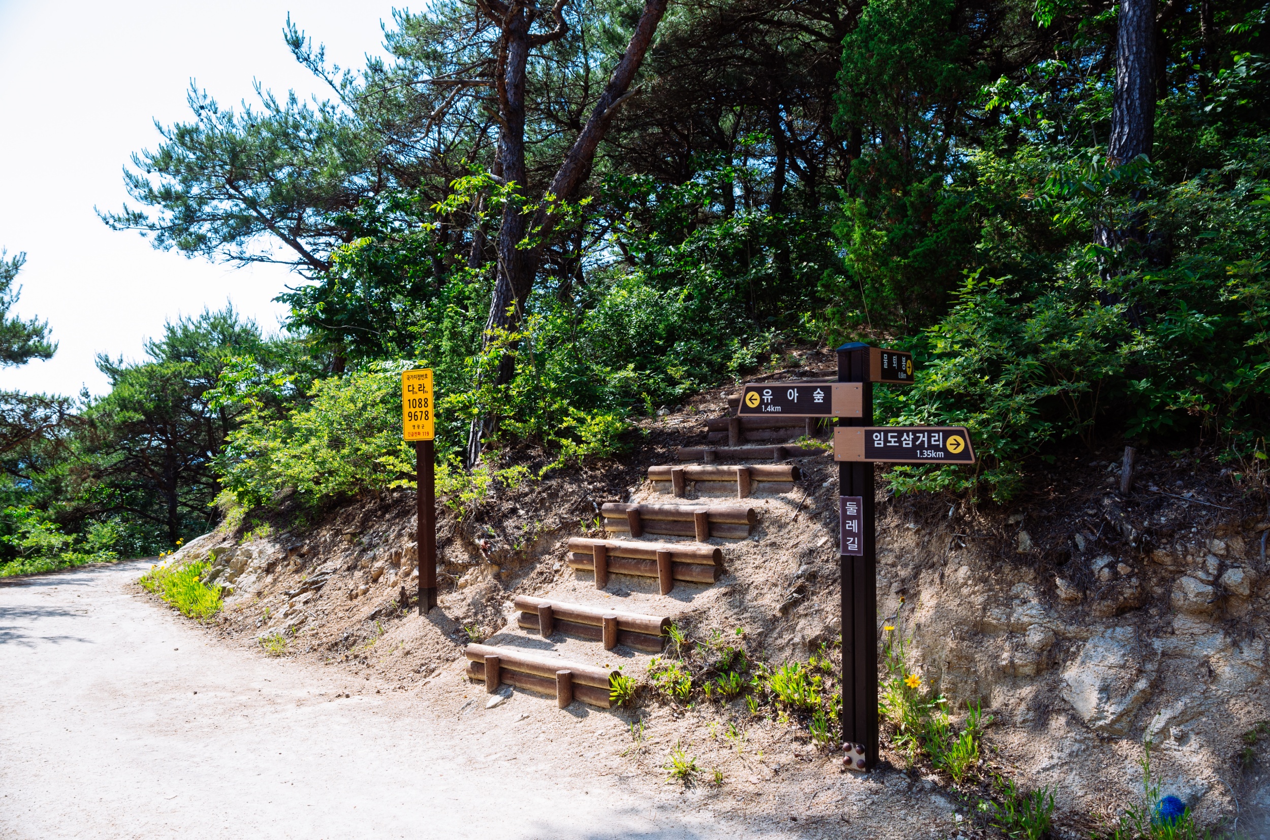사진에는 없지만 세족장 앞에는 정자와 평상이 있어서 쉬어갈 수 있어서 간식 먹기에 좋습니다. 시원한 물로 세족 후 신발을 신고 소나무숲 예술원으로 올라가는 길입니다.