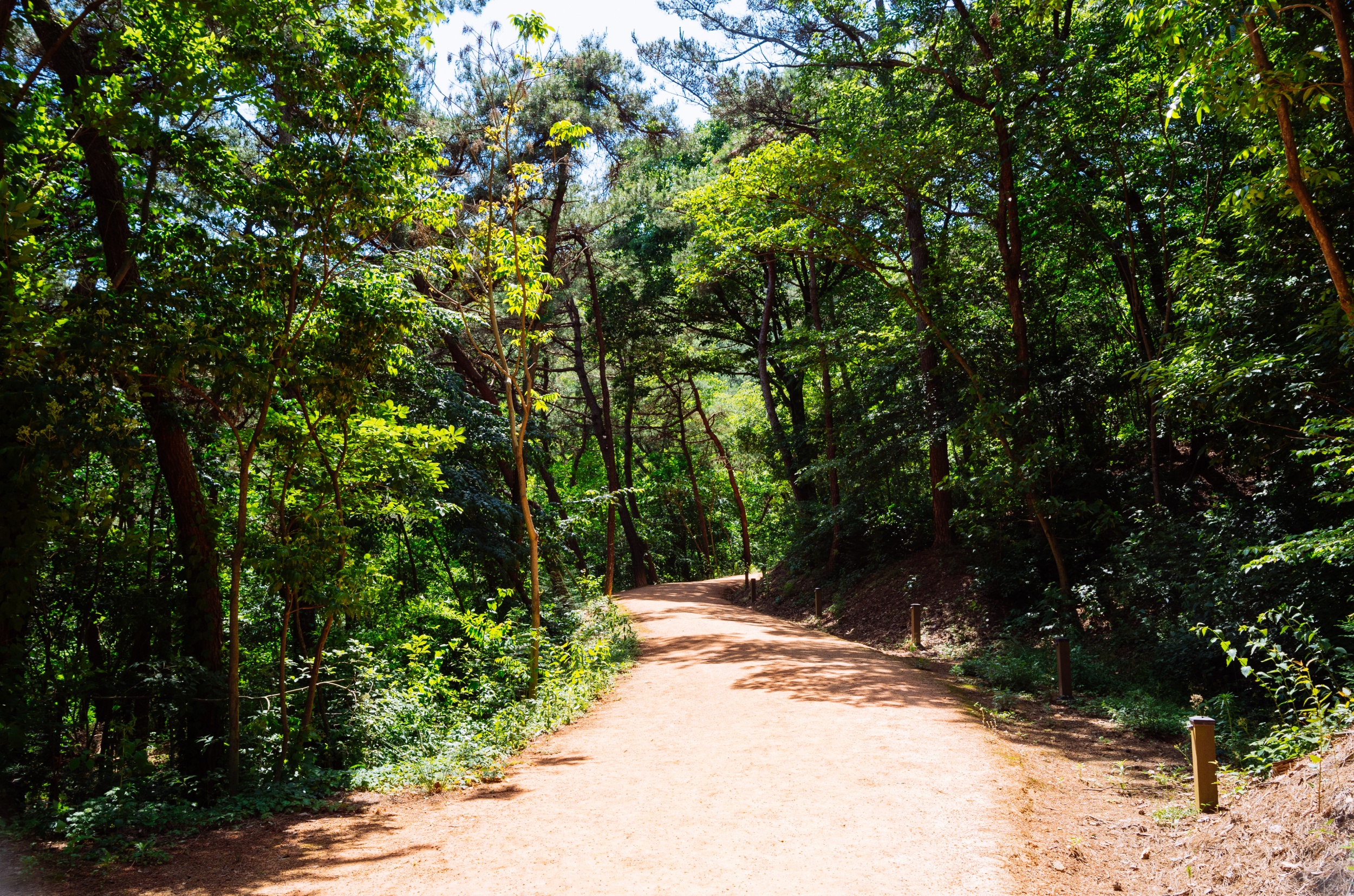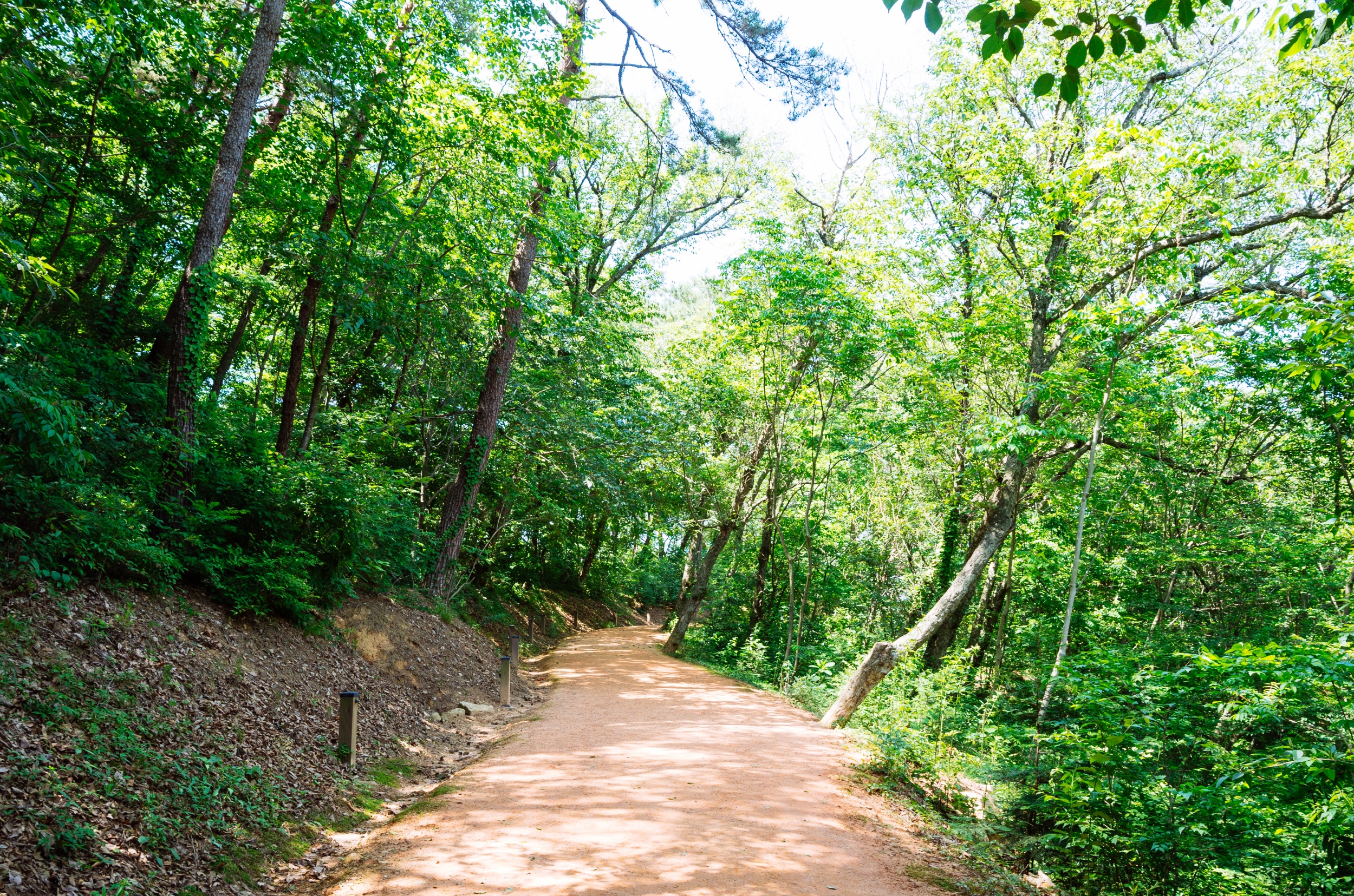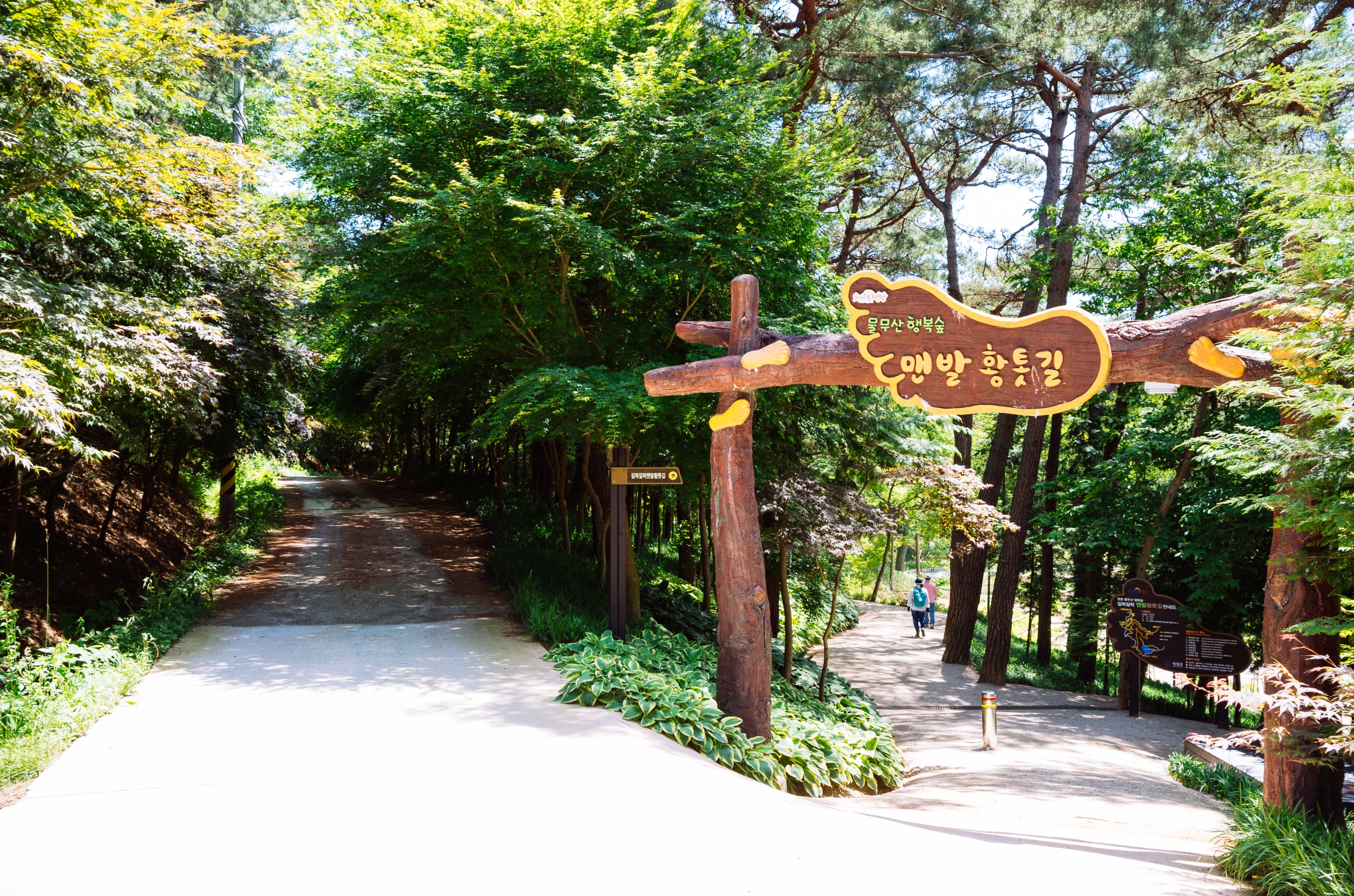 마른 황톳길 정비가 잘 되어서 맨발로 걷기에 정말 편했습니다.