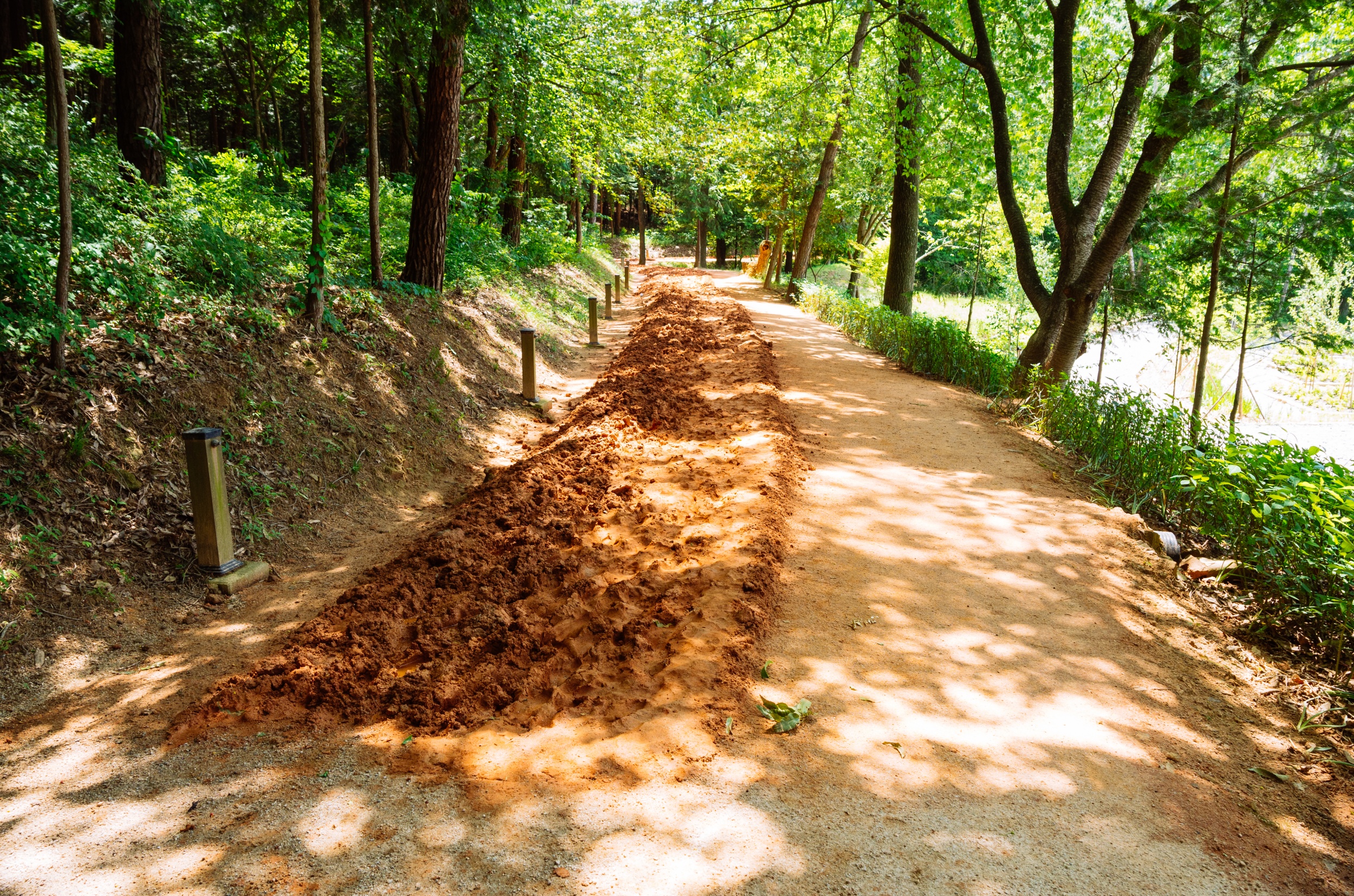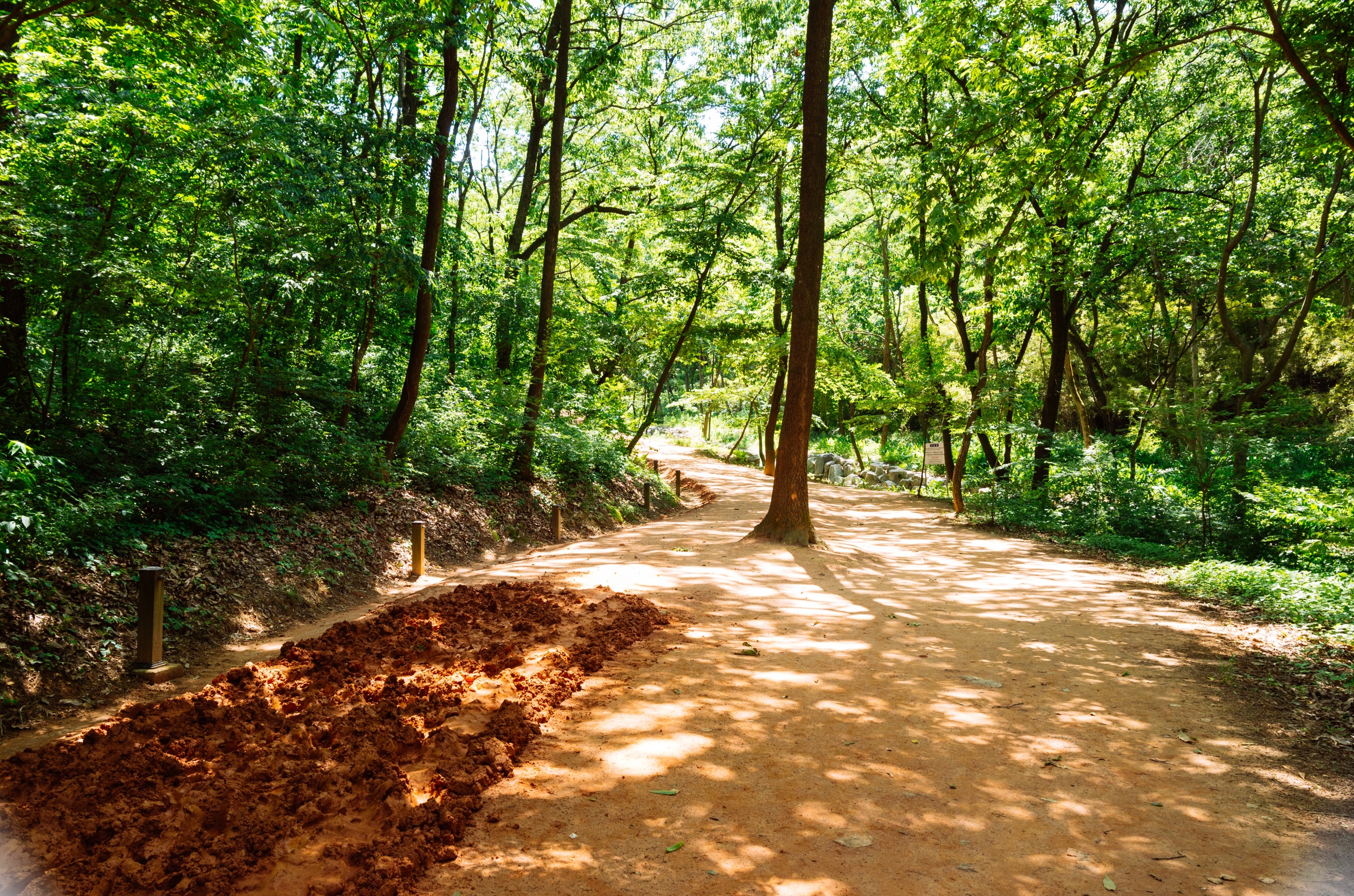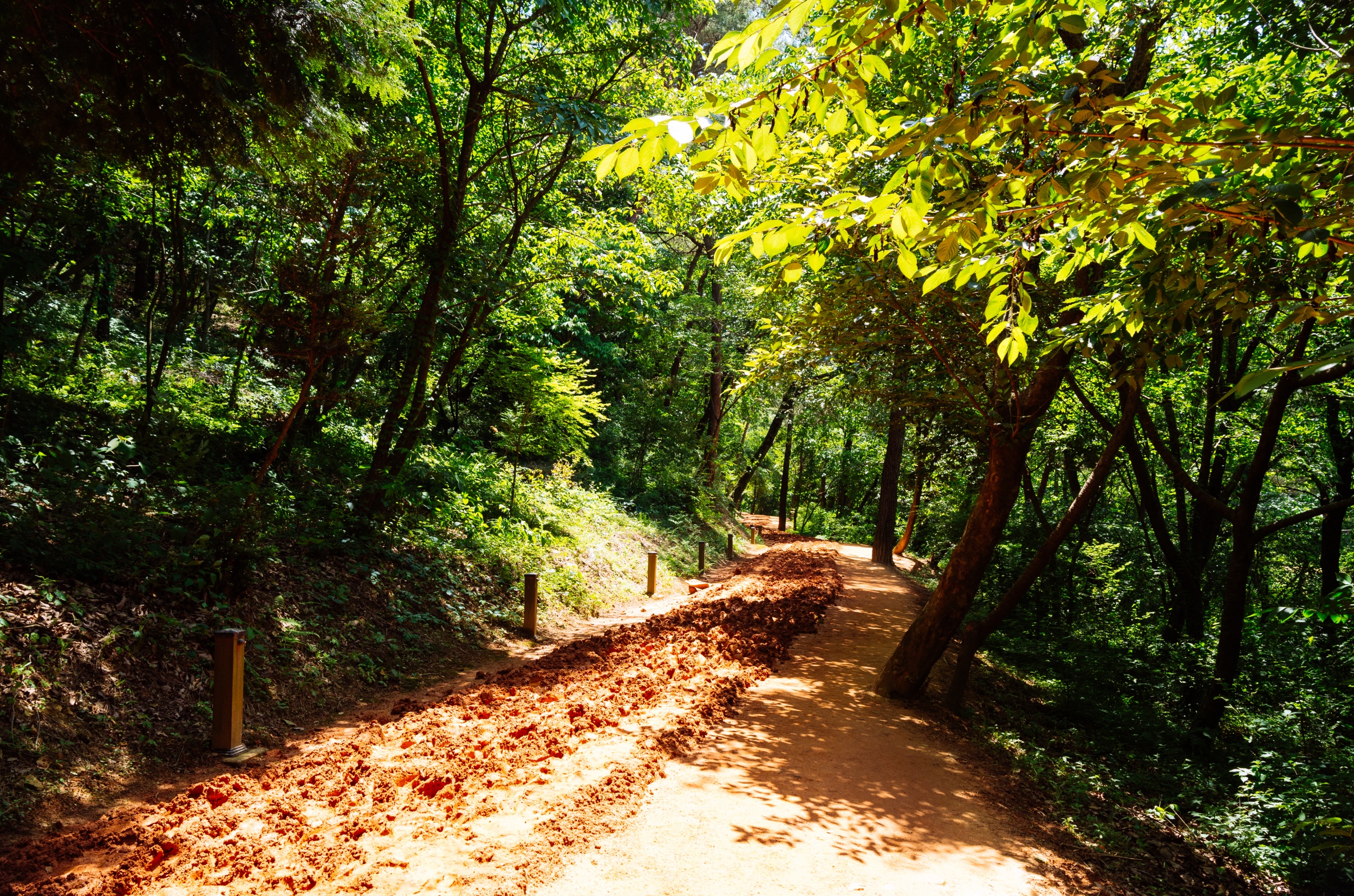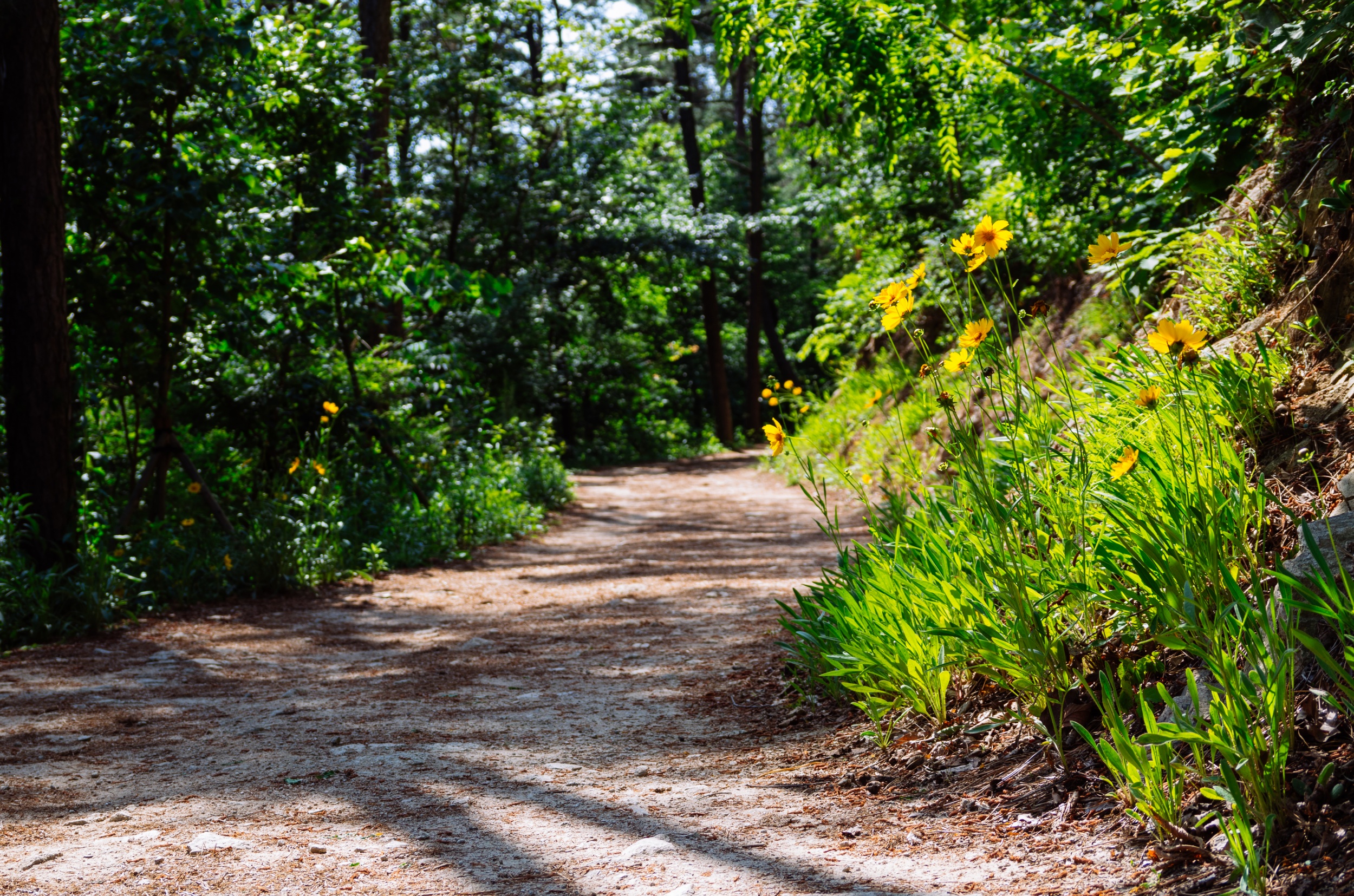 마른 황톳길 정비가 잘 되어서 맨발로 걷기에 정말 편했습니다.