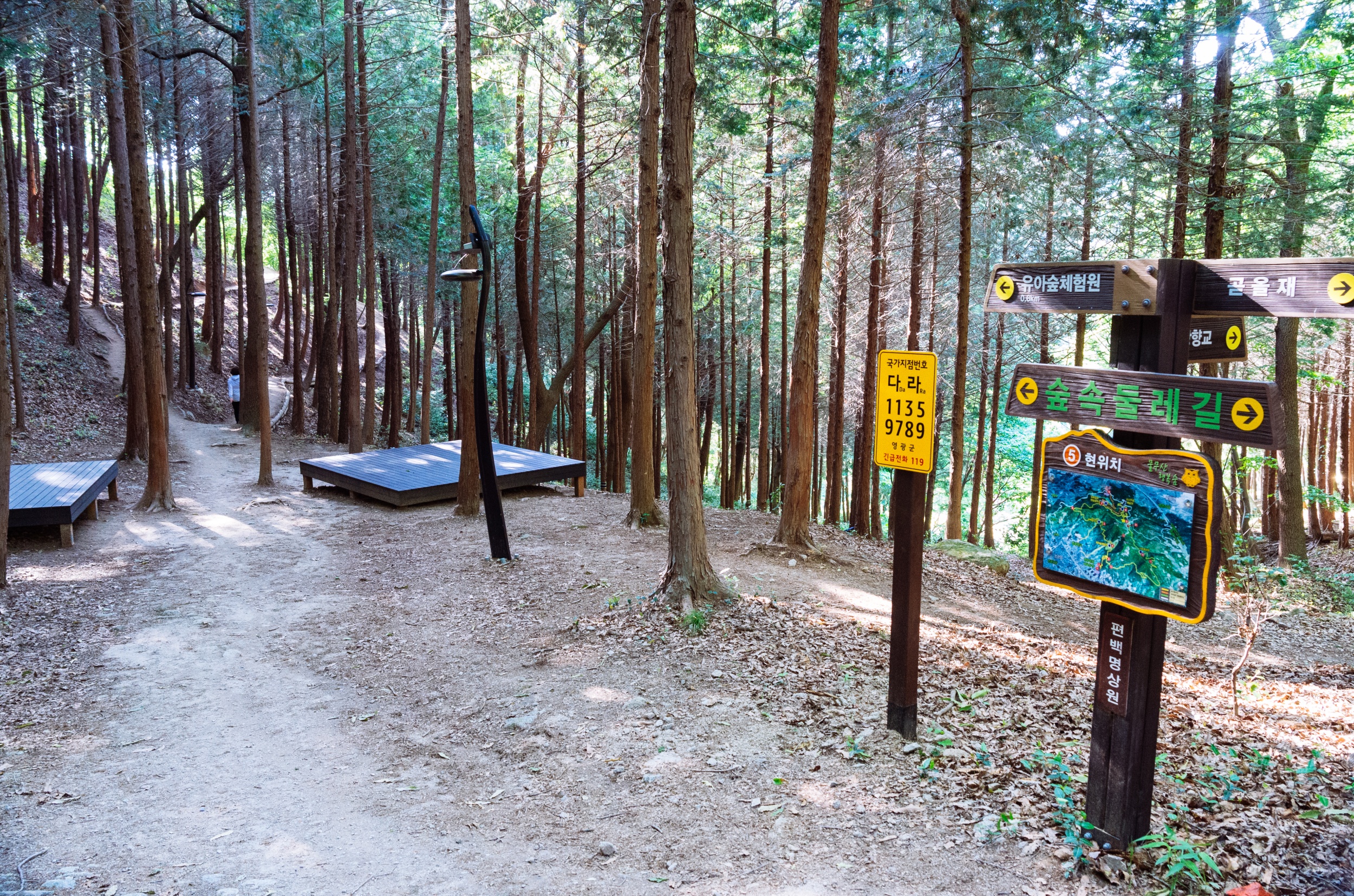 10번 가족 명상원 지점입니다. 숲속 한가운데 있으니 두 눈을 감고 자연의 소리를 온몸으로 만끽할 수 있습니다.