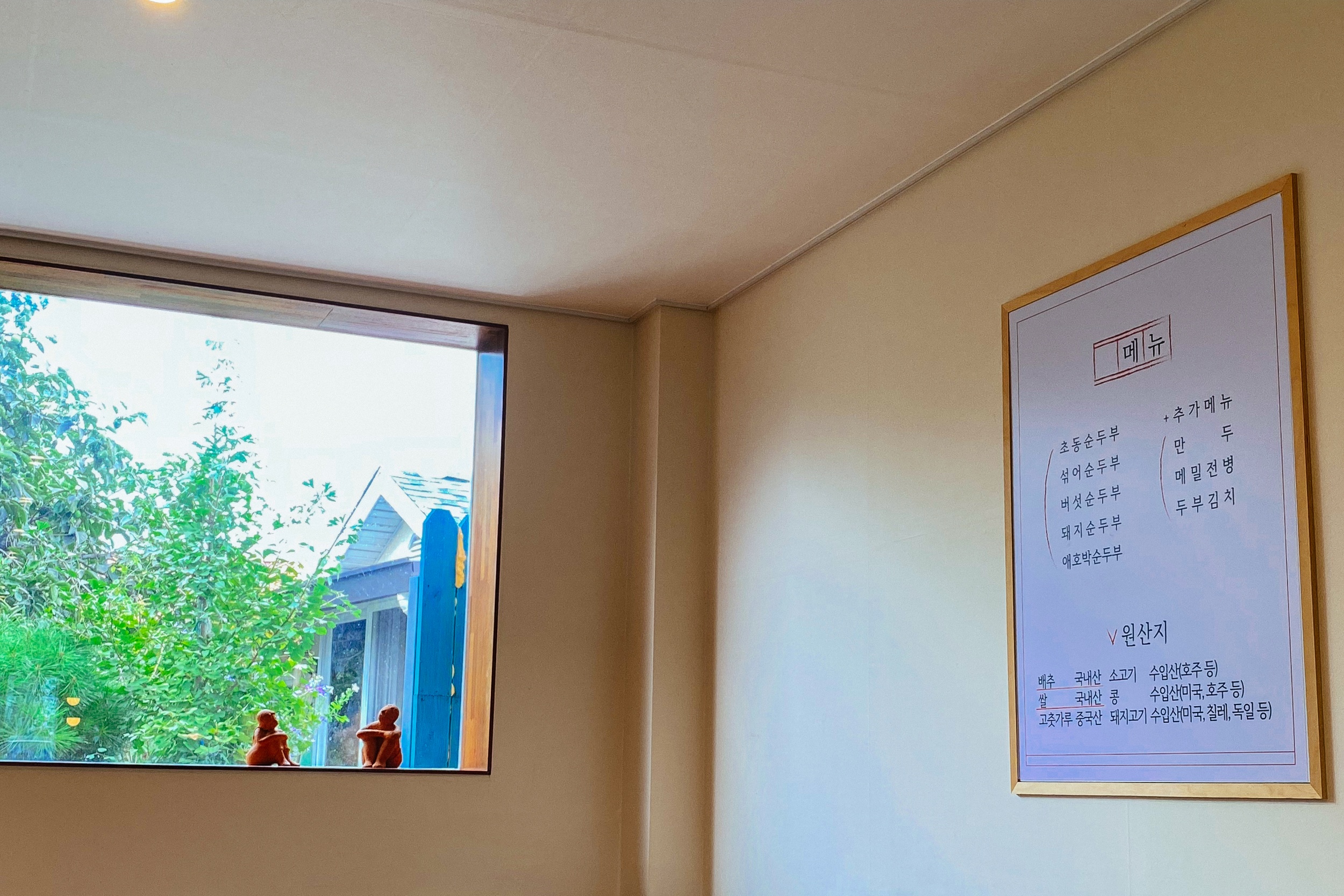 초동정식 2인분과 초동 순두부 2인분을 주문 후 음식을 기다리는데 식당 안 창으로 시골집 풍경 같은 그림이 반겨줍니다.