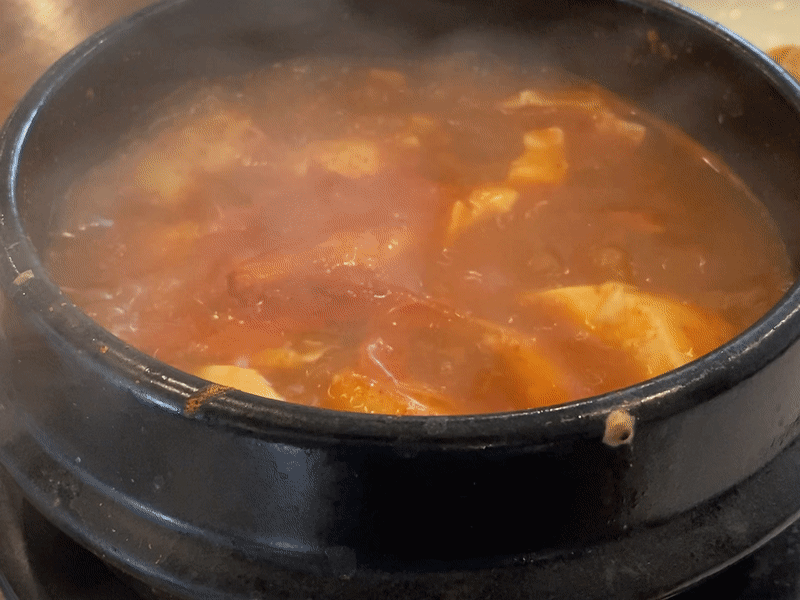 부드러운 식감의 순두부와 소고기, 새우, 바지락을 머금은 국물에 갓 지은 돌솥밥을 함께 먹으니 칼칼하면서 개운한 맛입니다. 개인적으로 순두부 양이 조금 아쉬웠습니다.