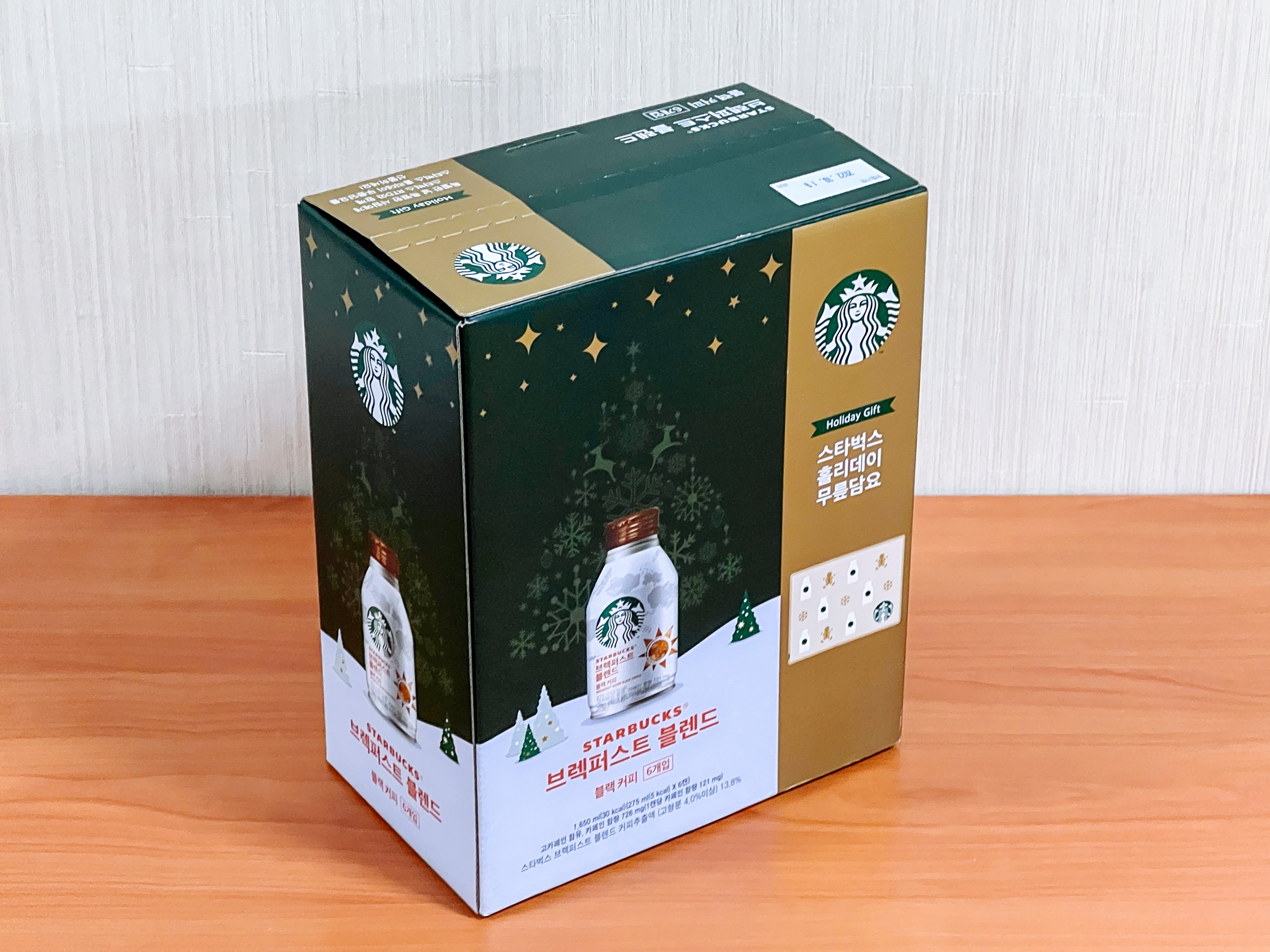 스타벅스 브렉퍼스트 블렌드 커피 6개와 스타벅스 홀리데이 무릎 담요 증정품입니다.