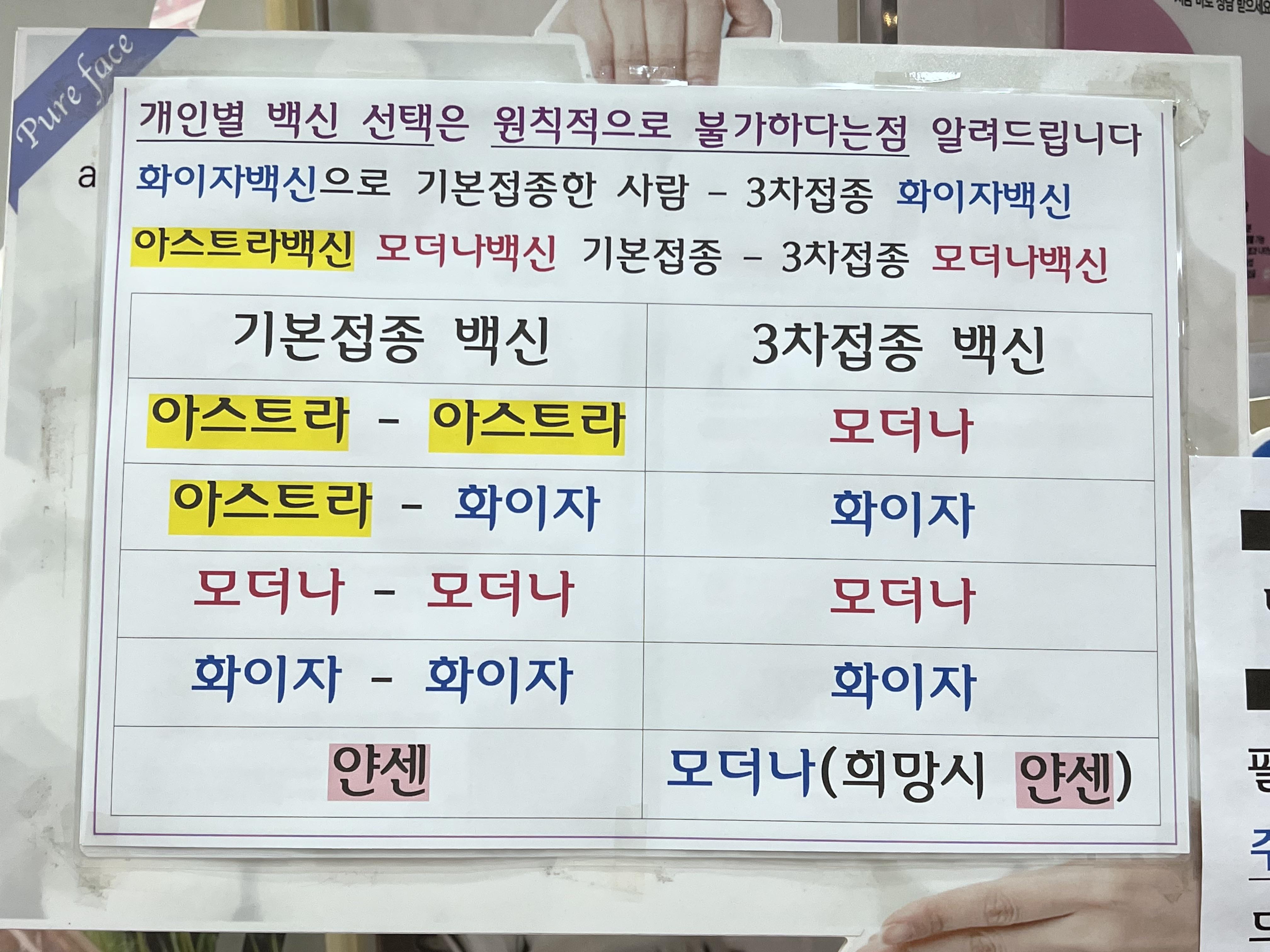 코로나19 백신 접종별로 추가 접종할 친절하게 안내되어 있었습니다.
