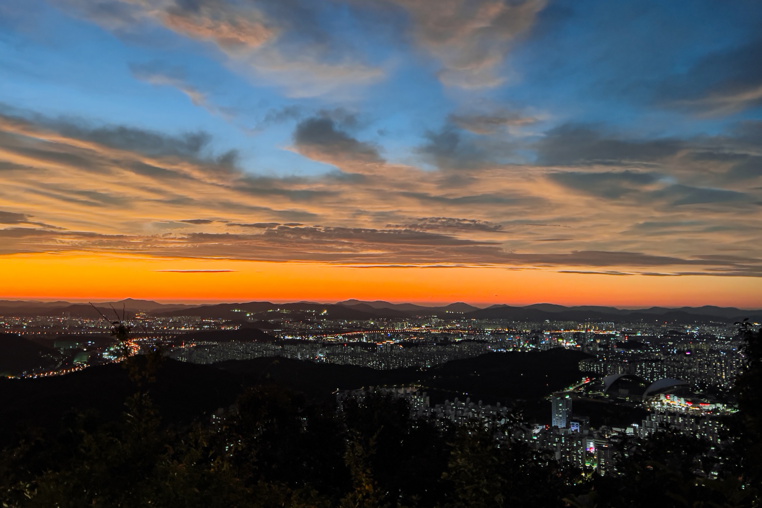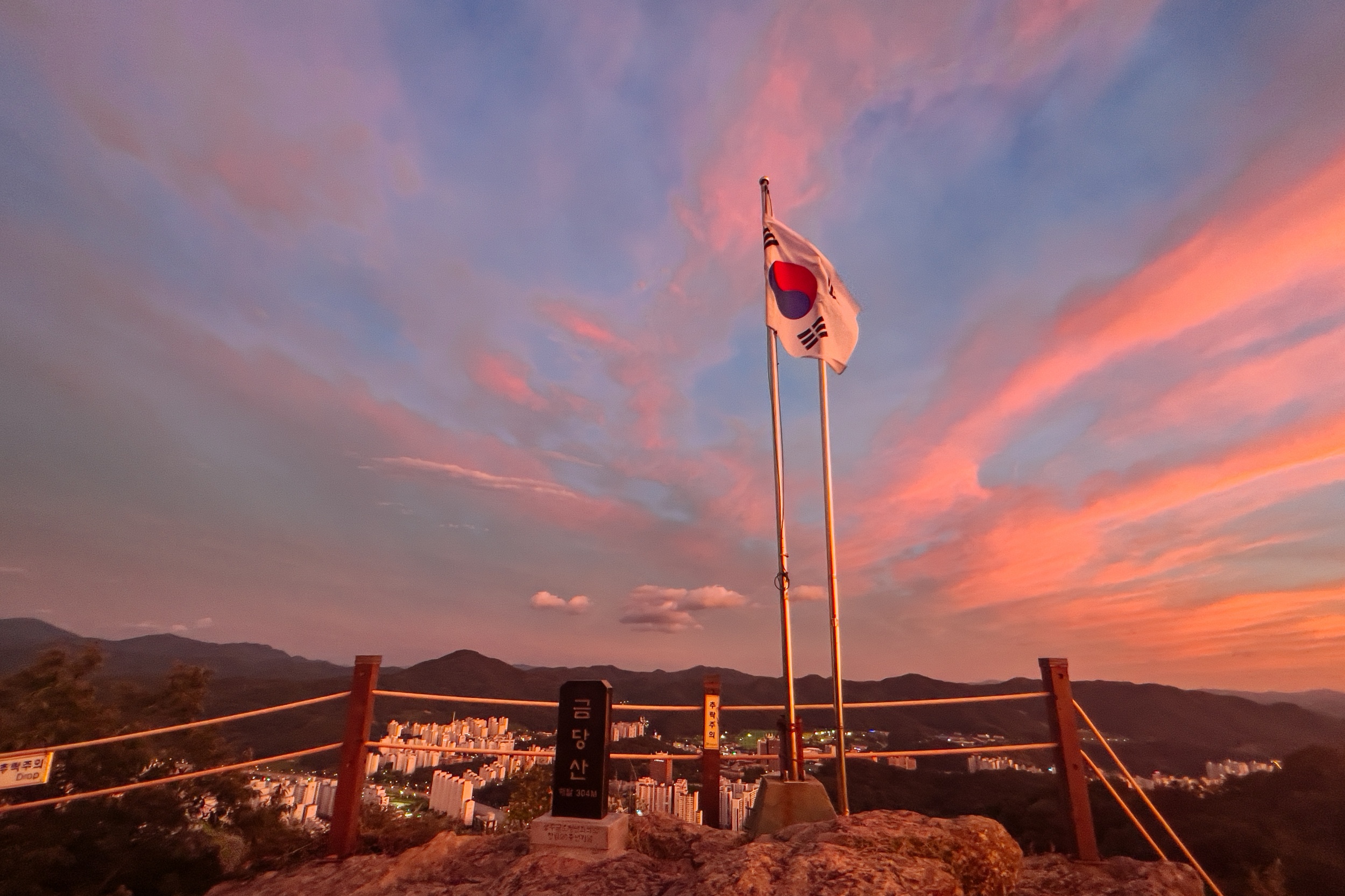 금당산의 환상적인 일몰과 야경을 감상할 수 있었습니다.