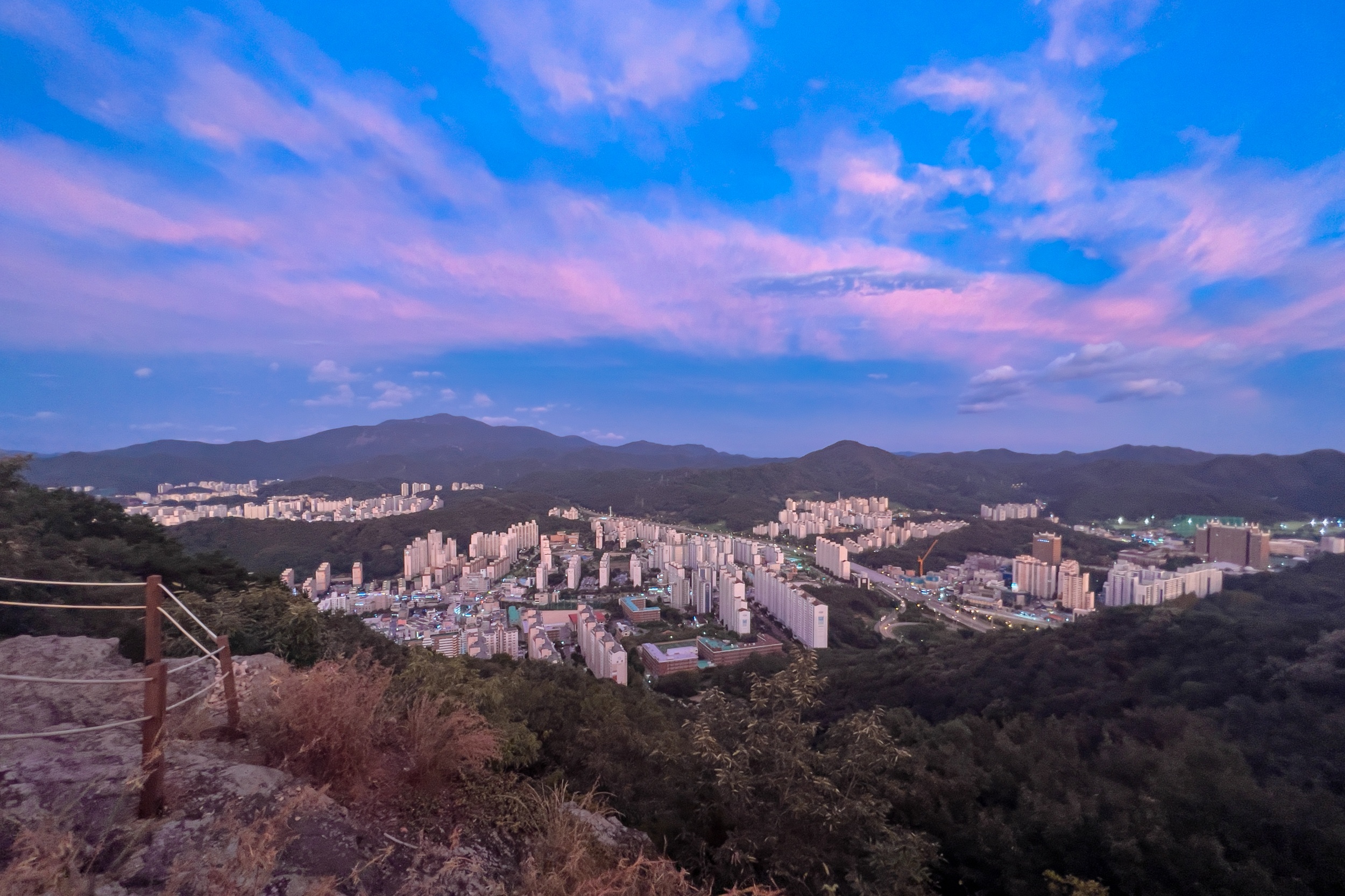 금당산의 환상적인 일몰과 야경을 감상할 수 있었습니다.