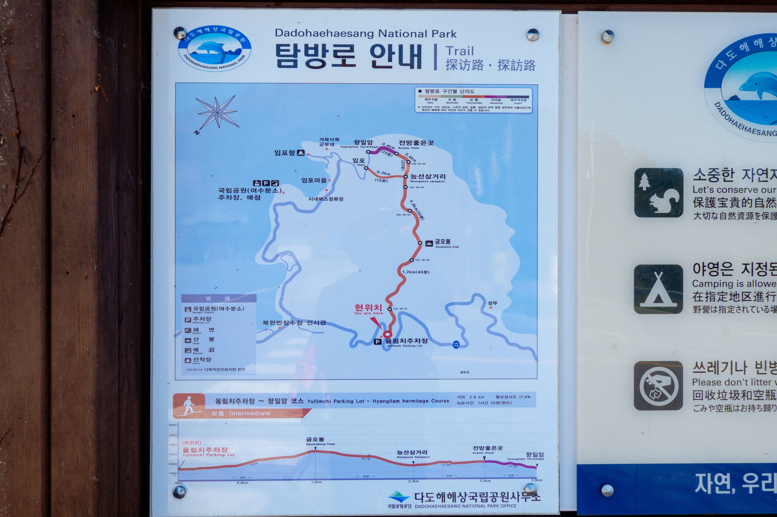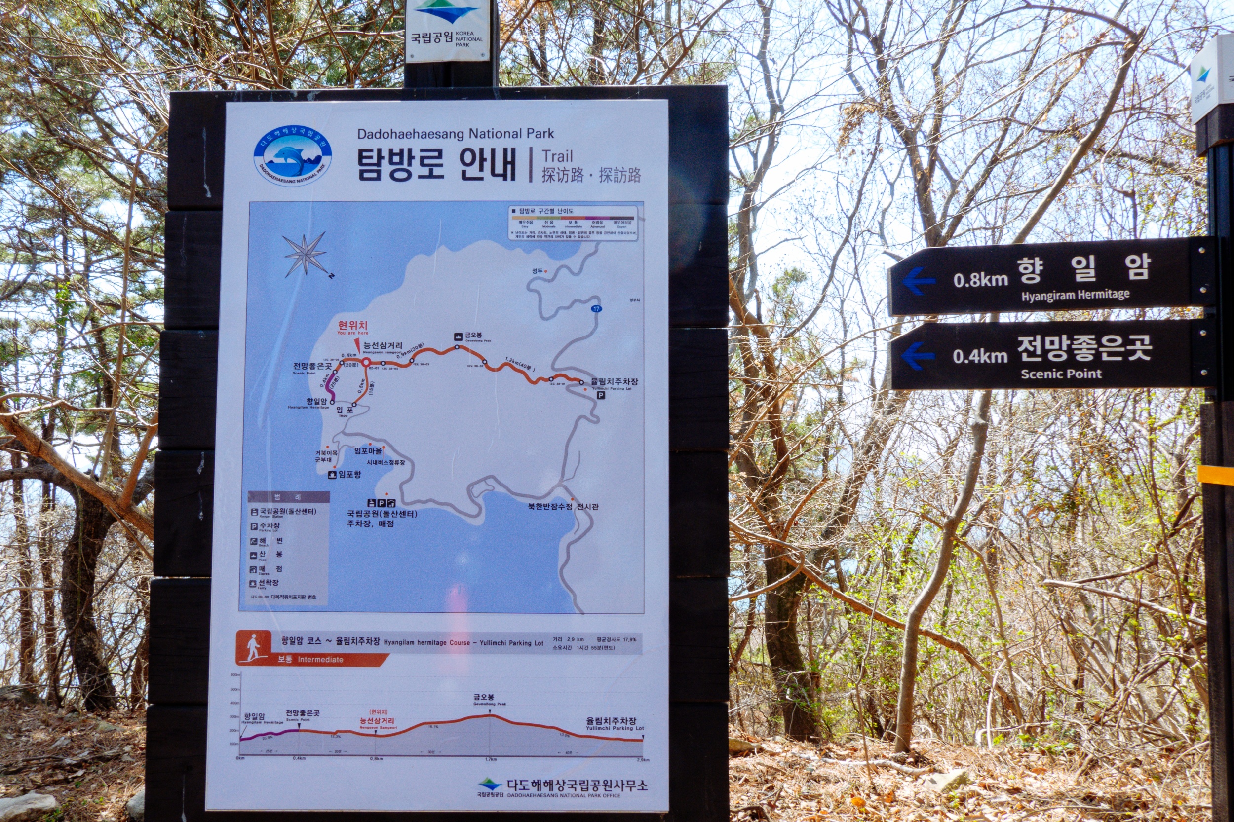 율림치 주차장에서 2km, 향일암까지는 0.9km 지점입니다.