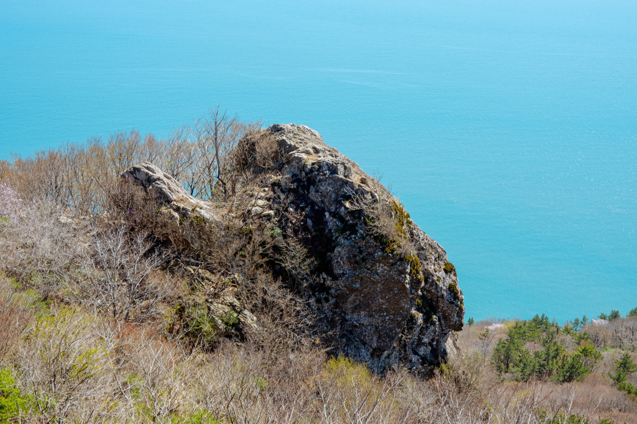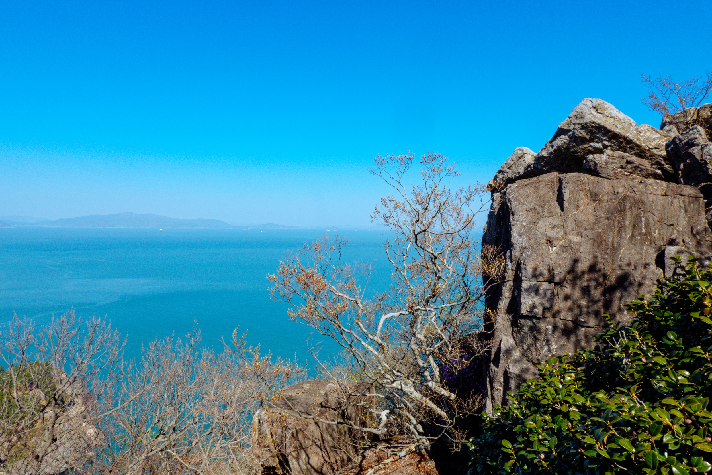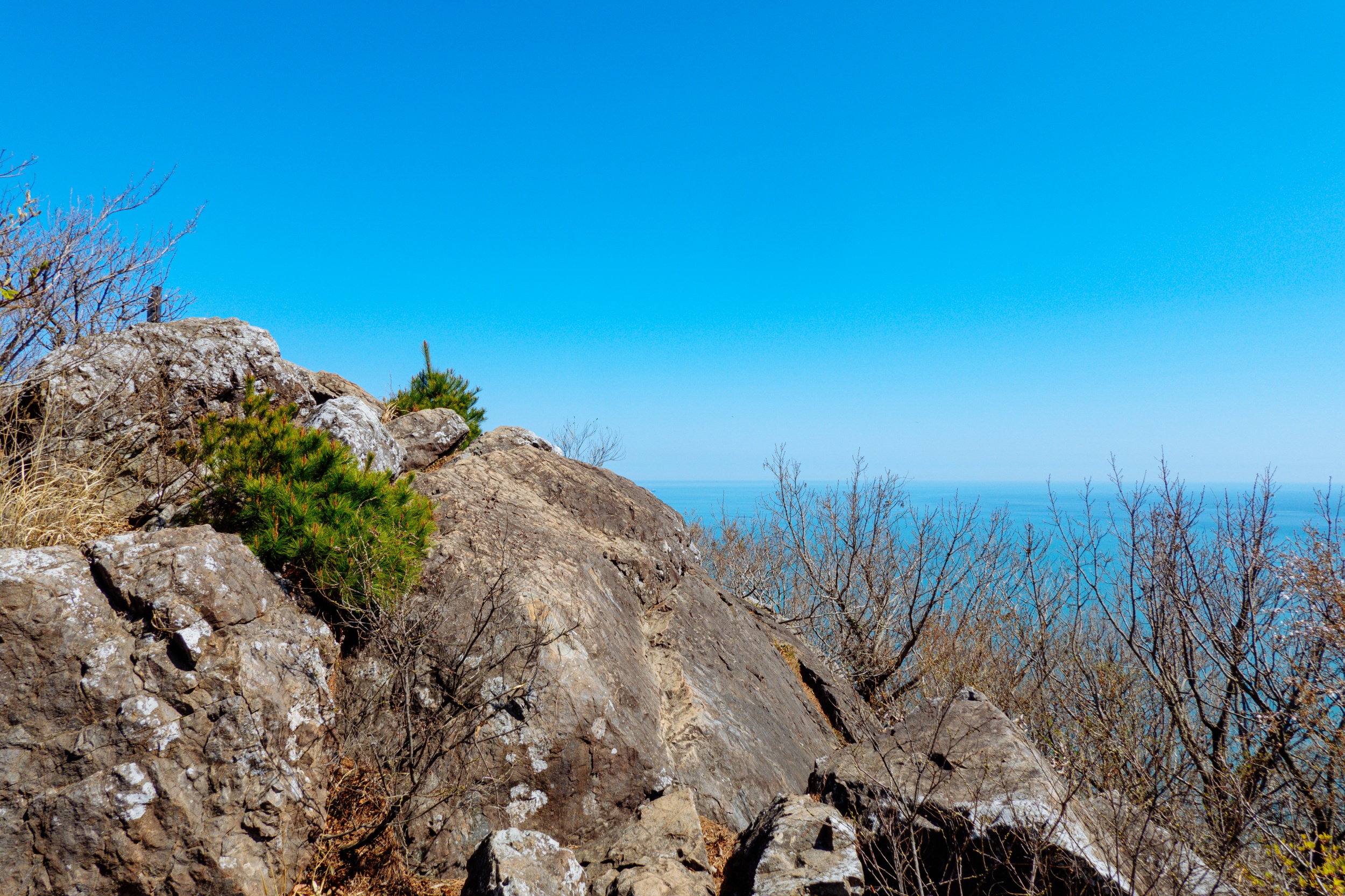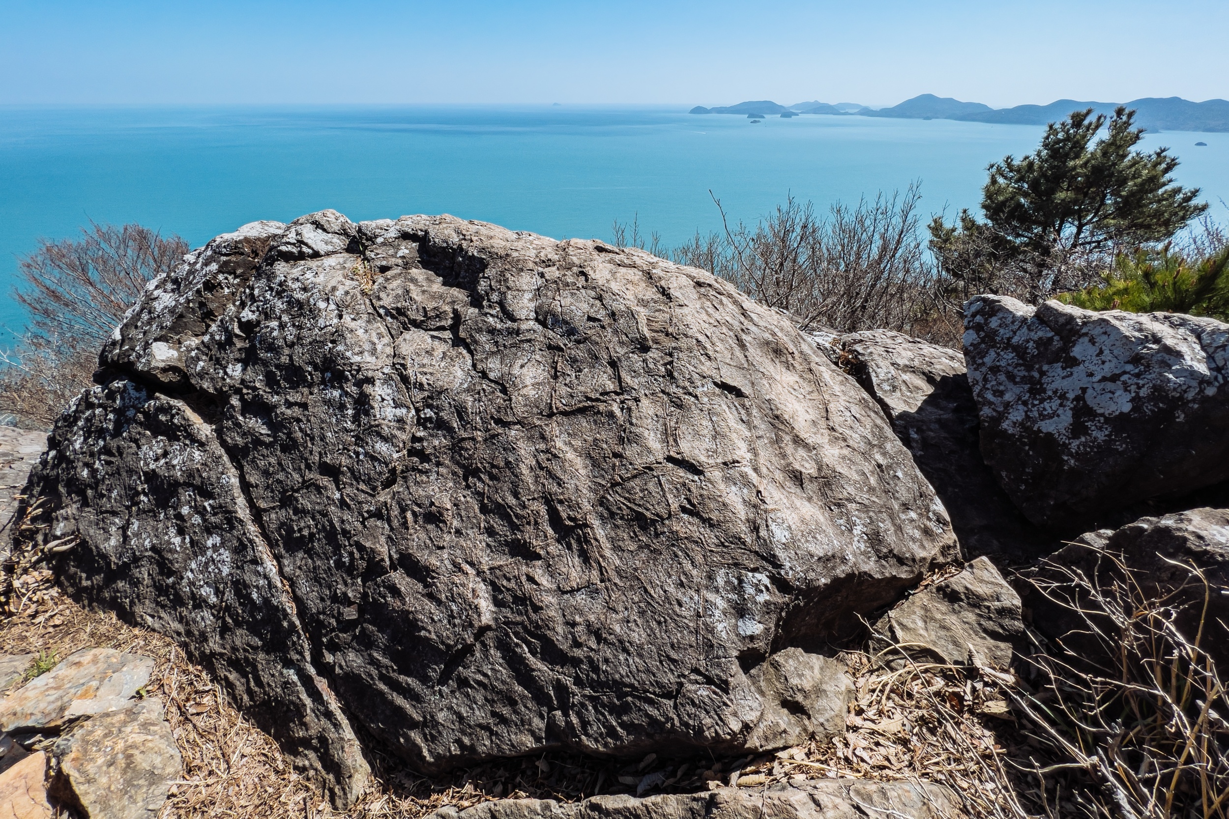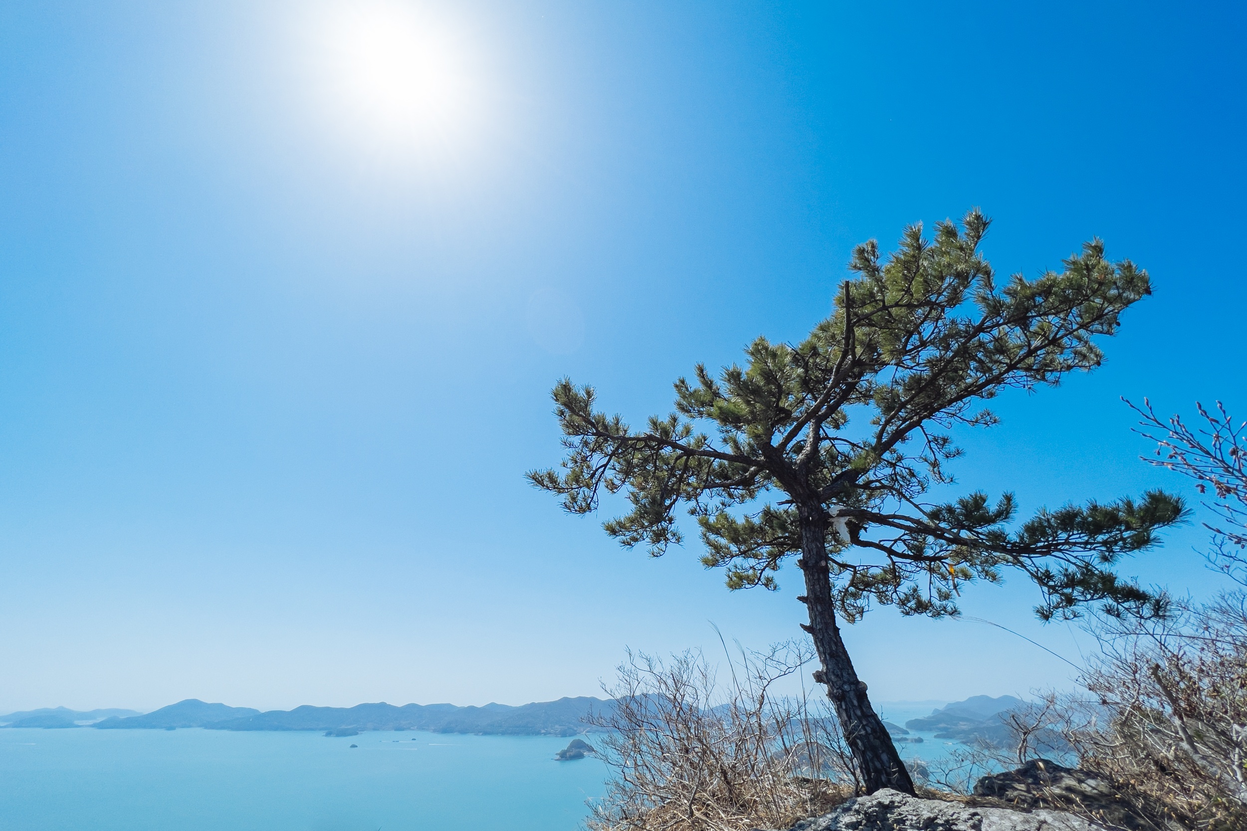 바위 위로 우뚝 솟은 소나무 풍경과 다도해