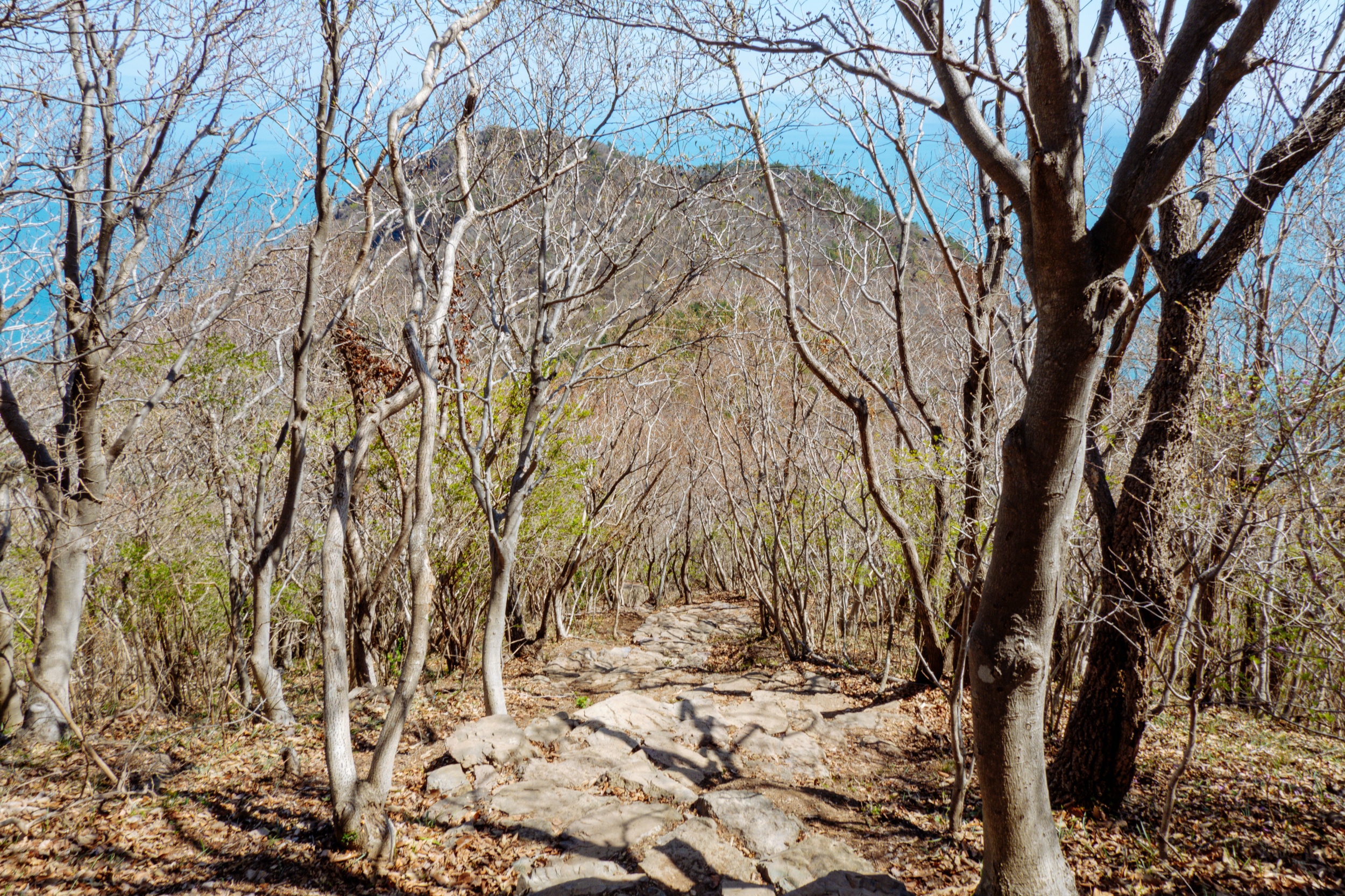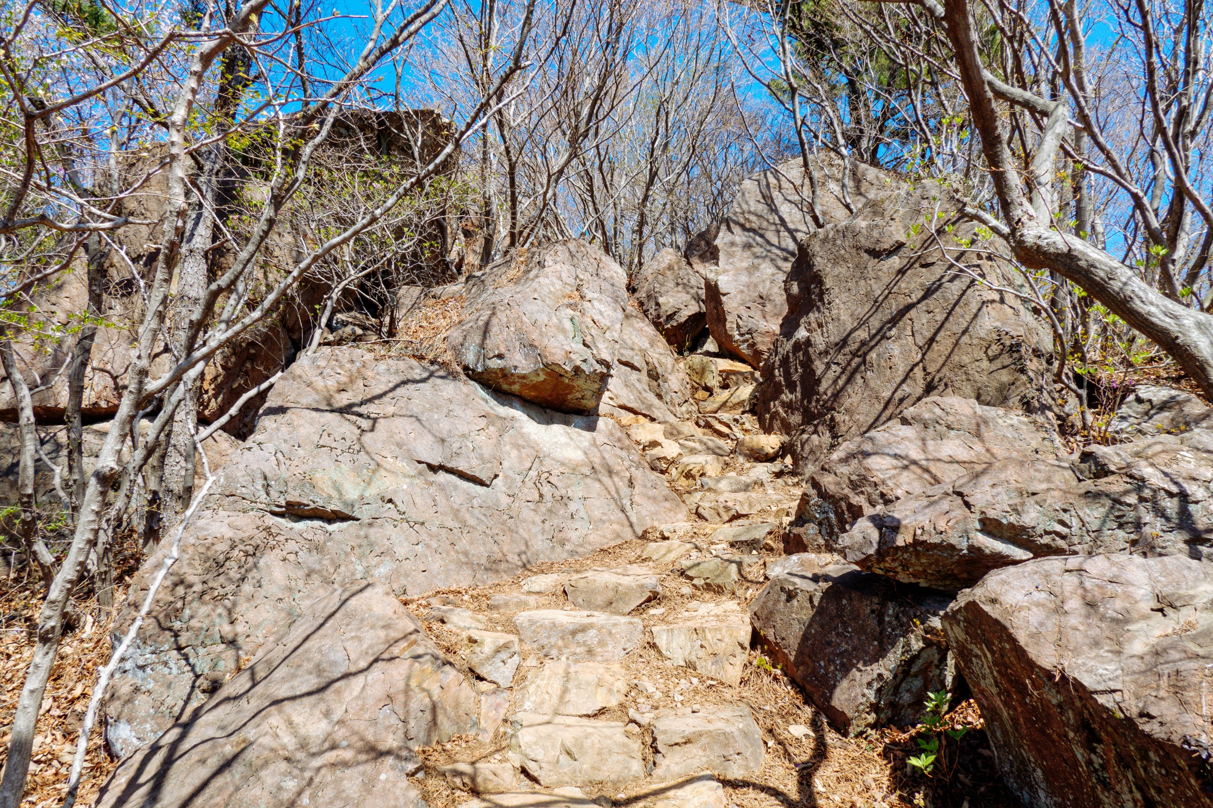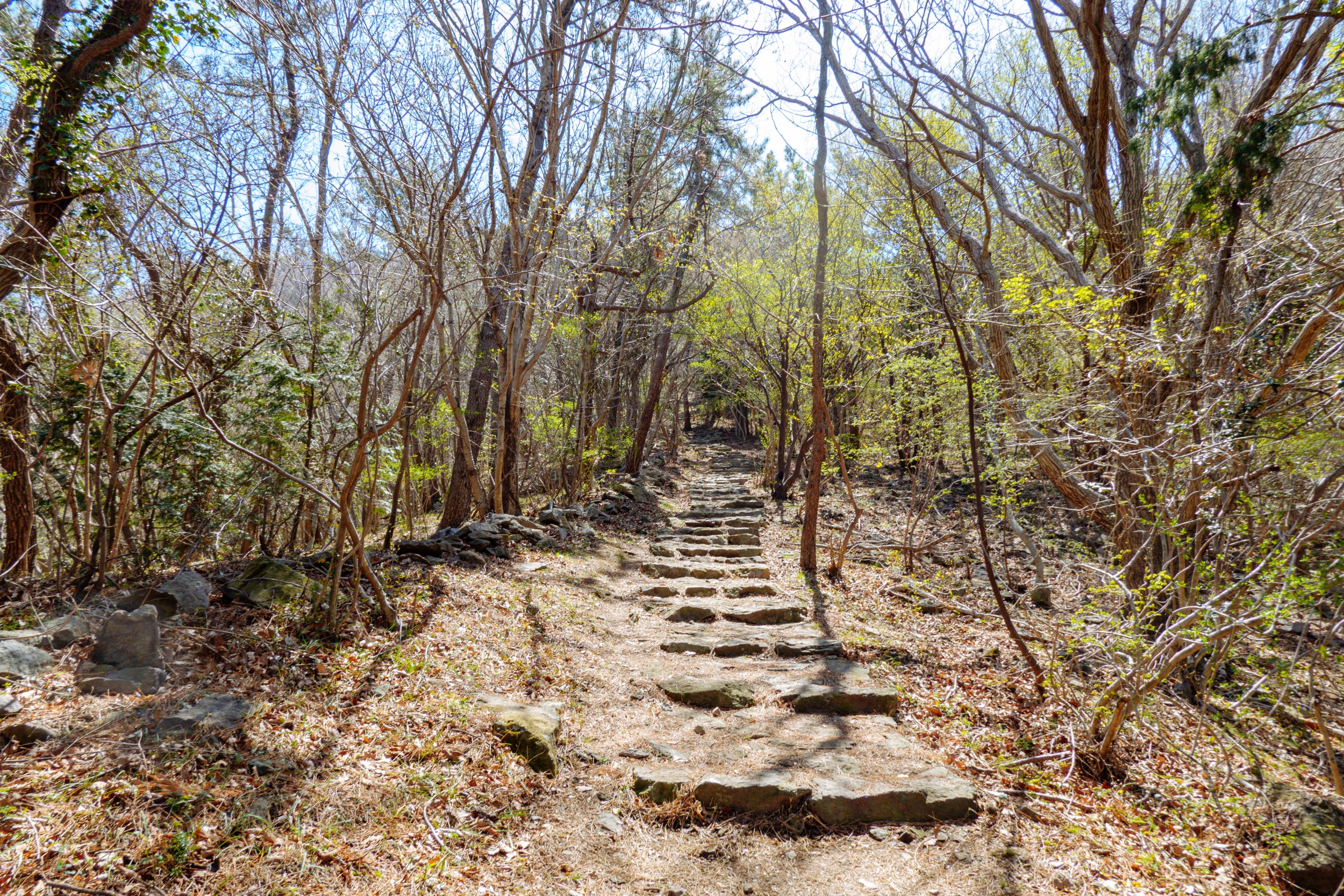 돌계단으로 조성된 내리막길입니다.