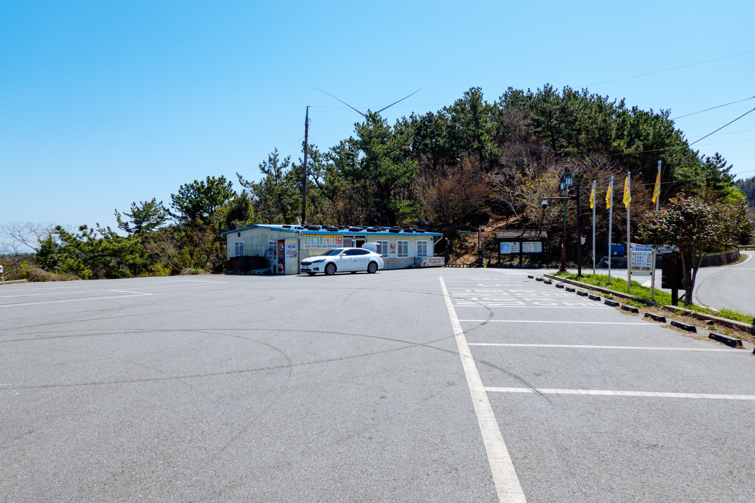 율림치 주자장쪽에 있는 풍력발전기가 고개를 내밀고 있습니다.