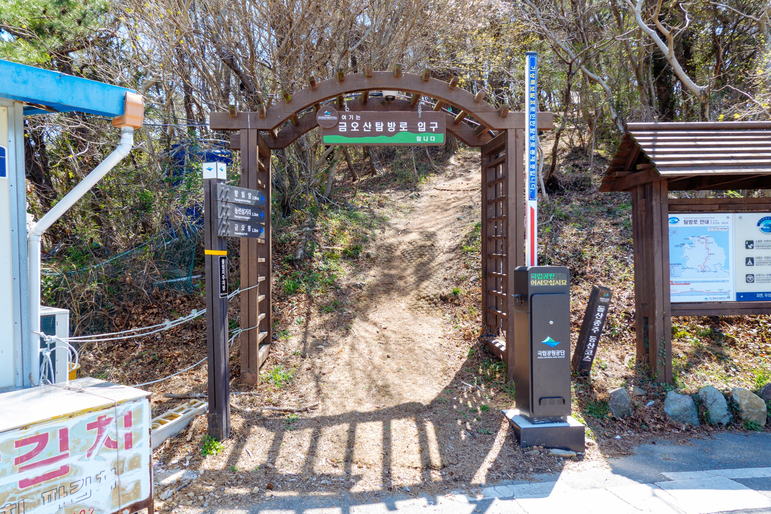 매점 건물 옆이 금오산 등산로 입구입니다