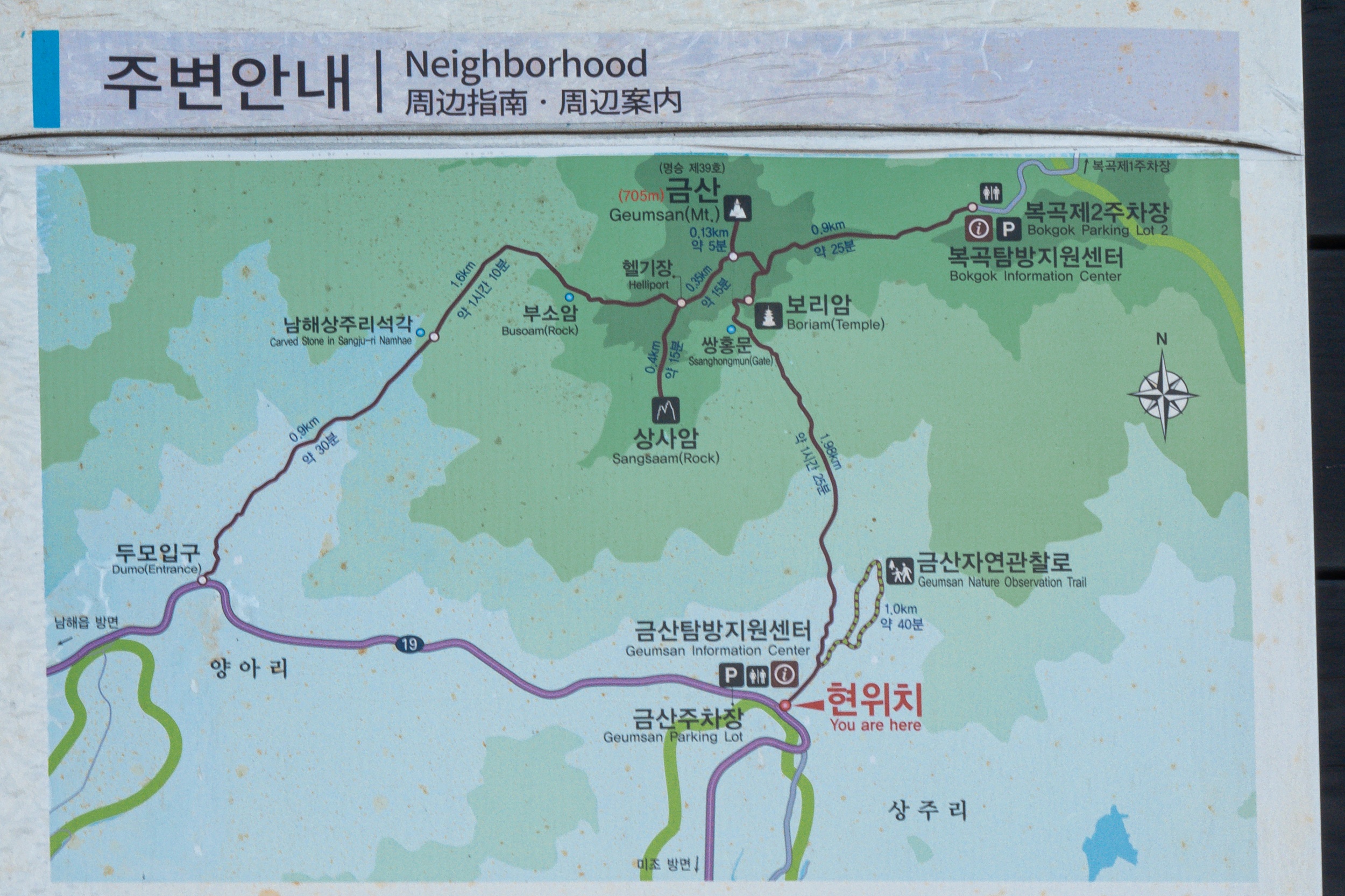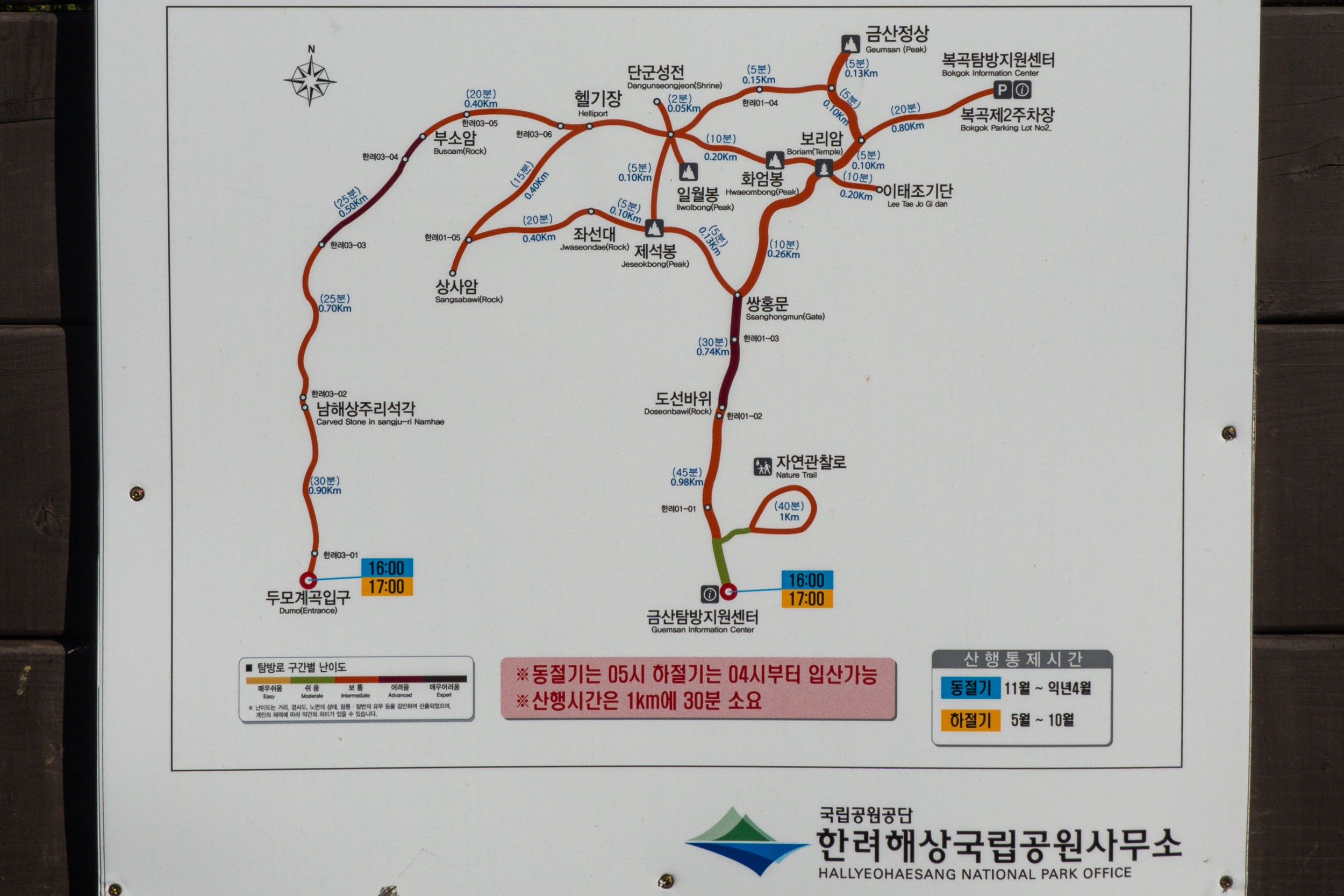 금산탐방지원센터 - 도선바위 - 쌍홍문 - 보리암 - 금산 정상 - 단군성전 - 금산 산장 - 좌선대 - 상사암 - 좌선대 - 제석봉 - 쌍홍문 - 도선바위 - 금산탐방지원센터
