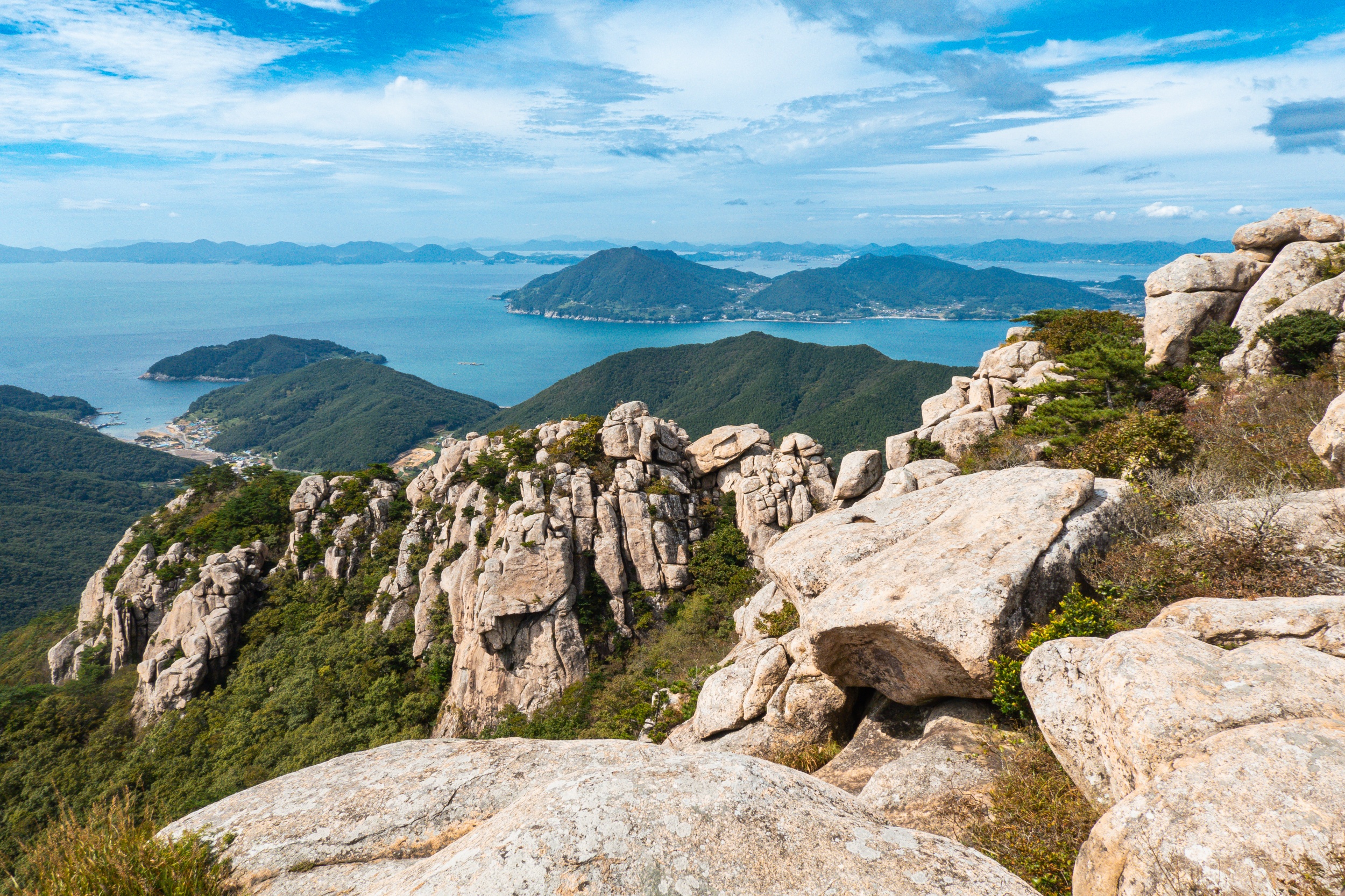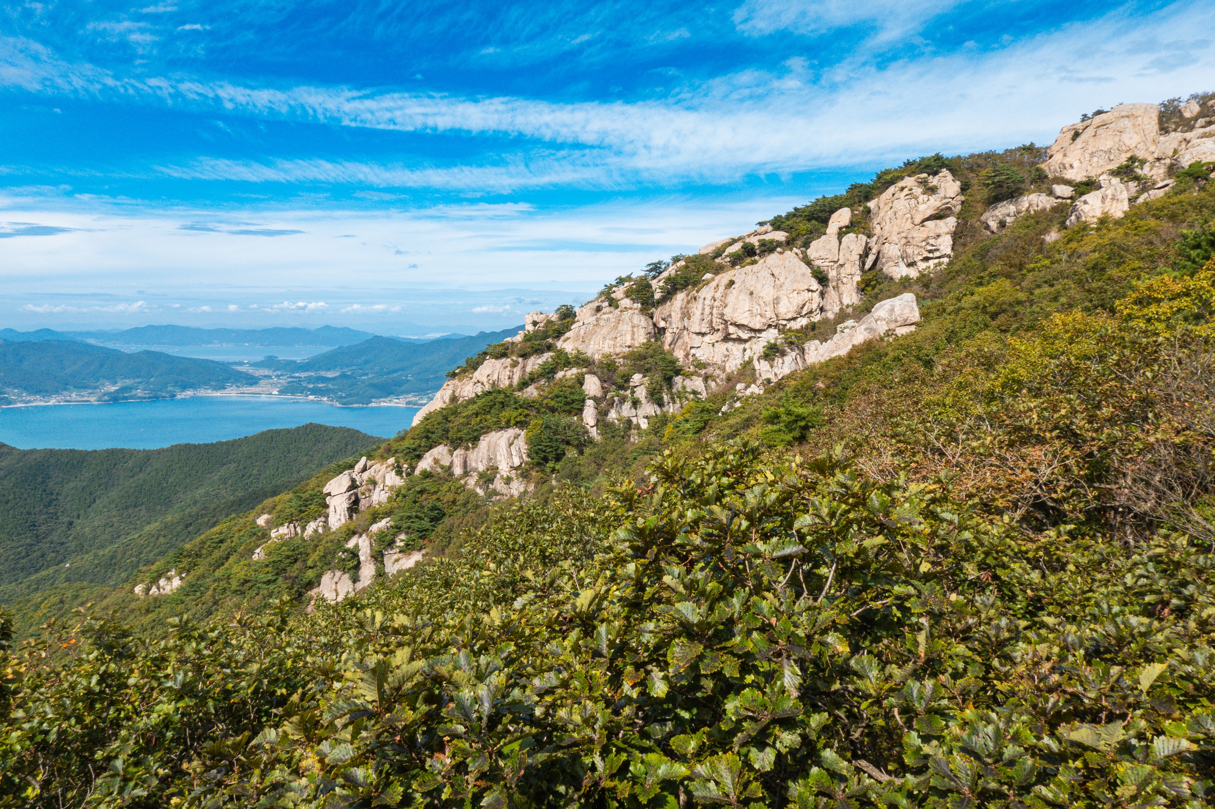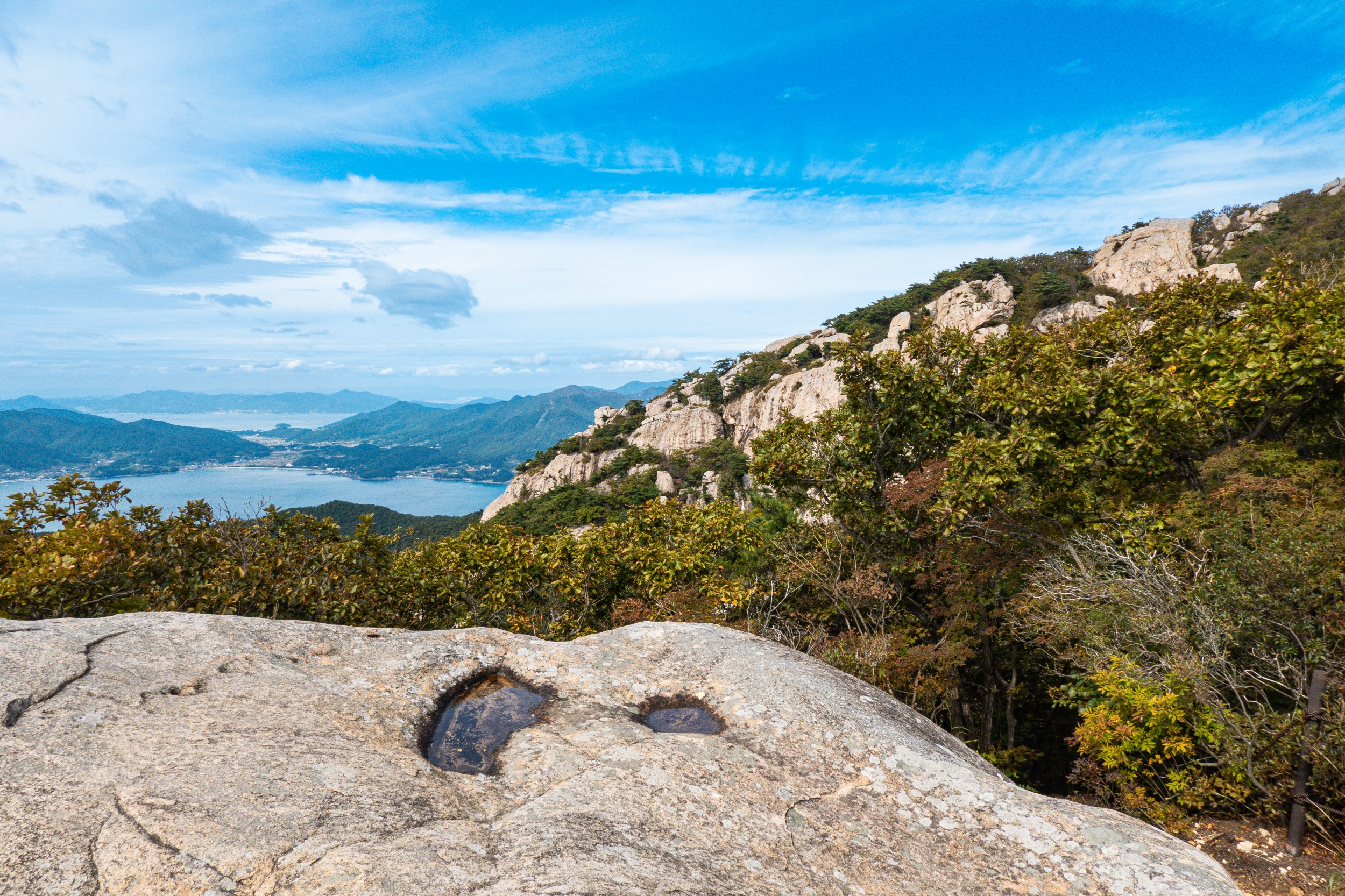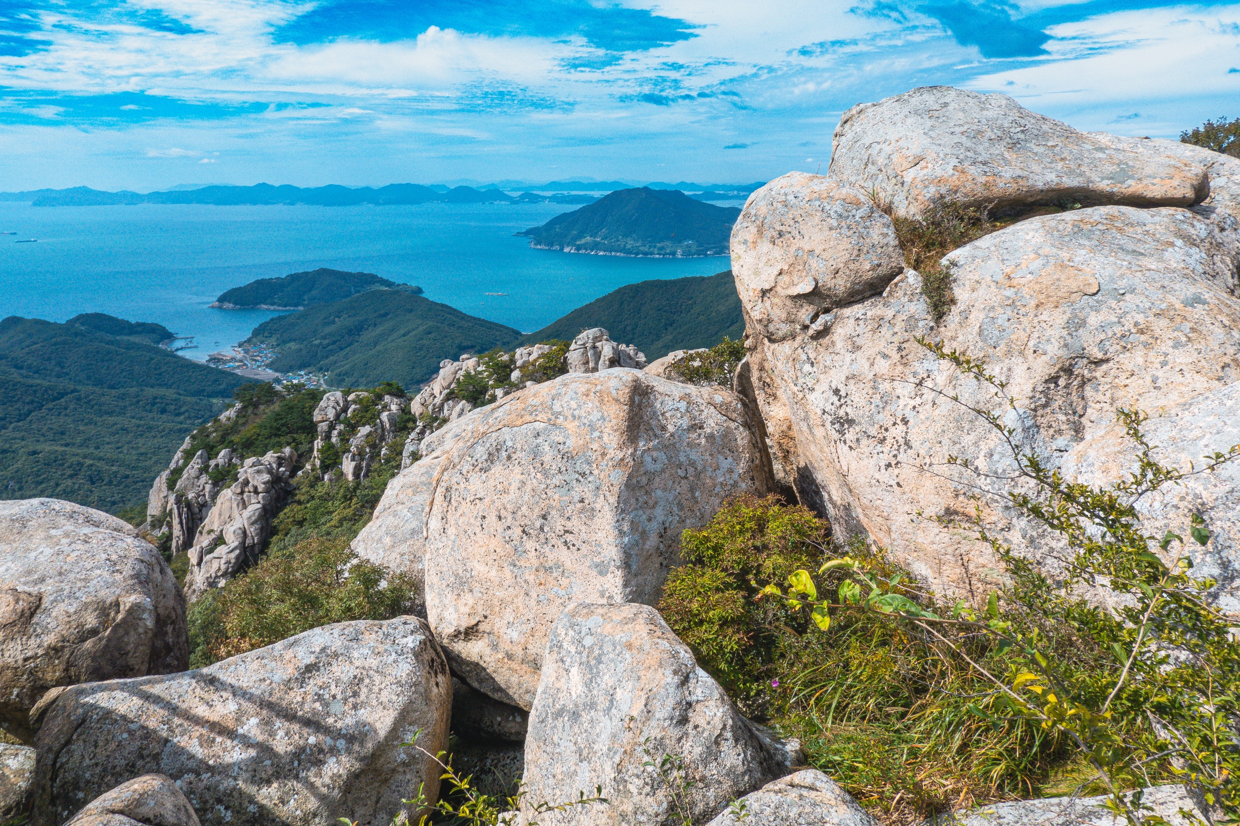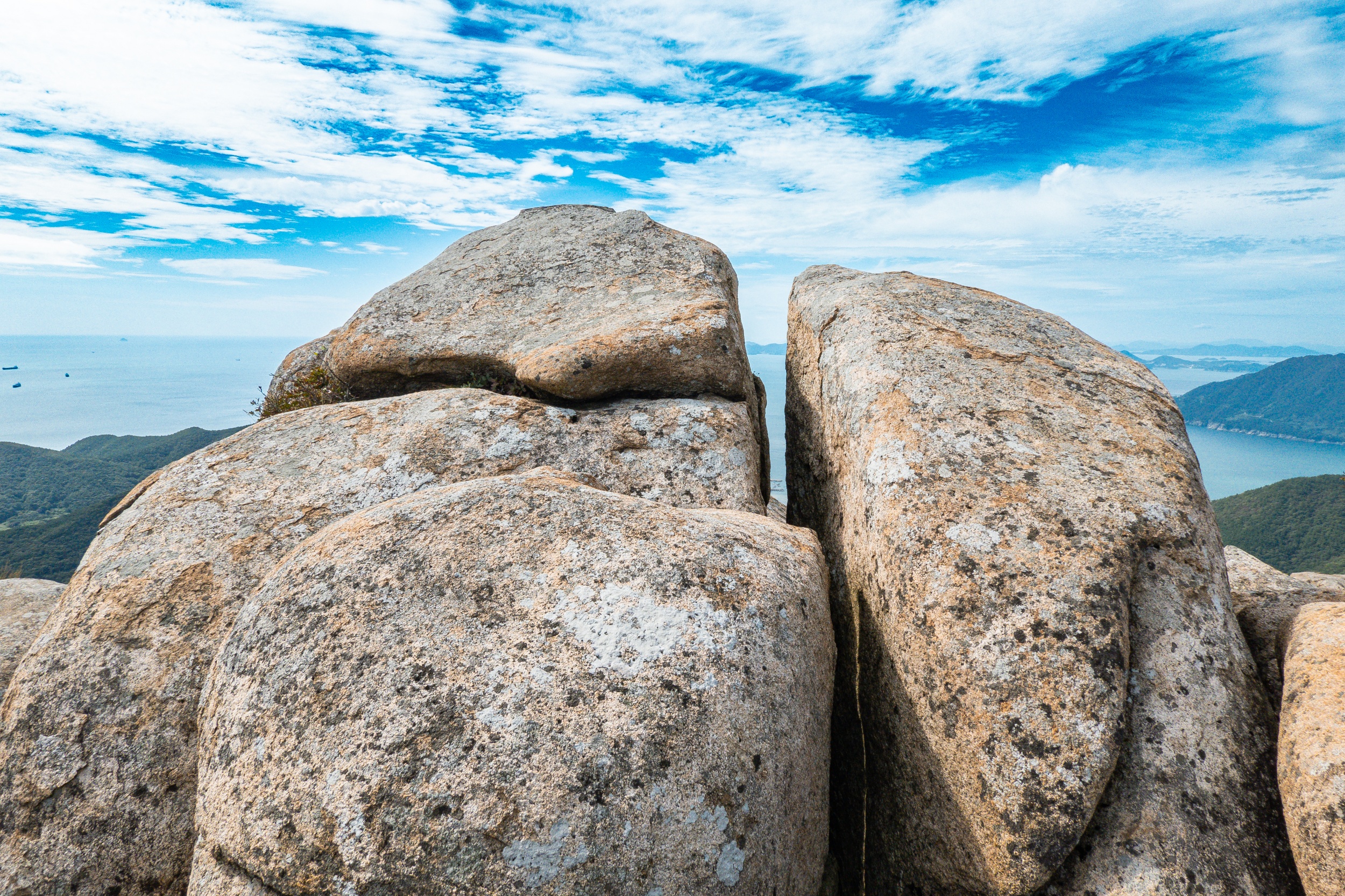 여행으로 금산 보리암을 다녀온 적은 있었지만 산행으로 보리암 정상은 처음인데 오르면 오를수록 모습을 드러내는 기암괴석들로 뒤덮인 절경과 남해 바다의 드넓고 시원한 풍경을 바라보니 정말 좋았습니다.
