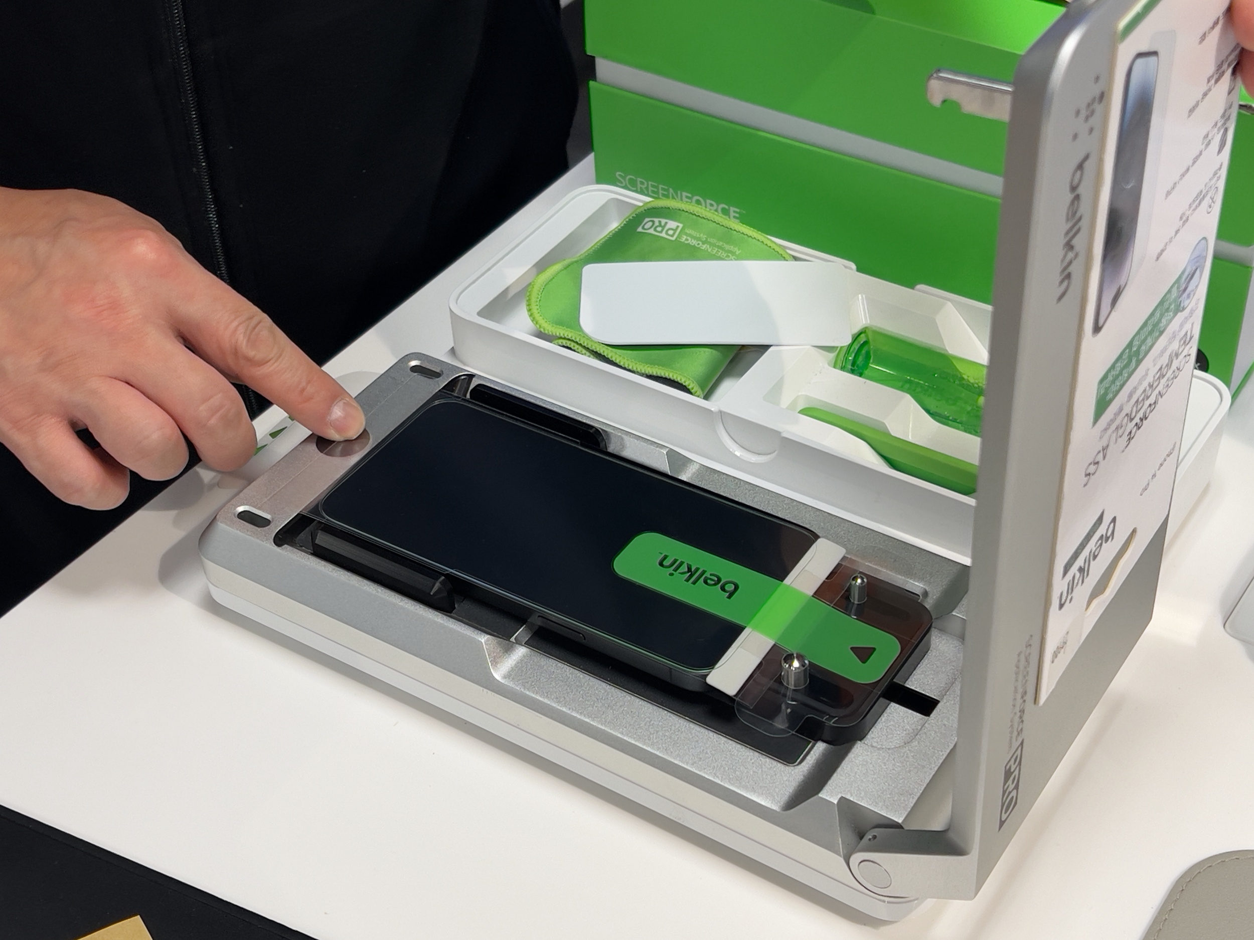 벨킨 전용 기계로 부착하는게 더 깔끔하고 오래 사용할거 같은 기분이 들었습니다.