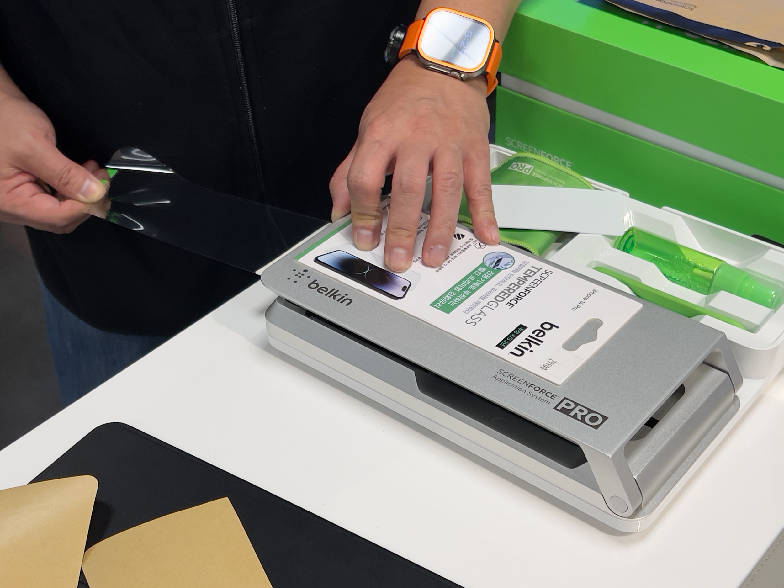 아이폰 15 프로 맥스를 받은 미개봉 상태로 박스만 바라보다가 퇴근 후에 벨킨 보호필름 울트라글래스2를 부착해주는 곳이 많이 없어 수소문 했습니다.