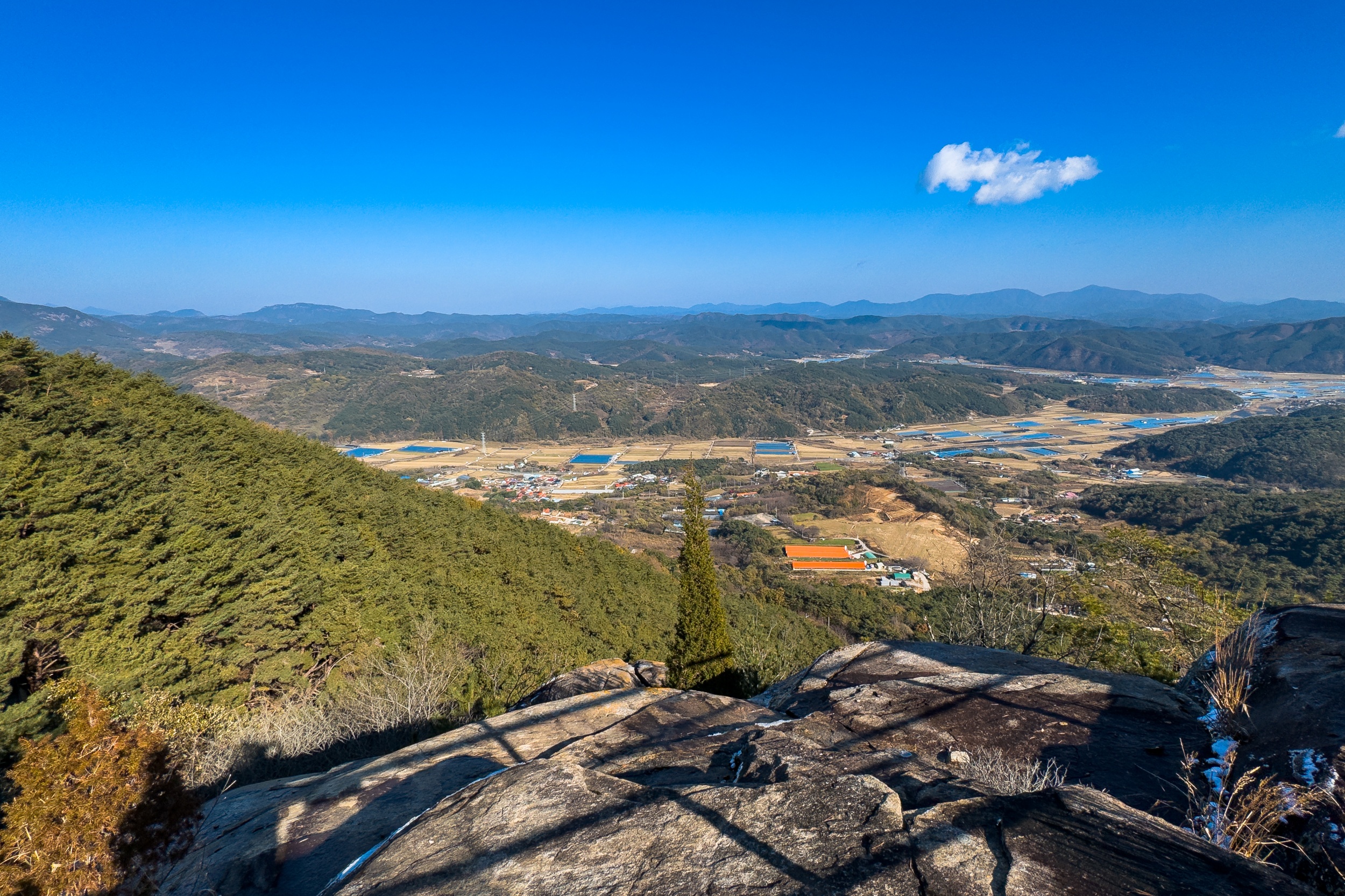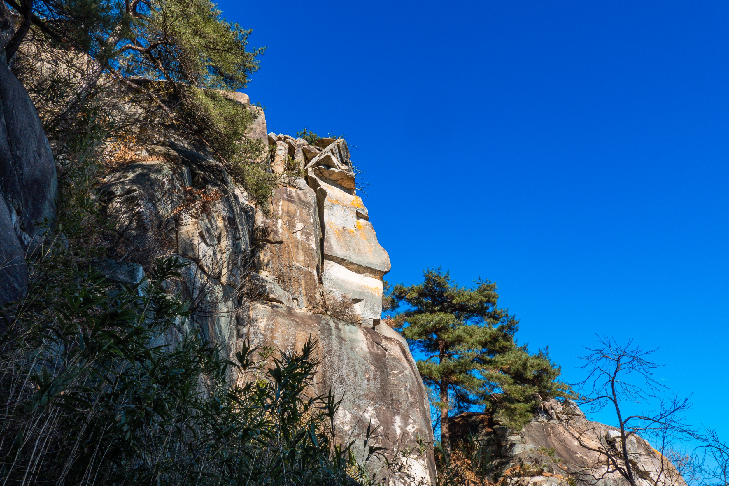 응진전 옆 오솔길을 따라 10분 정도 오르다 보면 기암절벽의 정상에 있는 만월정이 나오며 너럭바위 발 아래로 산청의 들녘과 산길이 시원스레 펼쳐져 있어 시원함과 함께 적막과 고요 속에서 속세를 벗어난 느낌입니다.