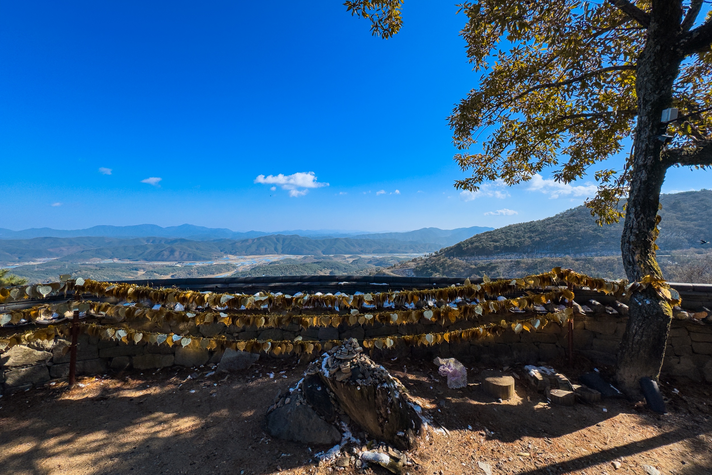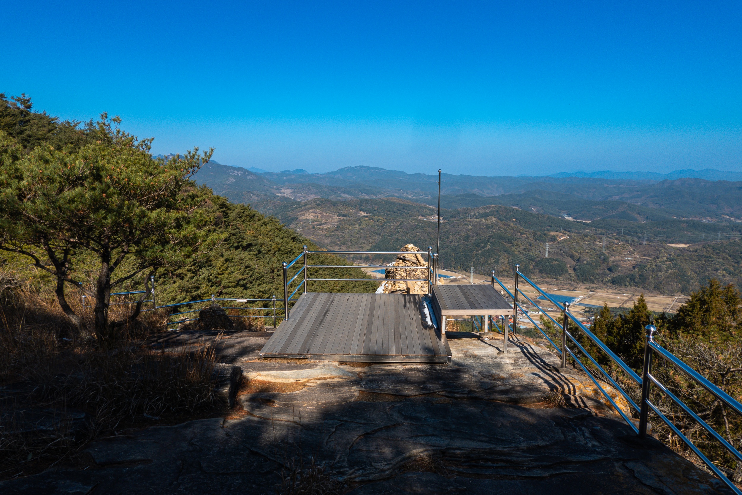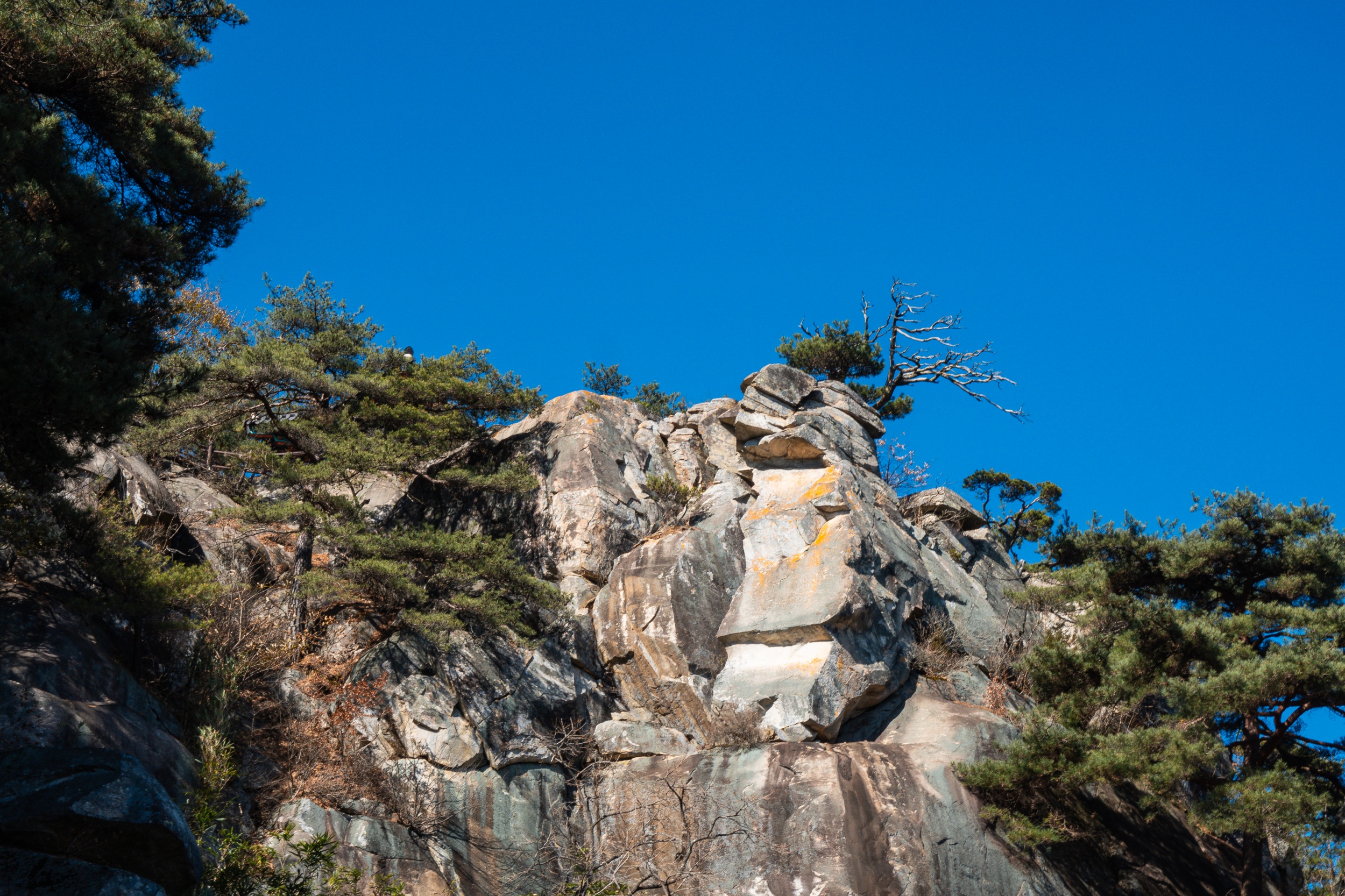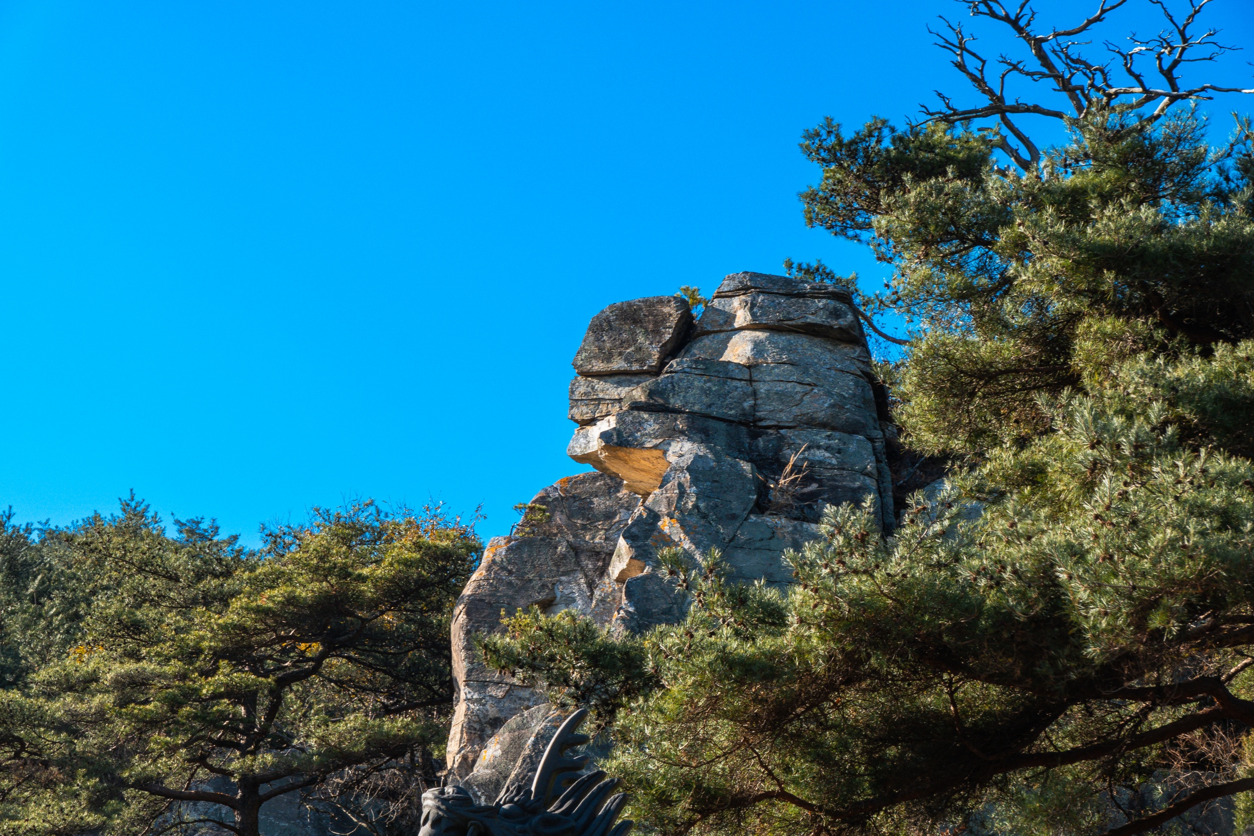 응진전 옆 오솔길을 따라 10분 정도 오르다 보면 기암절벽의 정상에 있는 만월정이 나오며 너럭바위 발 아래로 산청의 들녘과 산길이 시원스레 펼쳐져 있어 시원함과 함께 적막과 고요 속에서 속세를 벗어난 느낌입니다.