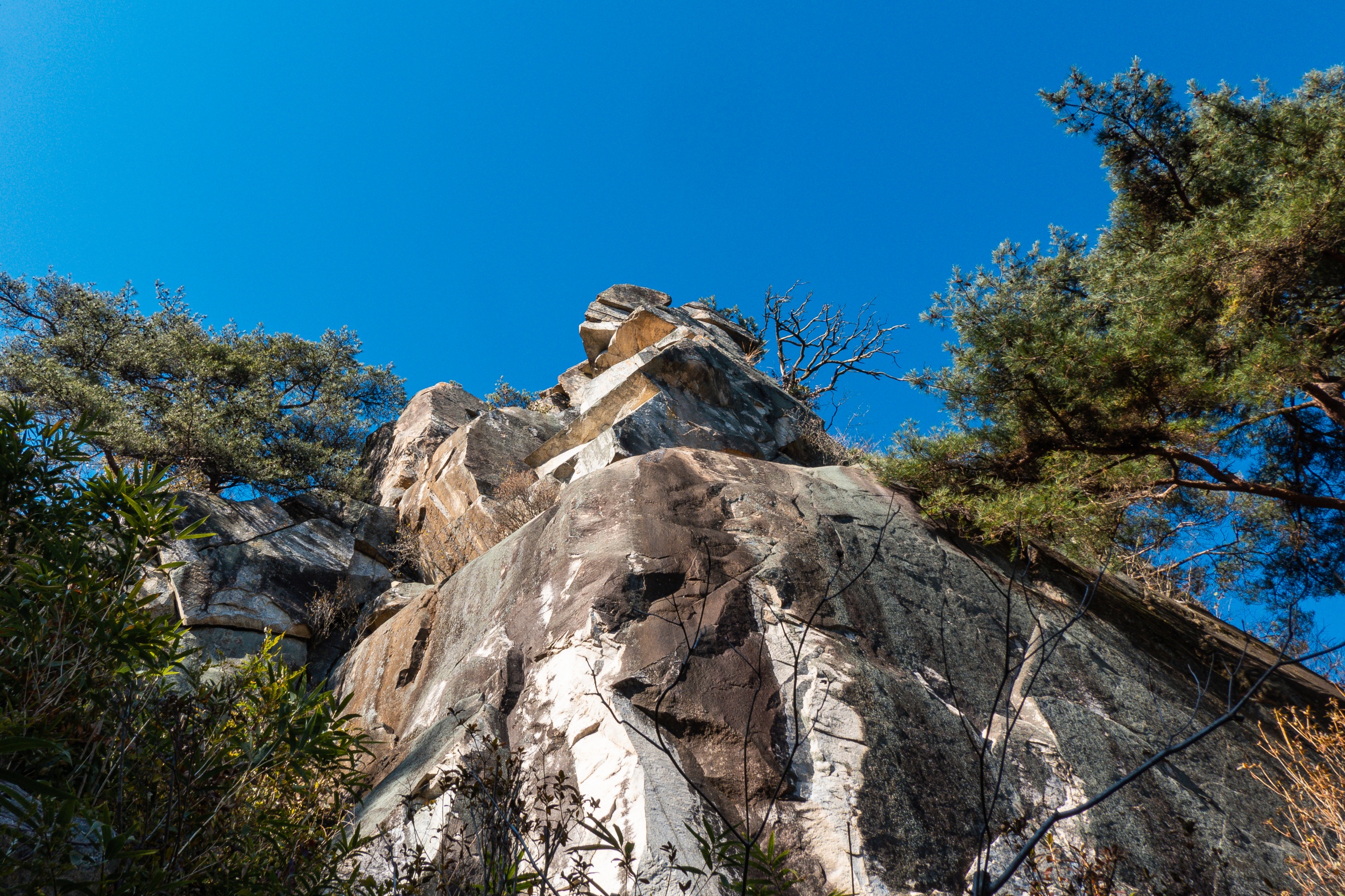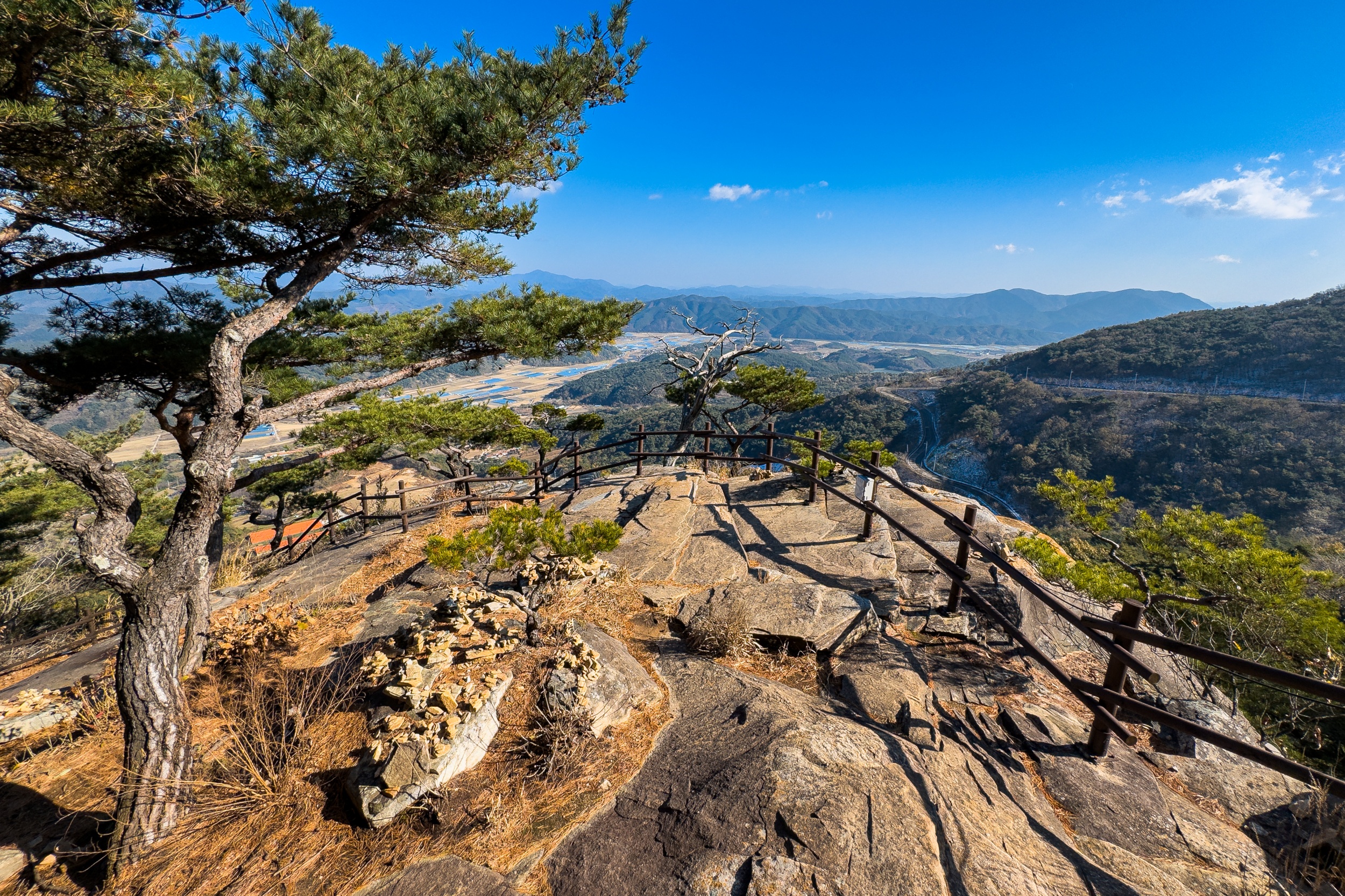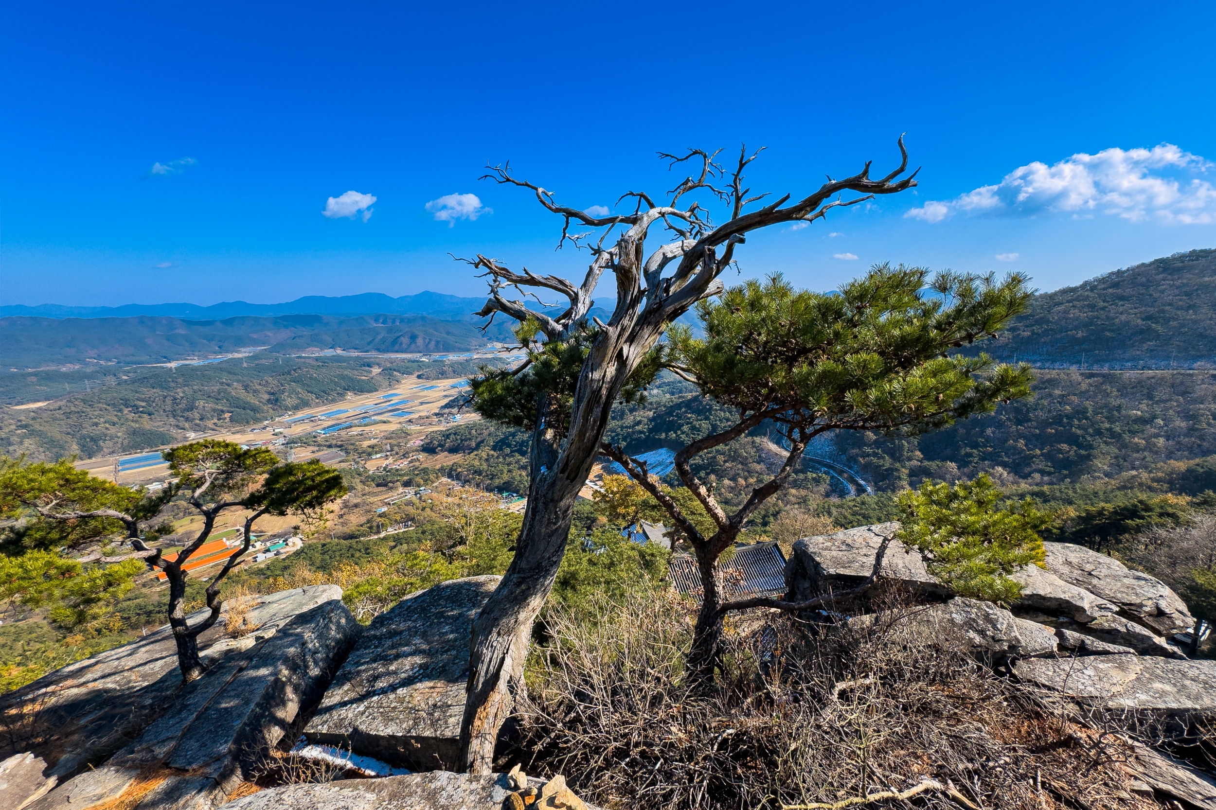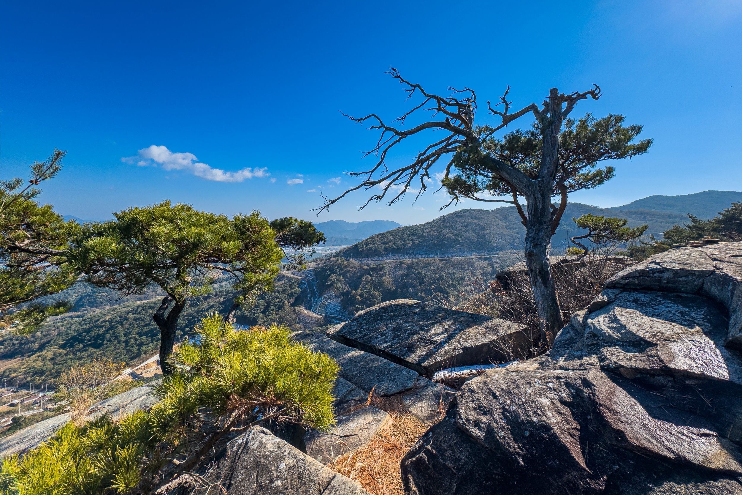 응진전 옆 오솔길을 따라 10분 정도 오르다 보면 기암절벽의 정상에 있는 만월정이 나오며 너럭바위 발 아래로 산청의 들녘과 산길이 시원스레 펼쳐져 있어 시원함과 함께 적막과 고요 속에서 속세를 벗어난 느낌입니다.