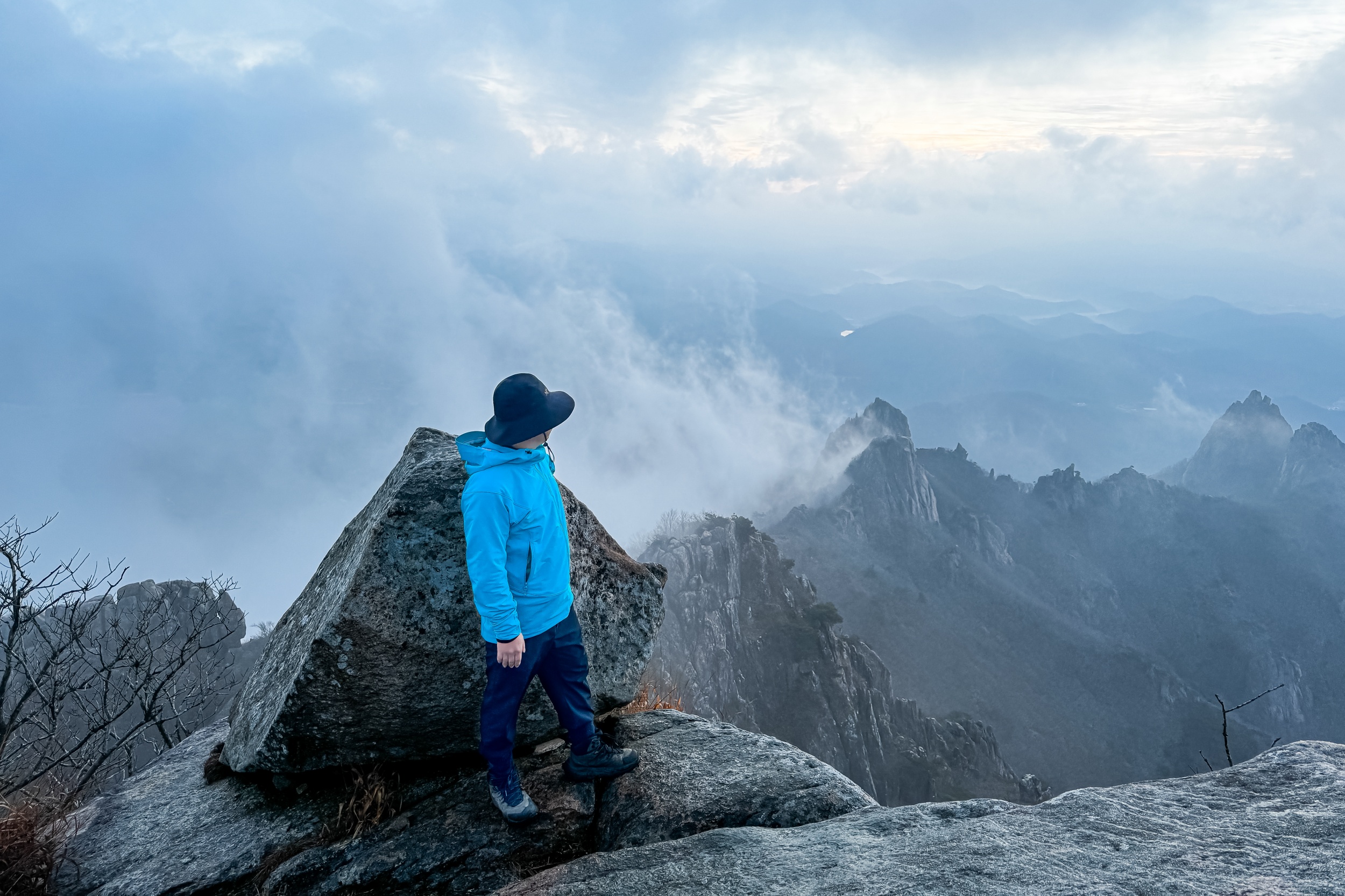 월출산 천황봉에서 일출을 맞으러 온 지 1년이 되었습니다. 작년에는 엄청 추운 날씨에 고생했는데 포근한 날씨 덕분에 모터스 AR, 델타 LT만 입고 올랐는데도 땀은 주룩주룩 흘러내렸습니다.