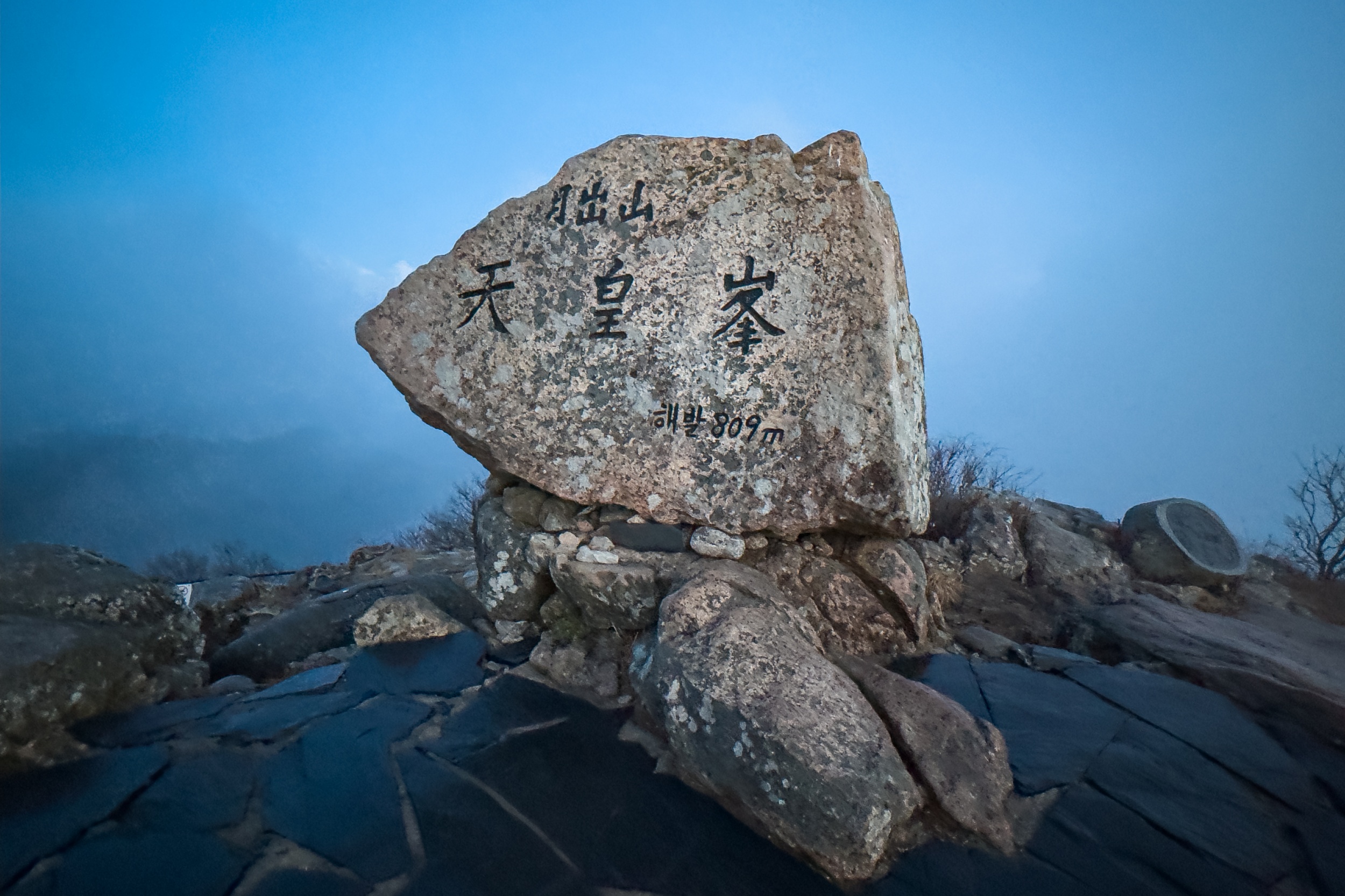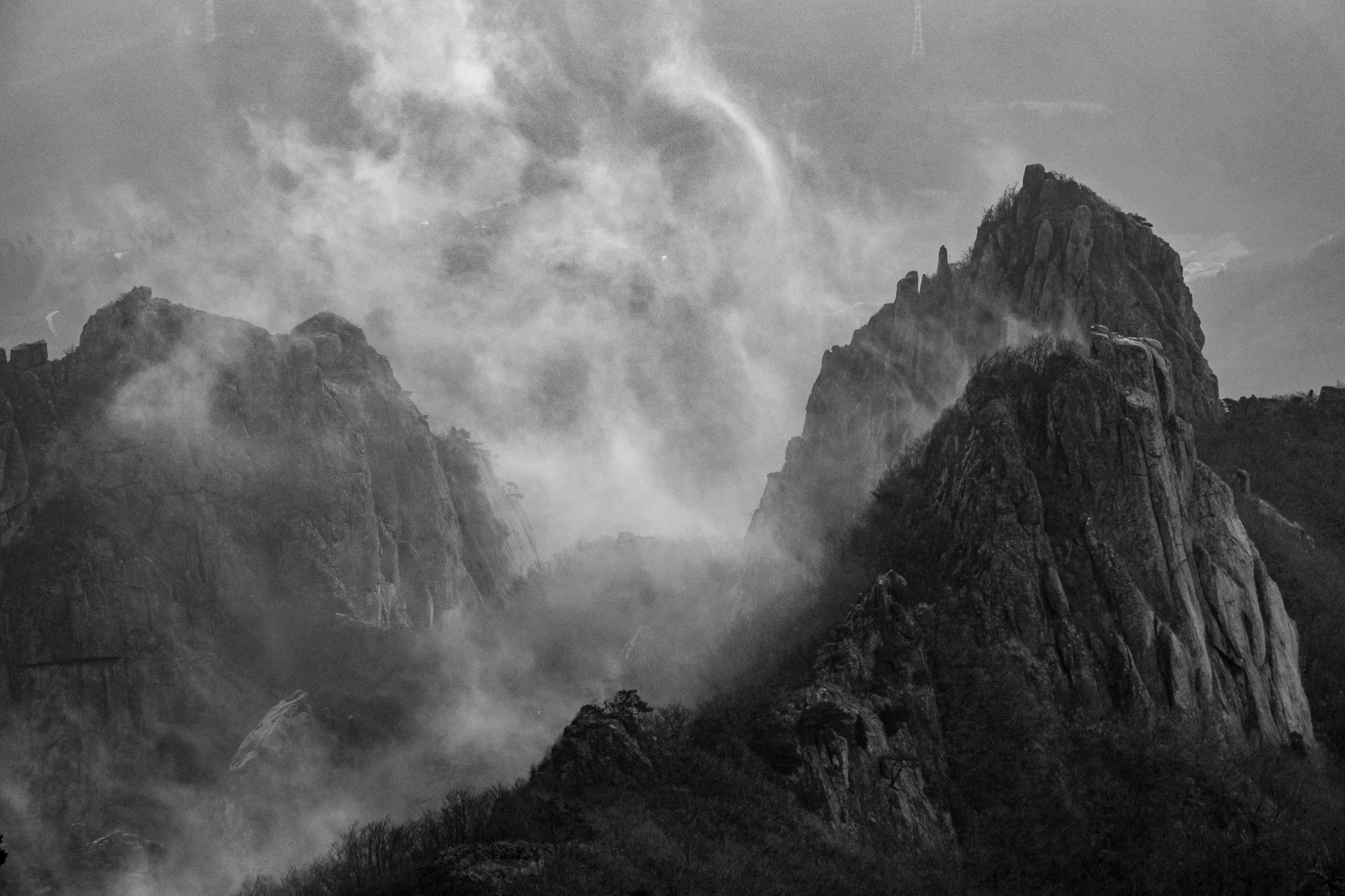천황봉 정상에서 매섭게 불어오는 바람에 온몸은 휘청이고 안갯속으로 빨려 드는 느낌이었습니다.