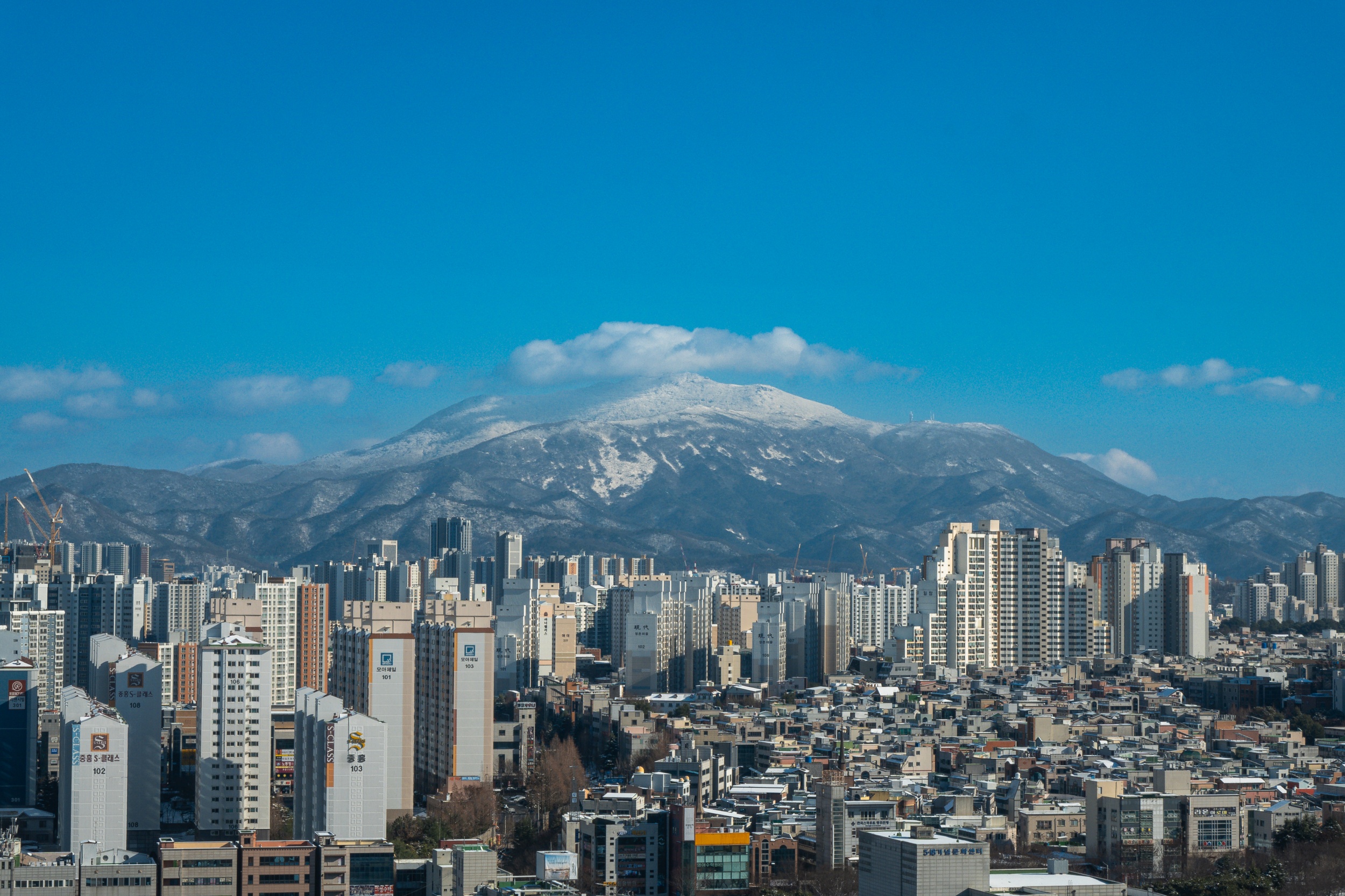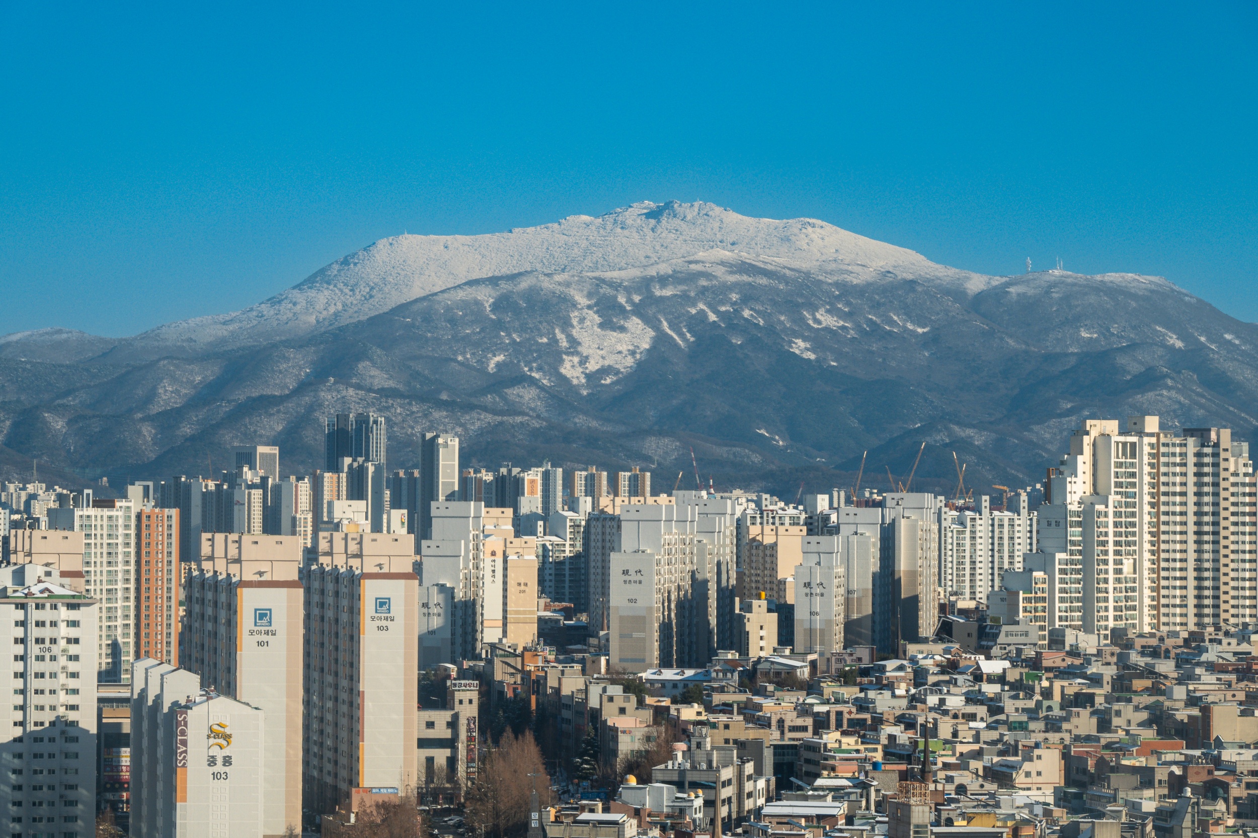 광주광역시청에서 무등산 정상부에 쌓인 순백의 설경만 바라보며