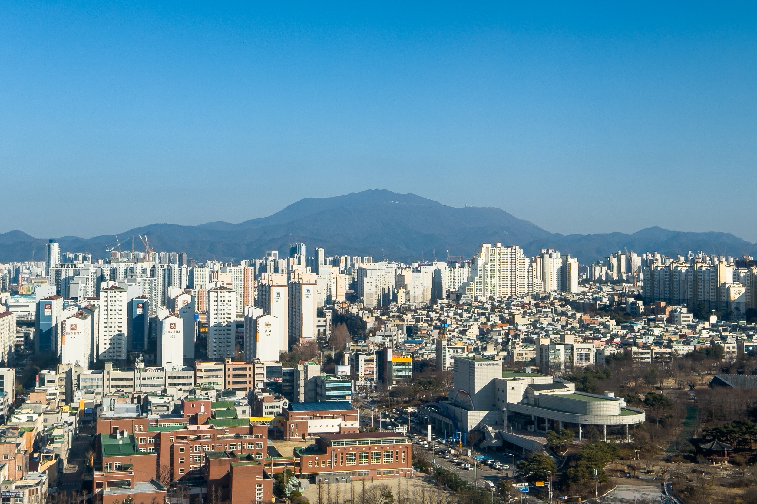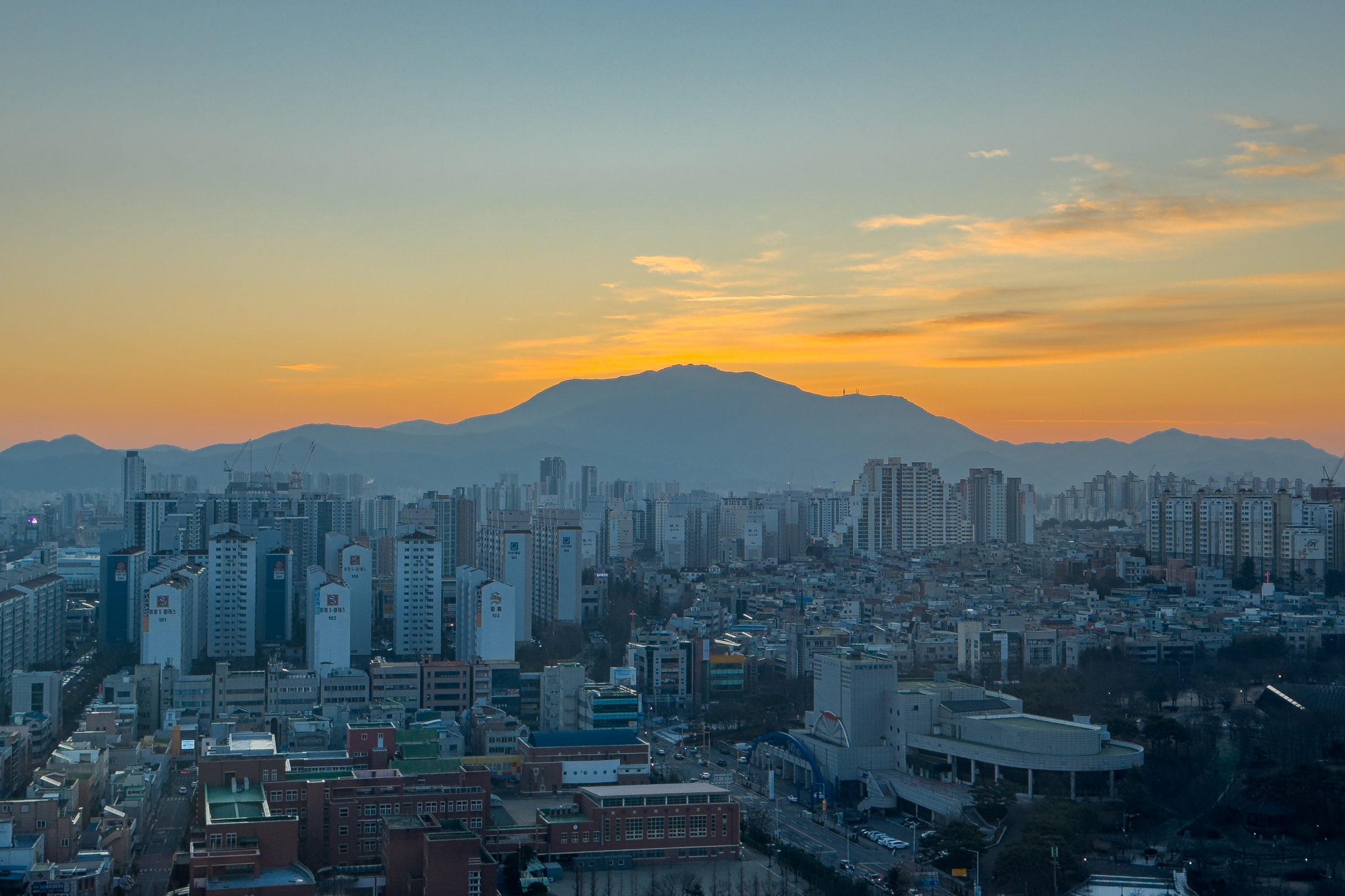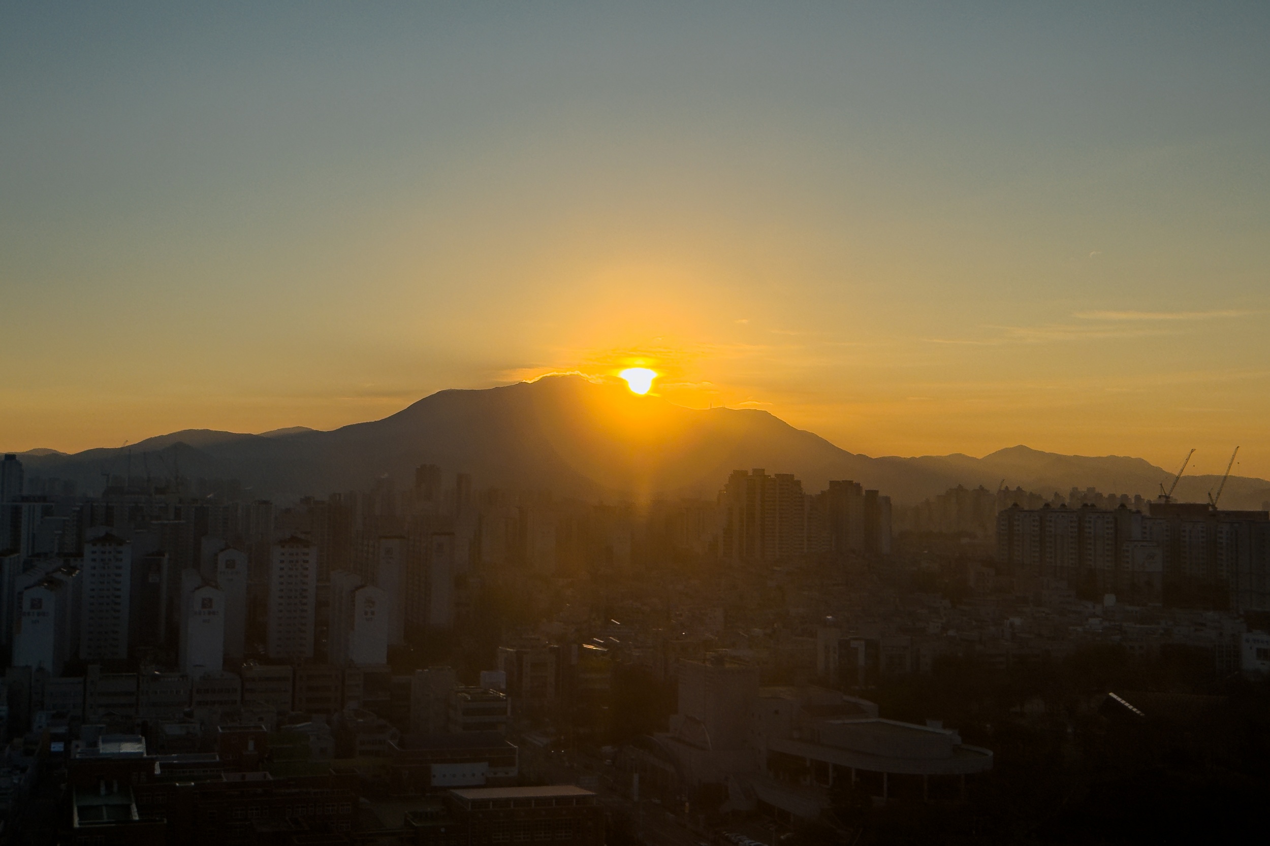 <광주광역시청에서 본 무등산 일출>