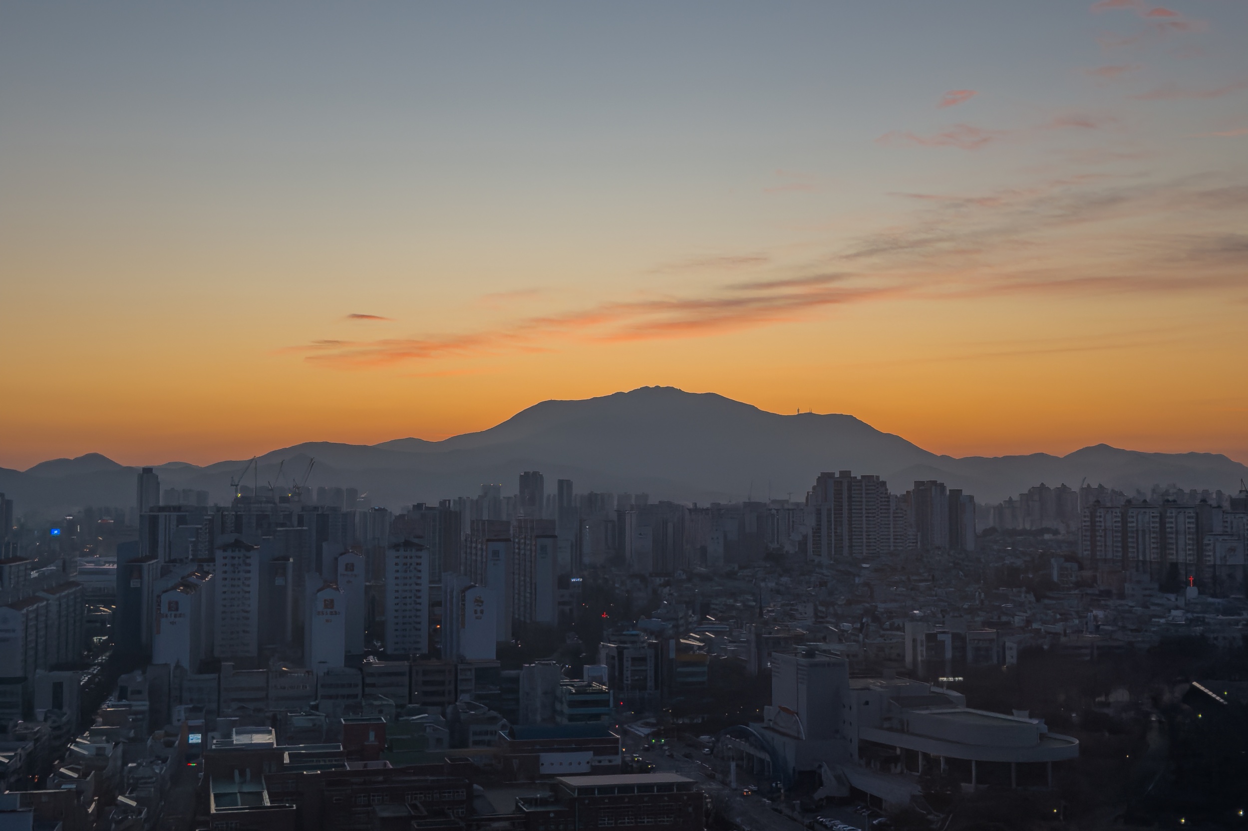 광주광역시청에서 본 무등산 일출
