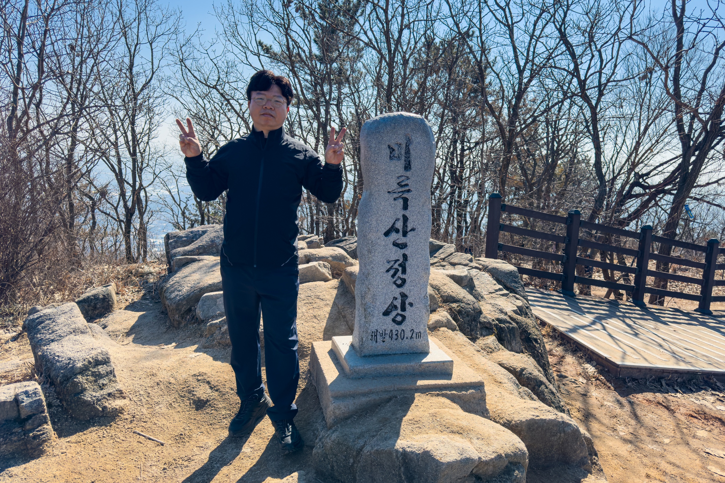 미륵산 정상에서 인증 사진 남깁니다.