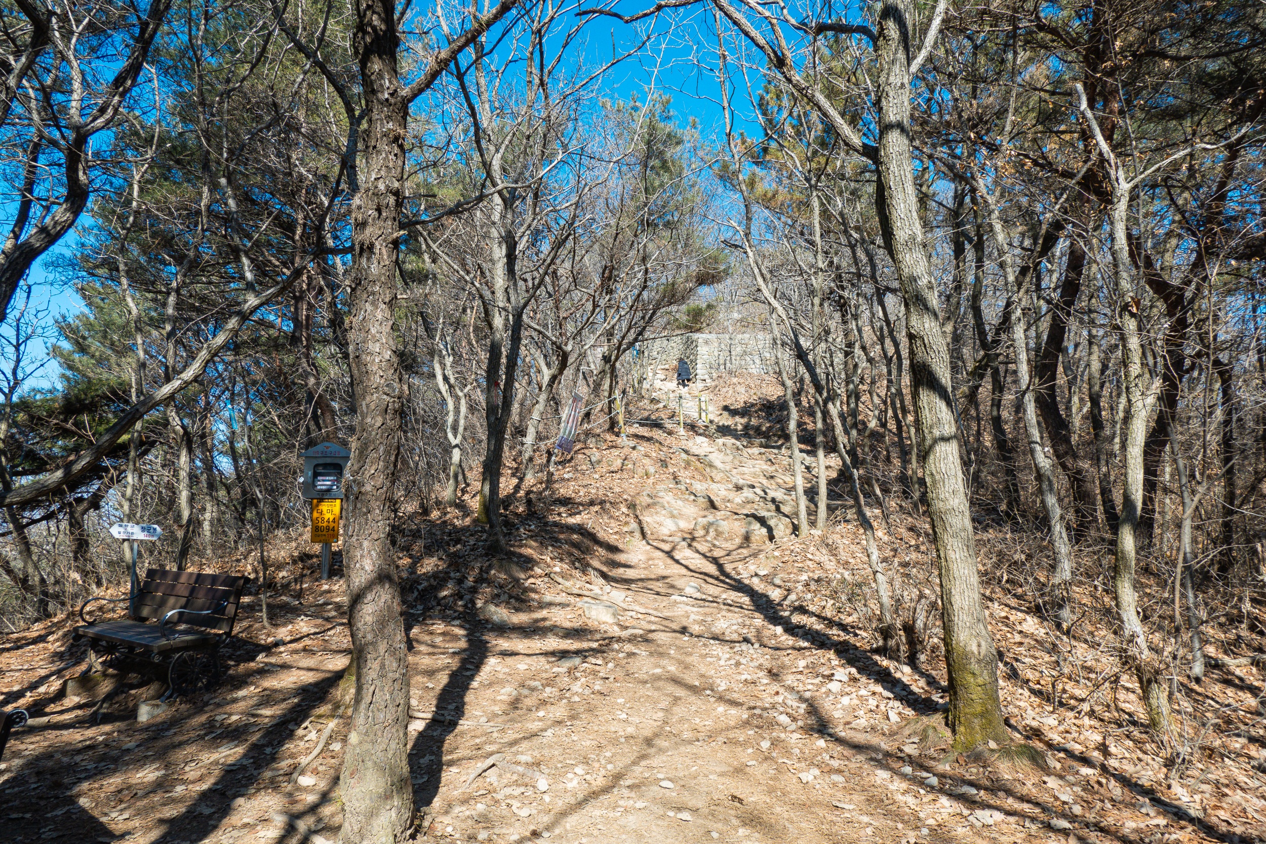 익산 장군봉까지 140m 남은 지점입니다. 오르막길 위로 치성이 보이기 시작합니다.