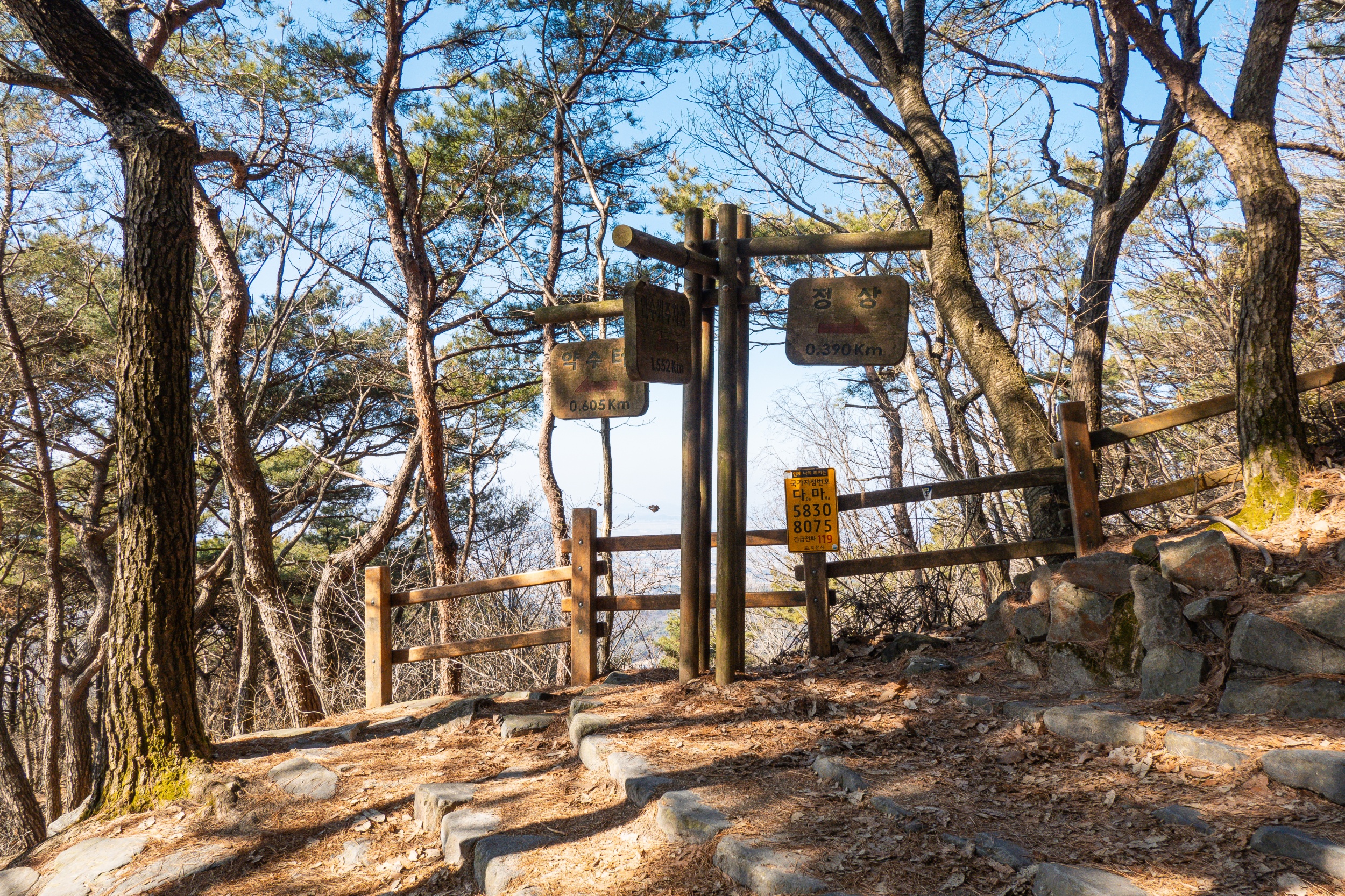 사자암에서 100m 정도 올라가자 본격적으로 미륵산 정상 표지판 방향으로 발걸음을 옮깁니다. 등산로는 잘 정비되어 있고 이정표도 잘 안내되어 편안하게 미륵산을 즐기기 위해 좋은 산입니다.